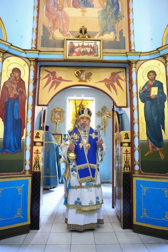 По окончании богослужения совершено славление пред местночтимым Донским образом Пресвятой Богородицы, после чего владыка обратился к предстоящим: «Словом мира и любви о Христе приветствую всех вас, всечестные отцы и возлюбленные о Господе братья и сестры, в благословенное сие осмодневие попразднства мироспасительного и радостоносного события Успения Пресвятой Госпожи и Владычицы нашей Богородицы и Приснодевы Марии, когда вся православная христианская Вселенная с особым чувством благодарности воспринимает свидетельство Божией Матери, подаренное нам в несомненное упование нашего «чаяния воскресения мертвых, и жизни будущаго века»!