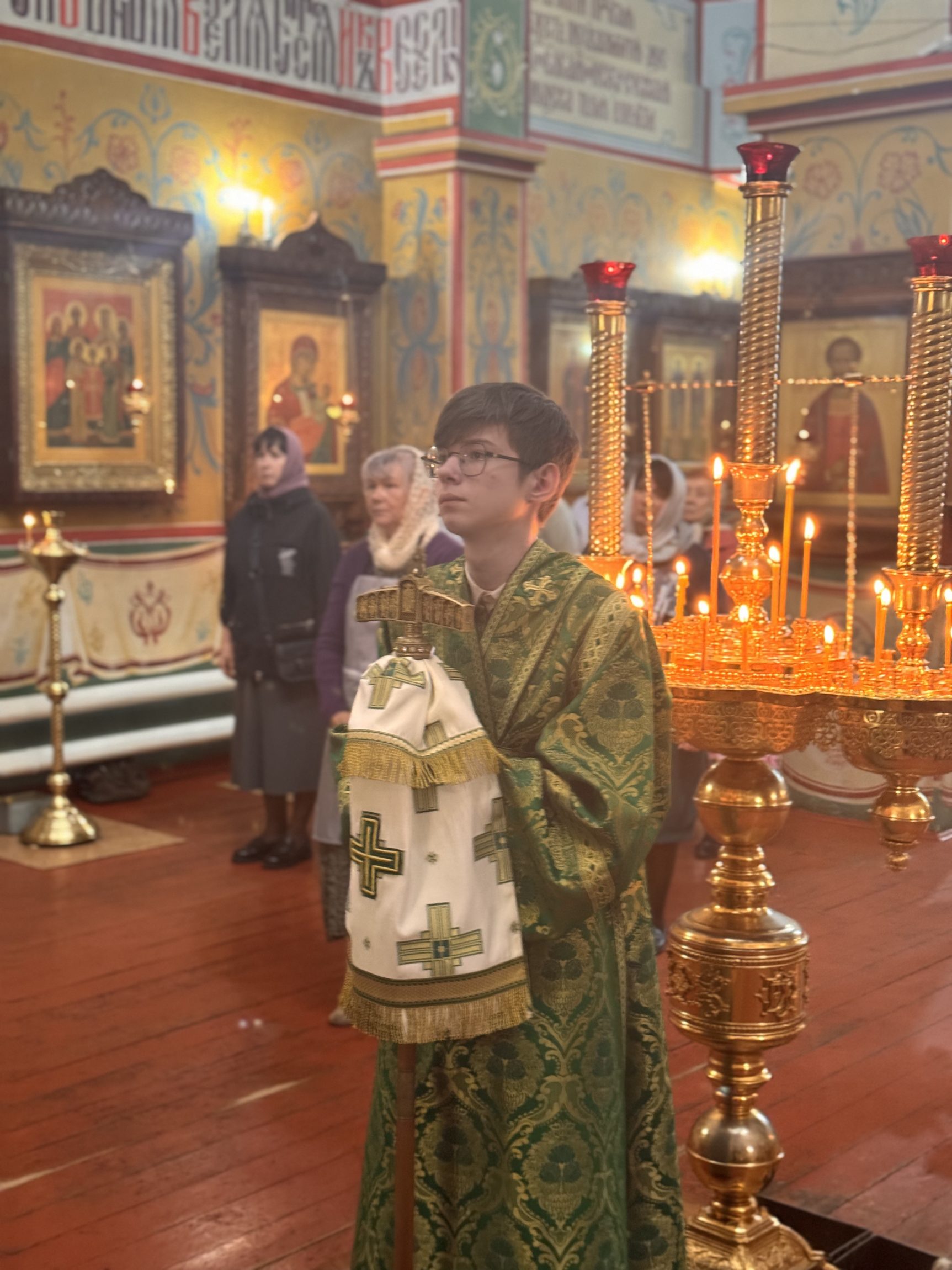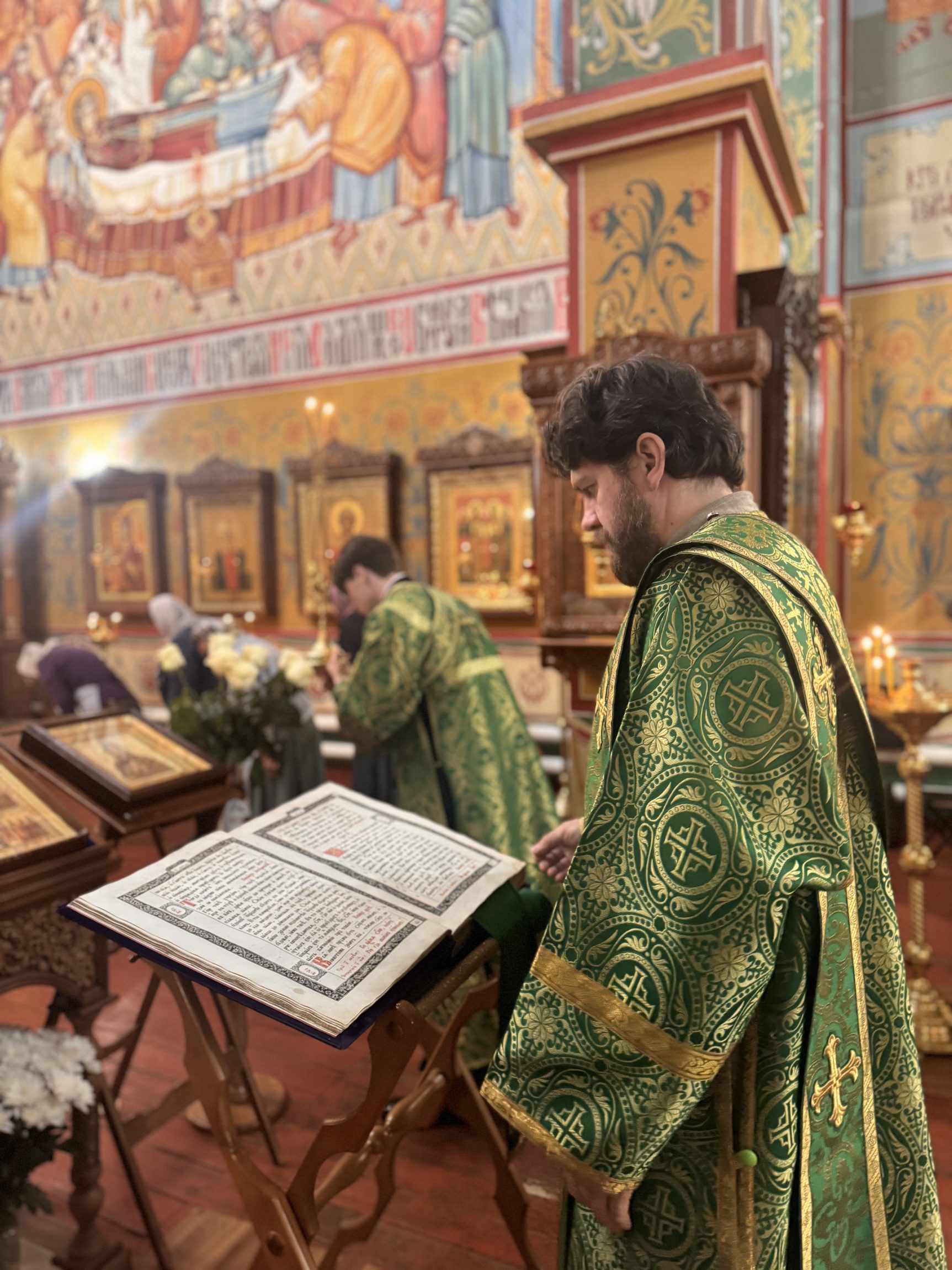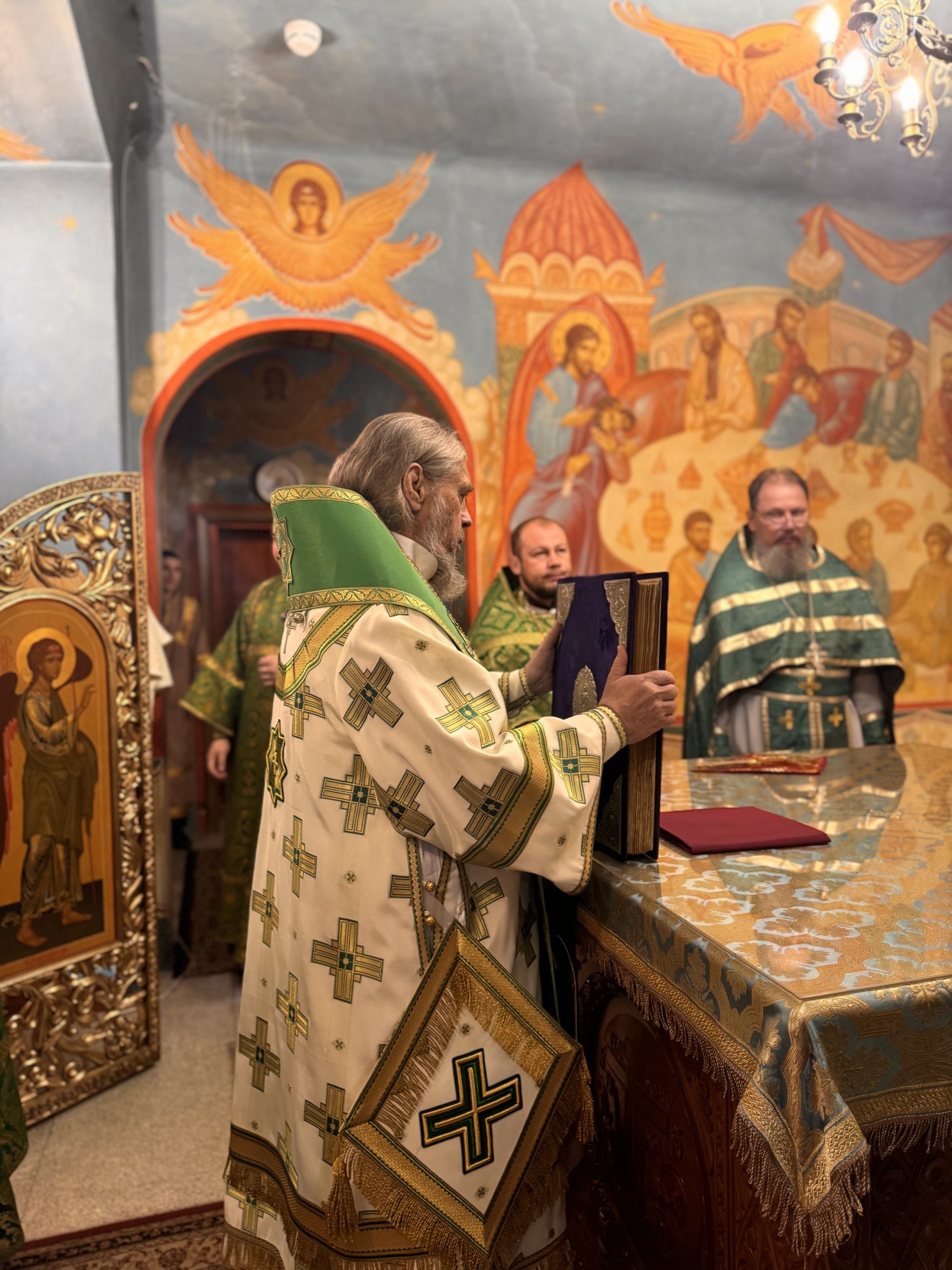 На сугубой ектении вознесены молитвы о благопоспешении христолюбивому Российскому воинству в установлении мира в сию лихую годину, на Святую Русь нашедшую, о мире на Украине, а также о сохранении единства святого Православия.
