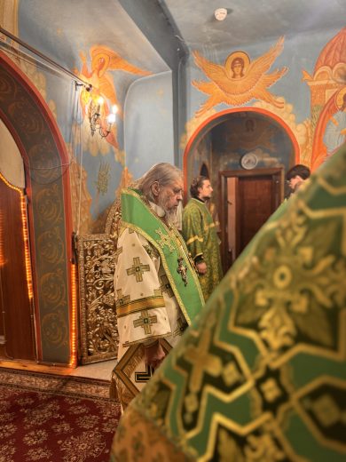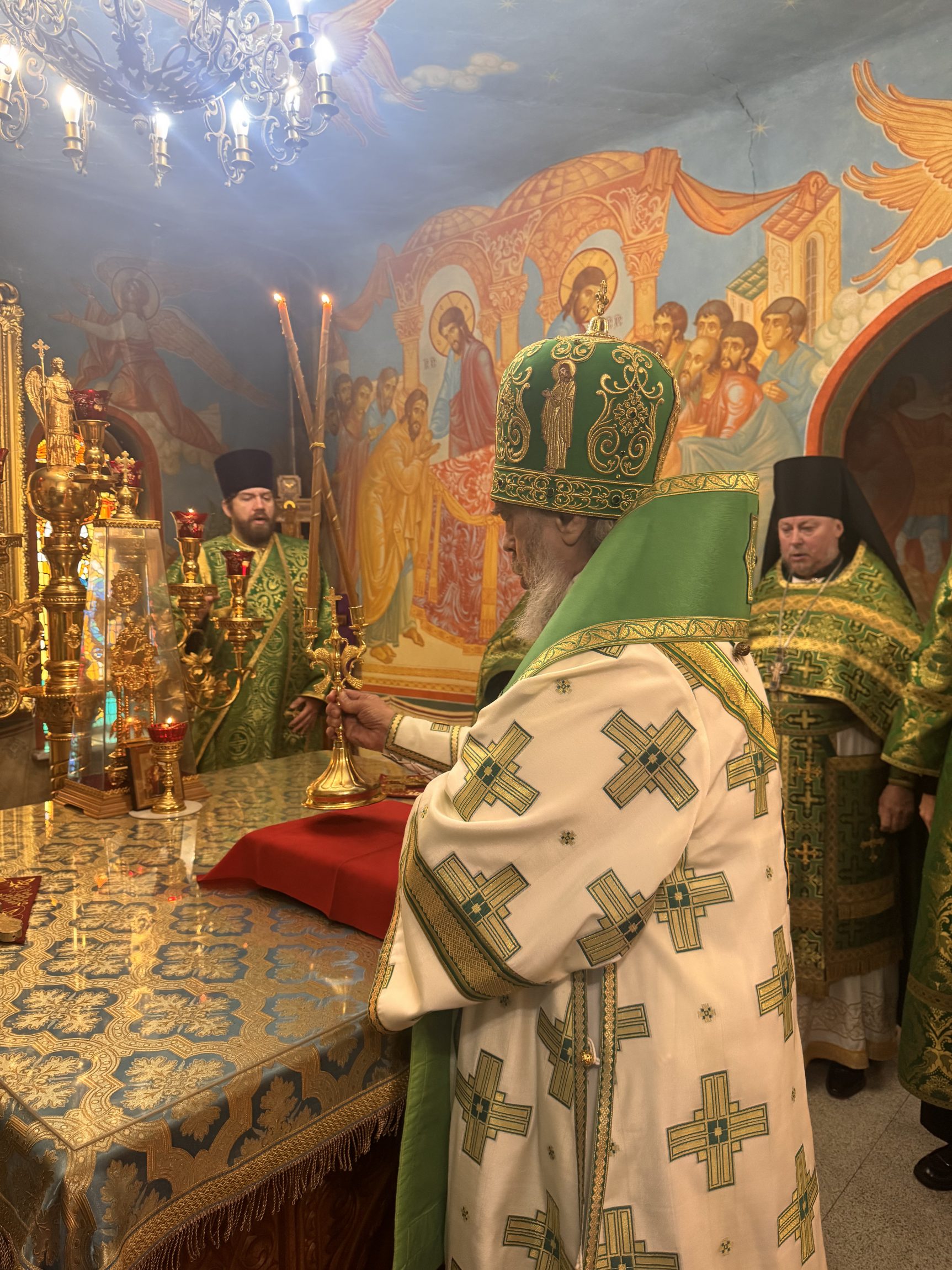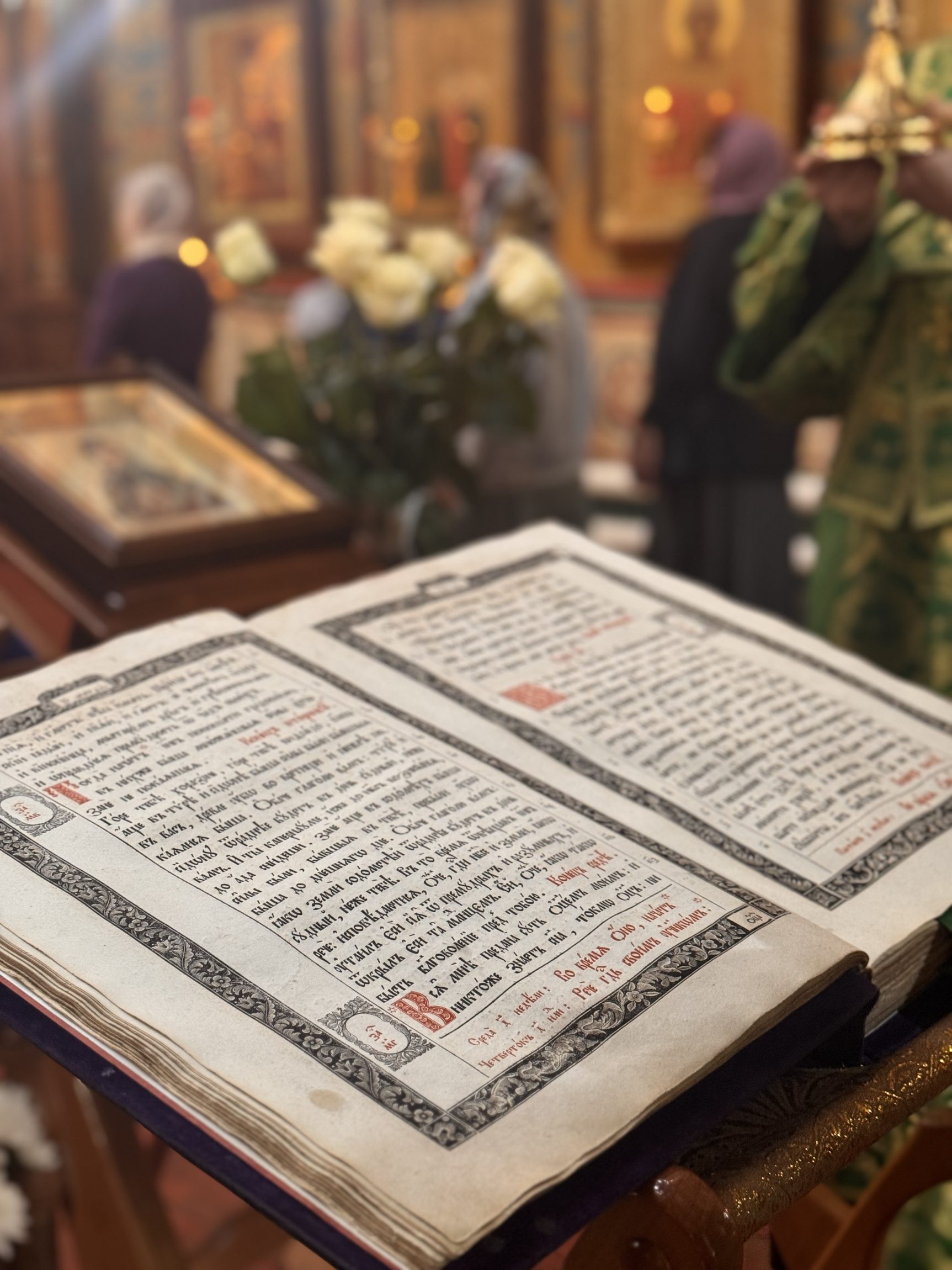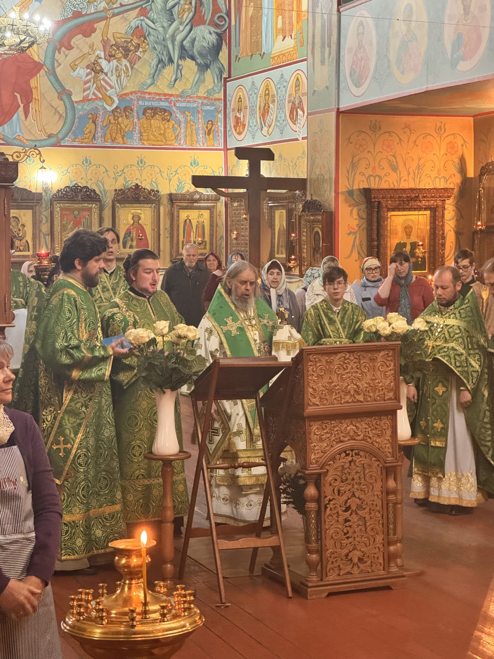 На сугубой ектении вознесены молитвы о благопоспешении христолюбивому Российскому воинству в установлении мира в сию лихую годину, на Святую Русь нашедшую, о мире на Украине, а также о сохранении единства святого Православия.