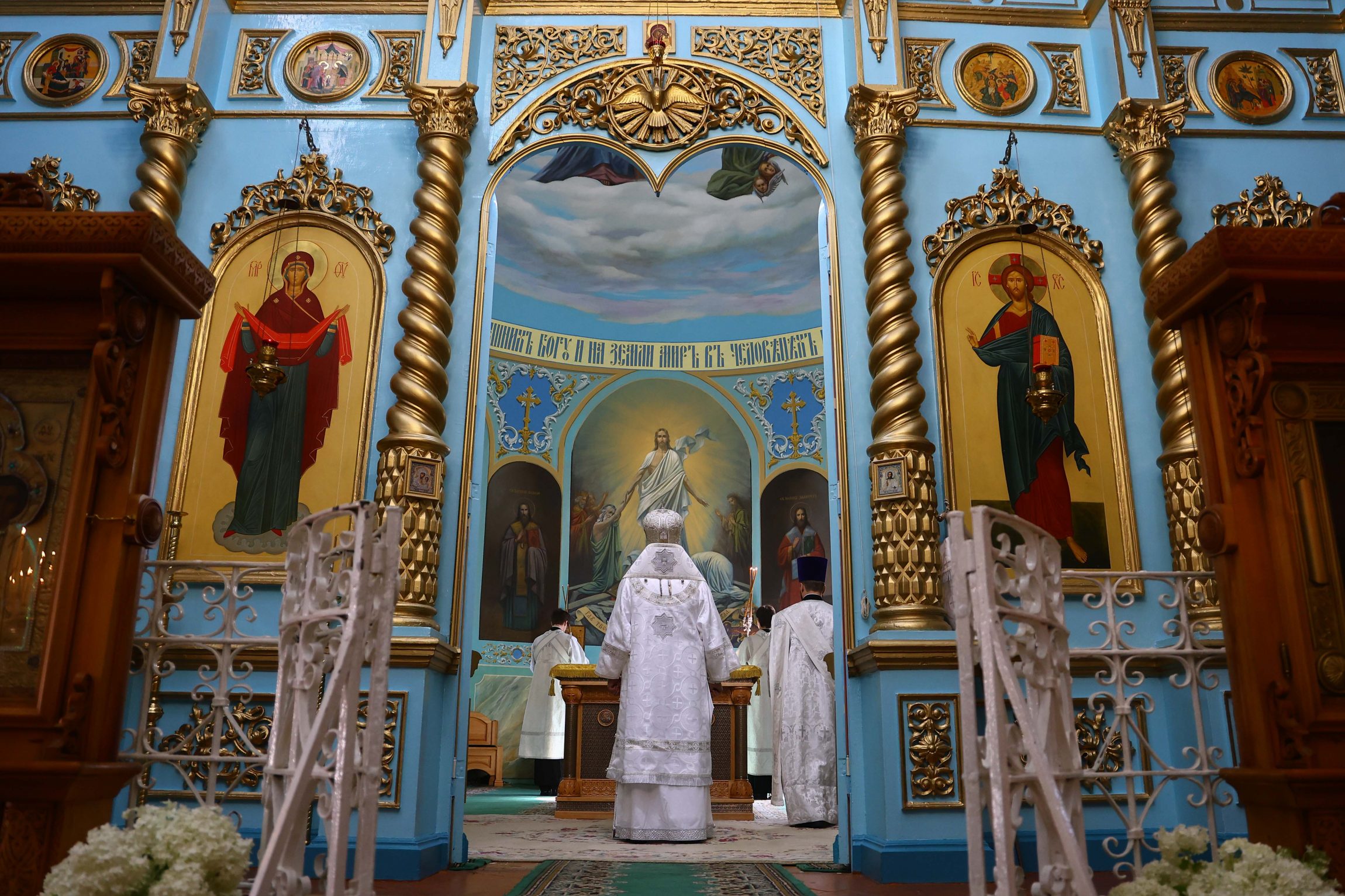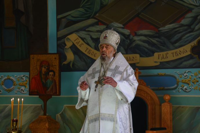 На сугубой ектении вознесены молитвы о благопоспешении христолюбивому Российскому воинству в установлении мира в сию лихую годину, на Святую Русь нашедшую, о мире на Украине, а также о сохранении единства святого Православия.