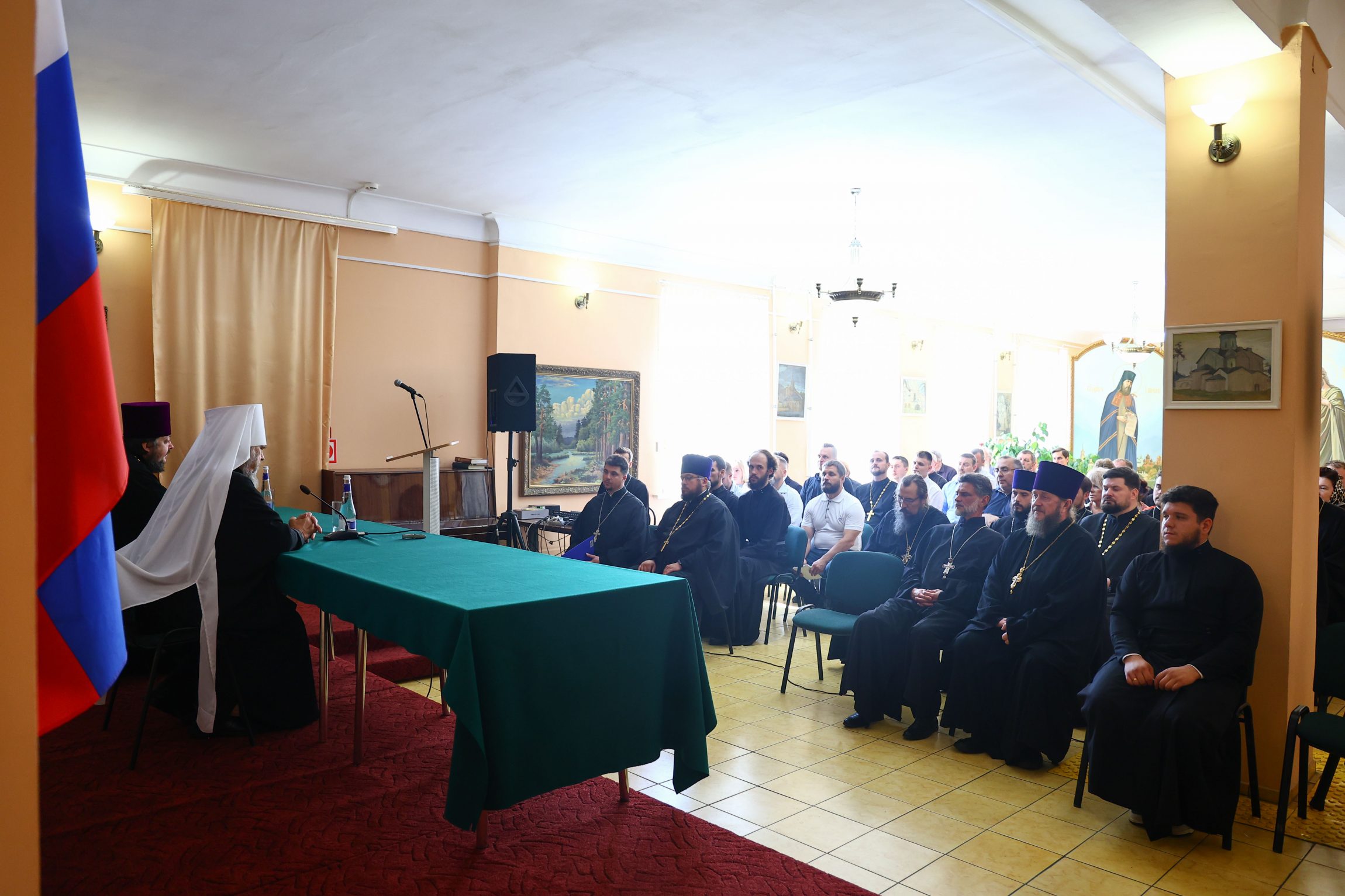 В завершение ректор выразил благодарность правящему архиерею за внимание и помощь, оказанную семинарии, которая находит отражение в определенных результатах, в частности, в итогах приемной компании 2025/2026 учебного года.