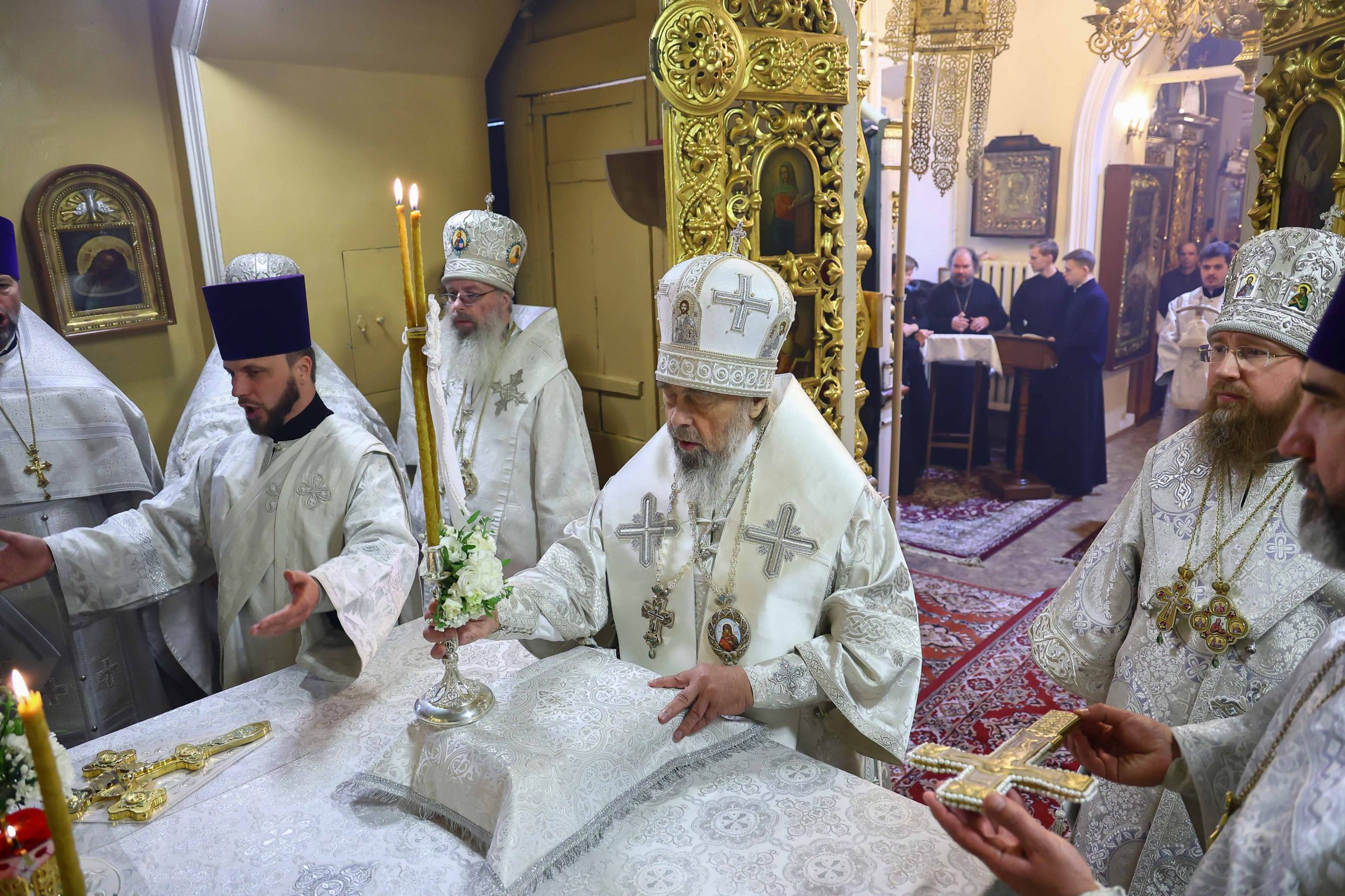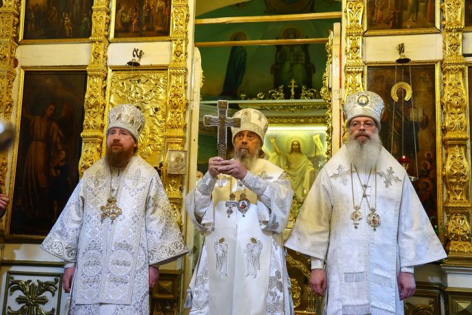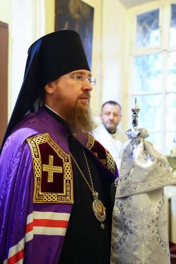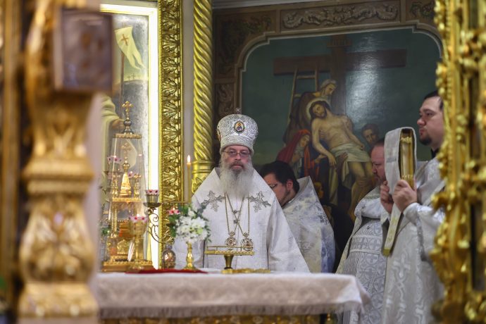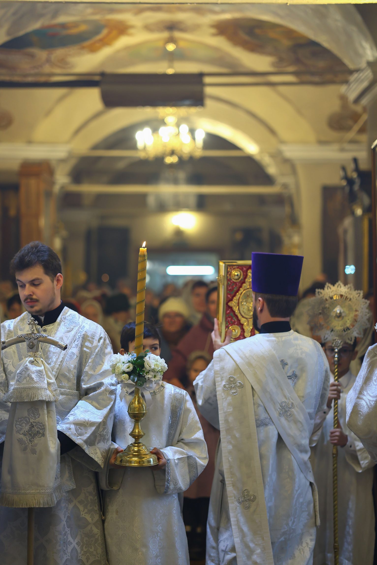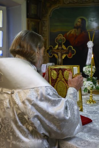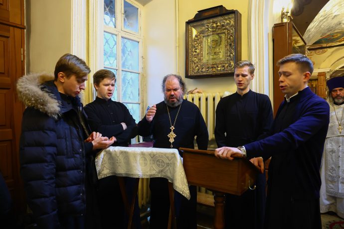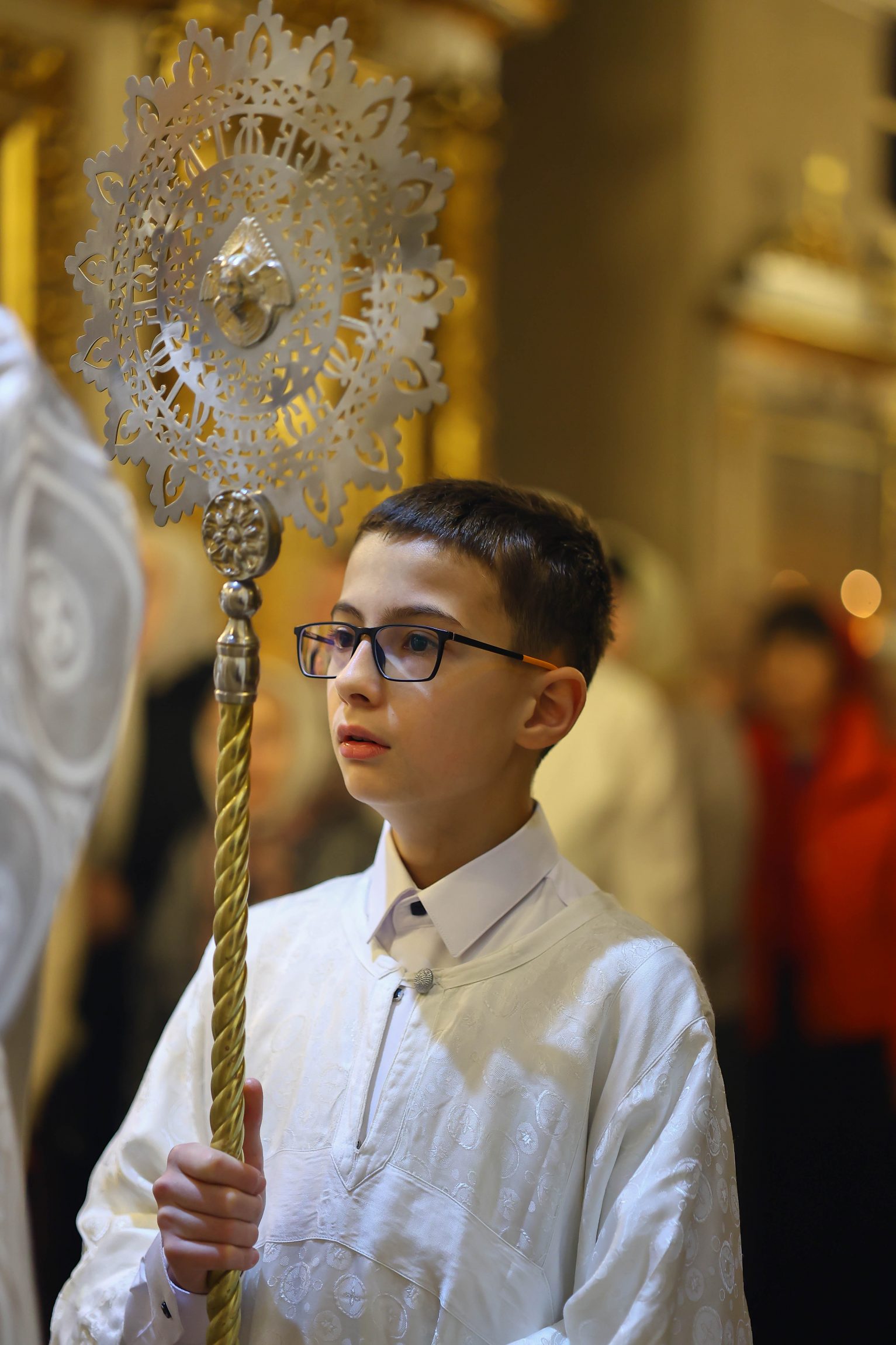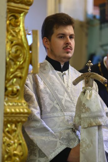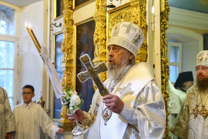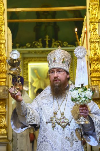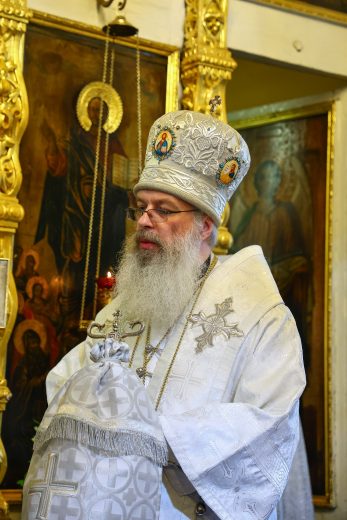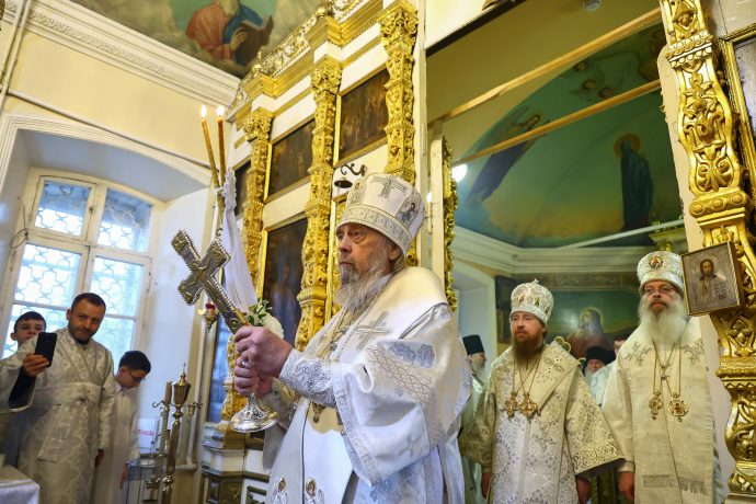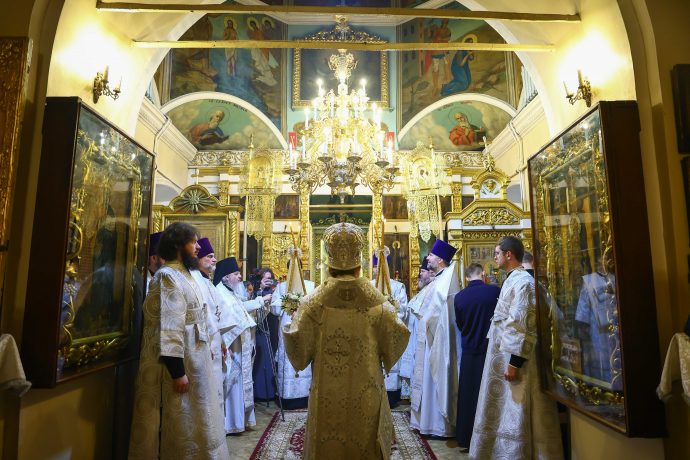 На сугубой ектении вознесены молитвы о благопоспешении христолюбивому Российскому воинству в установлении мира в сию лихую годину, на Святую Русь нашедшую, о мире на Украине, а также о сохранении единства святого Православия.