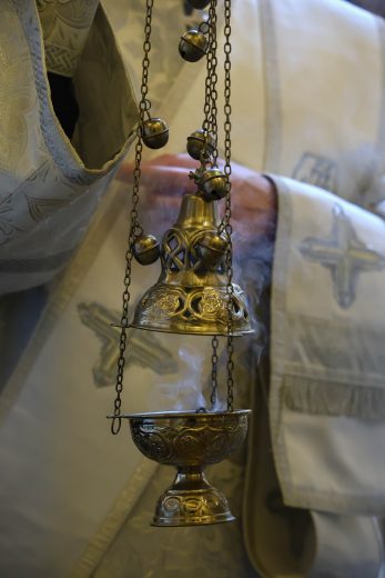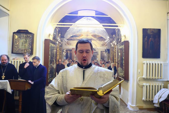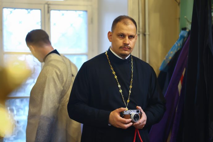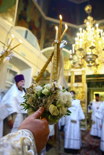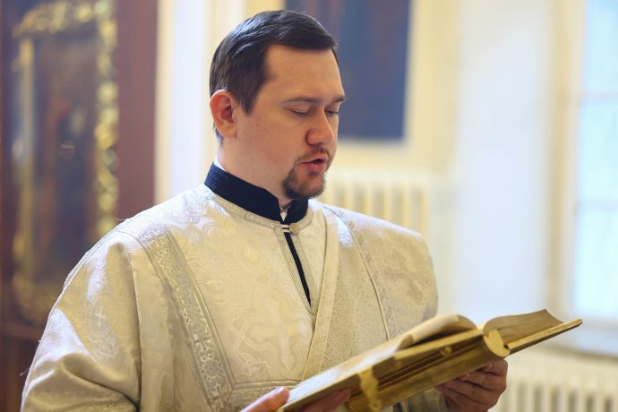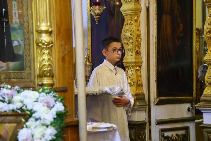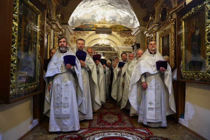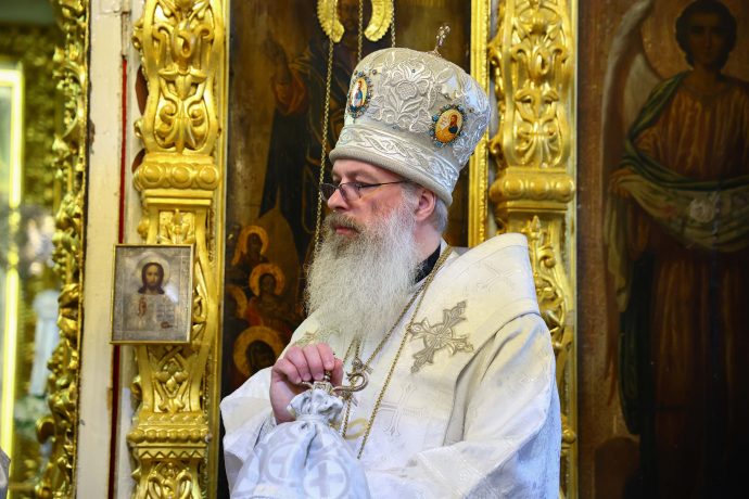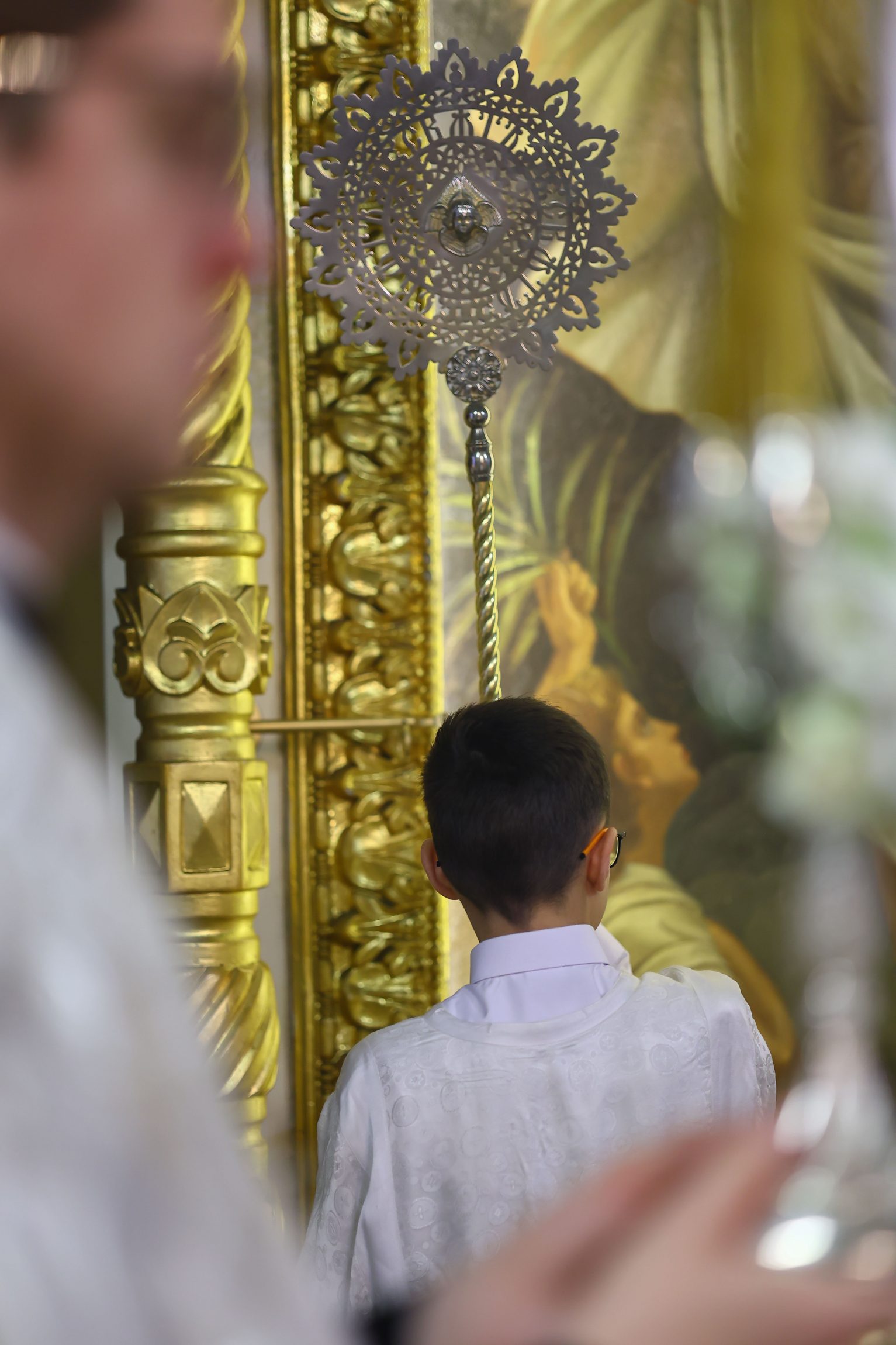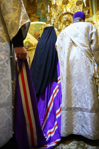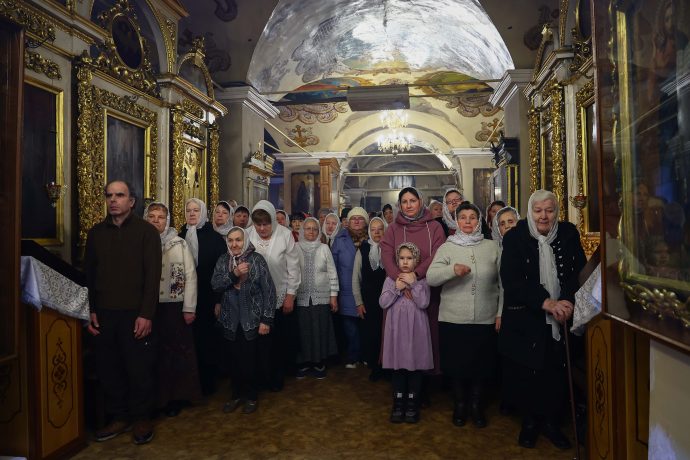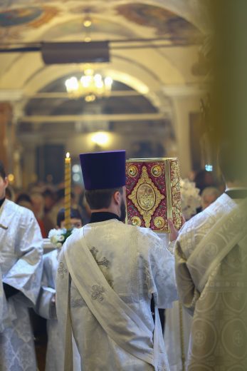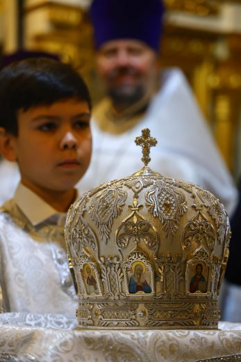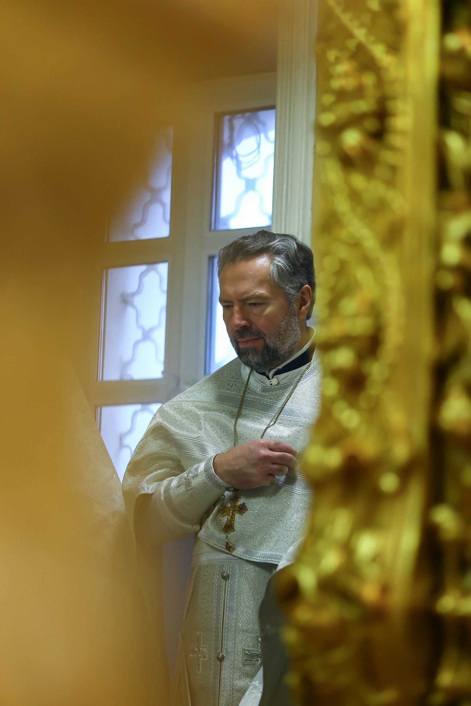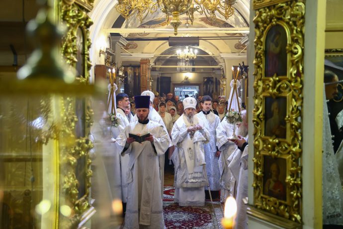 На сугубой ектении вознесены молитвы о благопоспешении христолюбивому Российскому воинству в установлении мира в сию лихую годину, на Святую Русь нашедшую, о мире на Украине, а также о сохранении единства святого Православия.