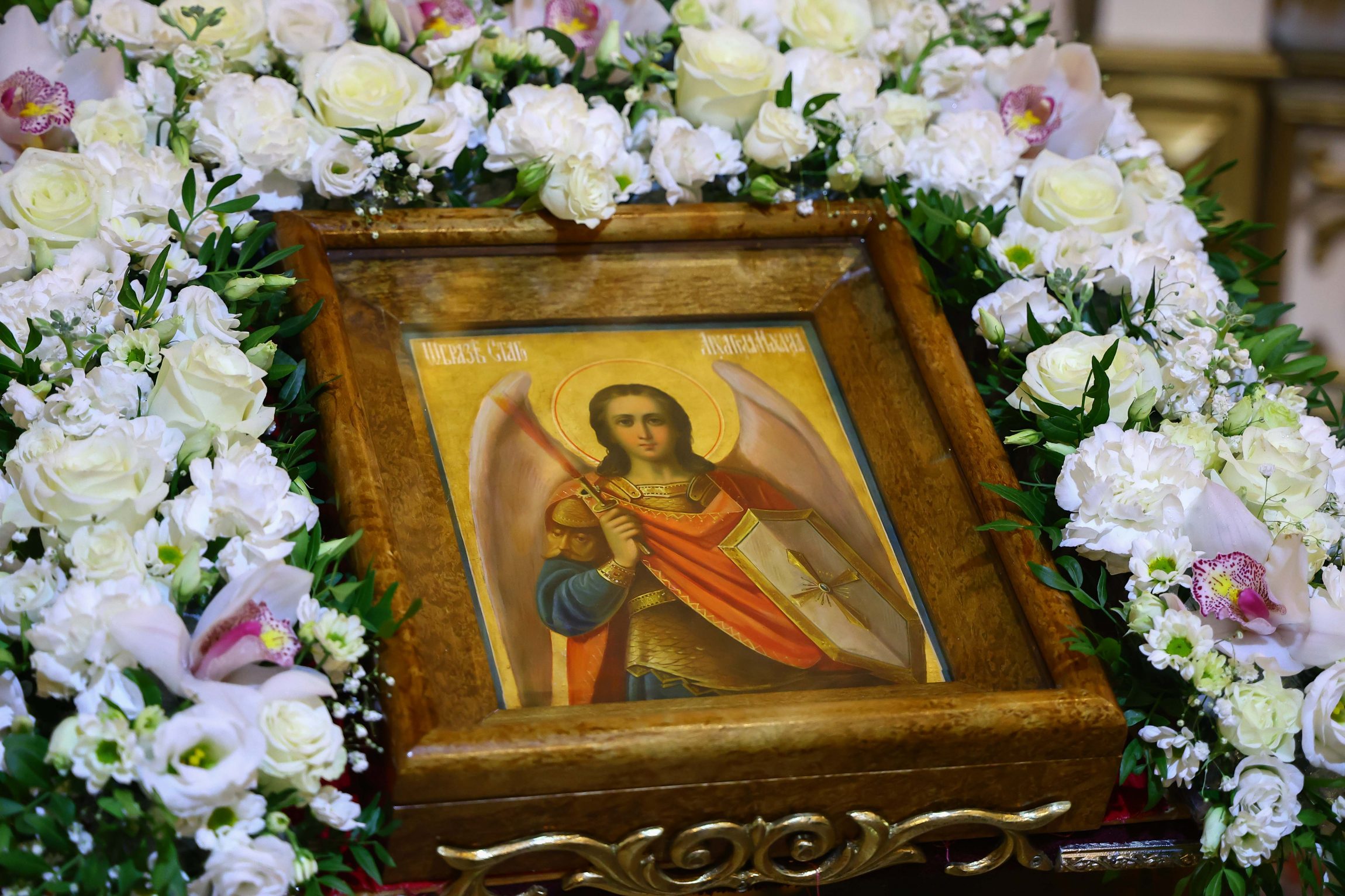 По заамвонной молитве совершено славление Архистратигу Михаилу и Небесным Силам бесплотным.