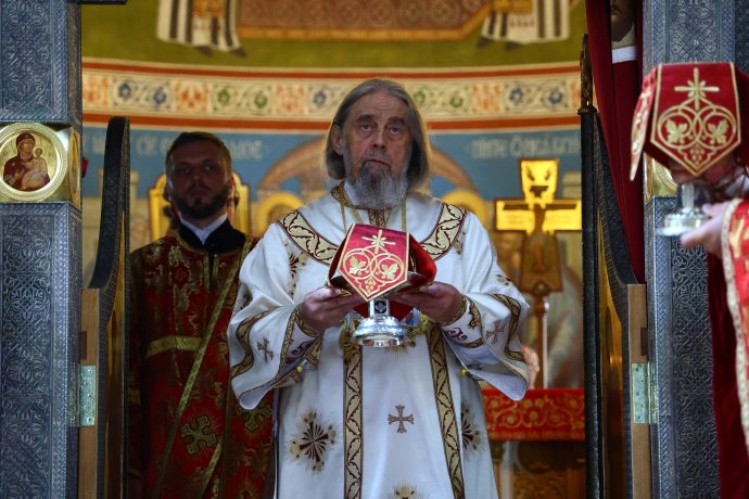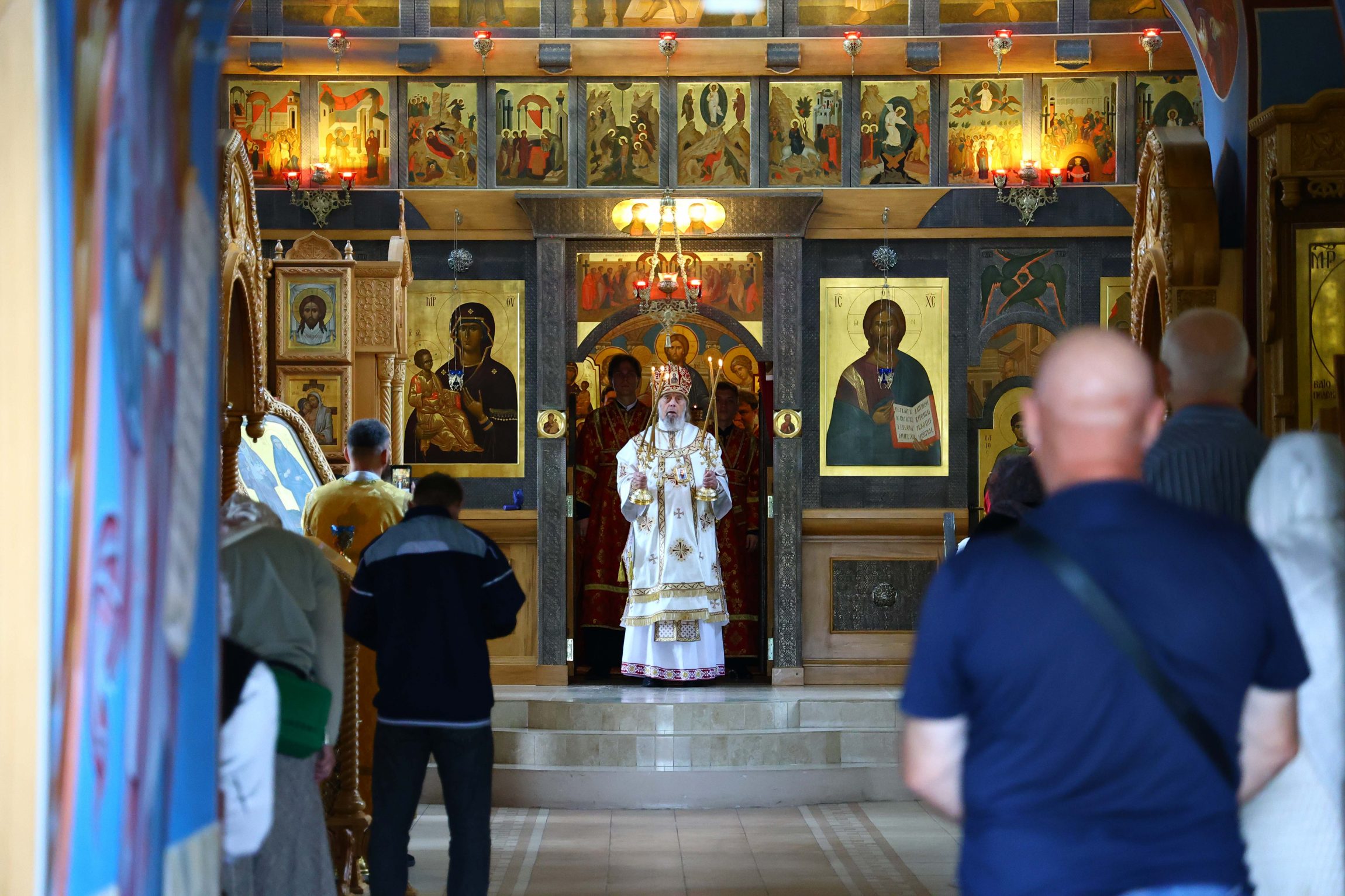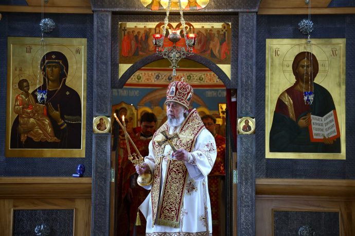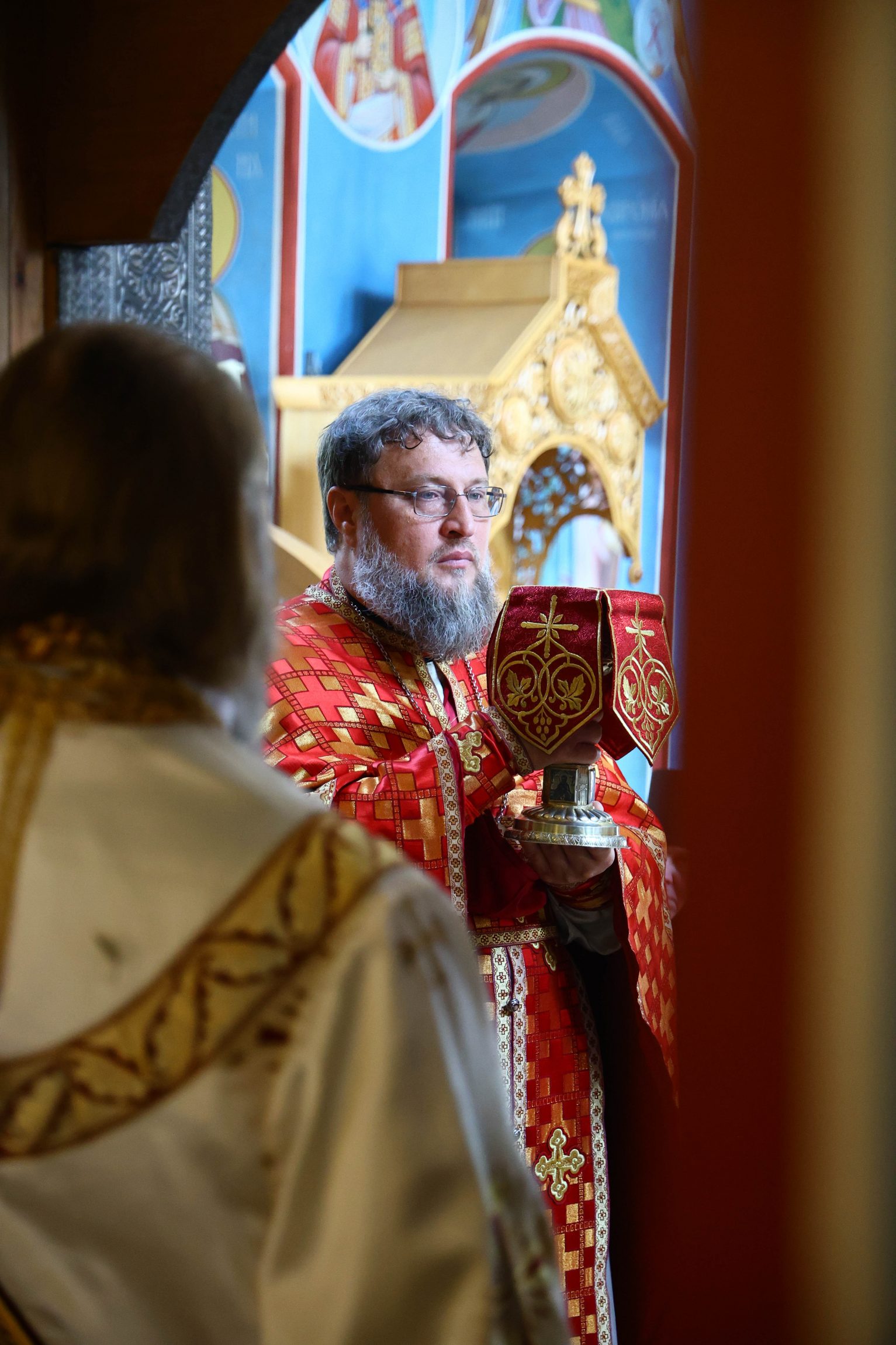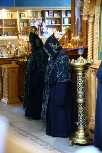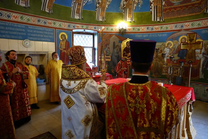 На сугубой ектении вознесены молитвы о благопоспешении христолюбивому Российскому воинству в установлении мира в сию лихую годину, на Святую Русь нашедшую, о мире на Украине, а также о сохранении единства святого Православия.
