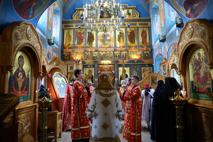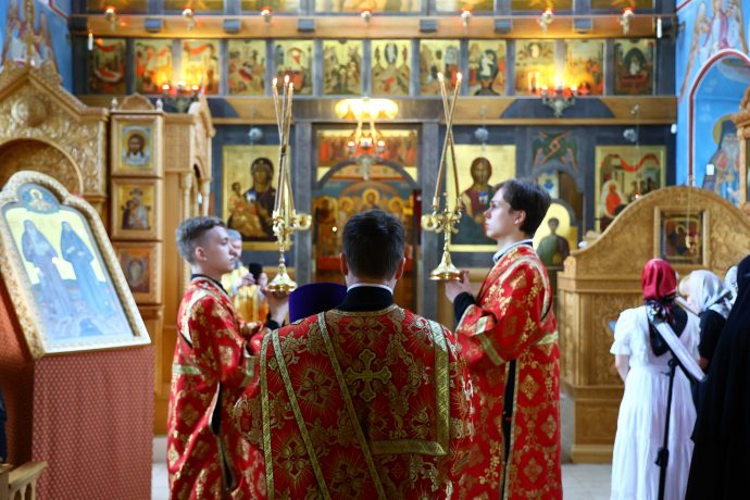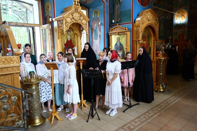 За богослужением молились настоятельница монастыря игуменья Амвросия (Соломатина) с сестрами, прихожанами и паломниками обители. Песнопения Божественной литургии исполнял хор воспитанниц монастыря.