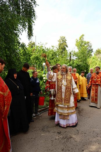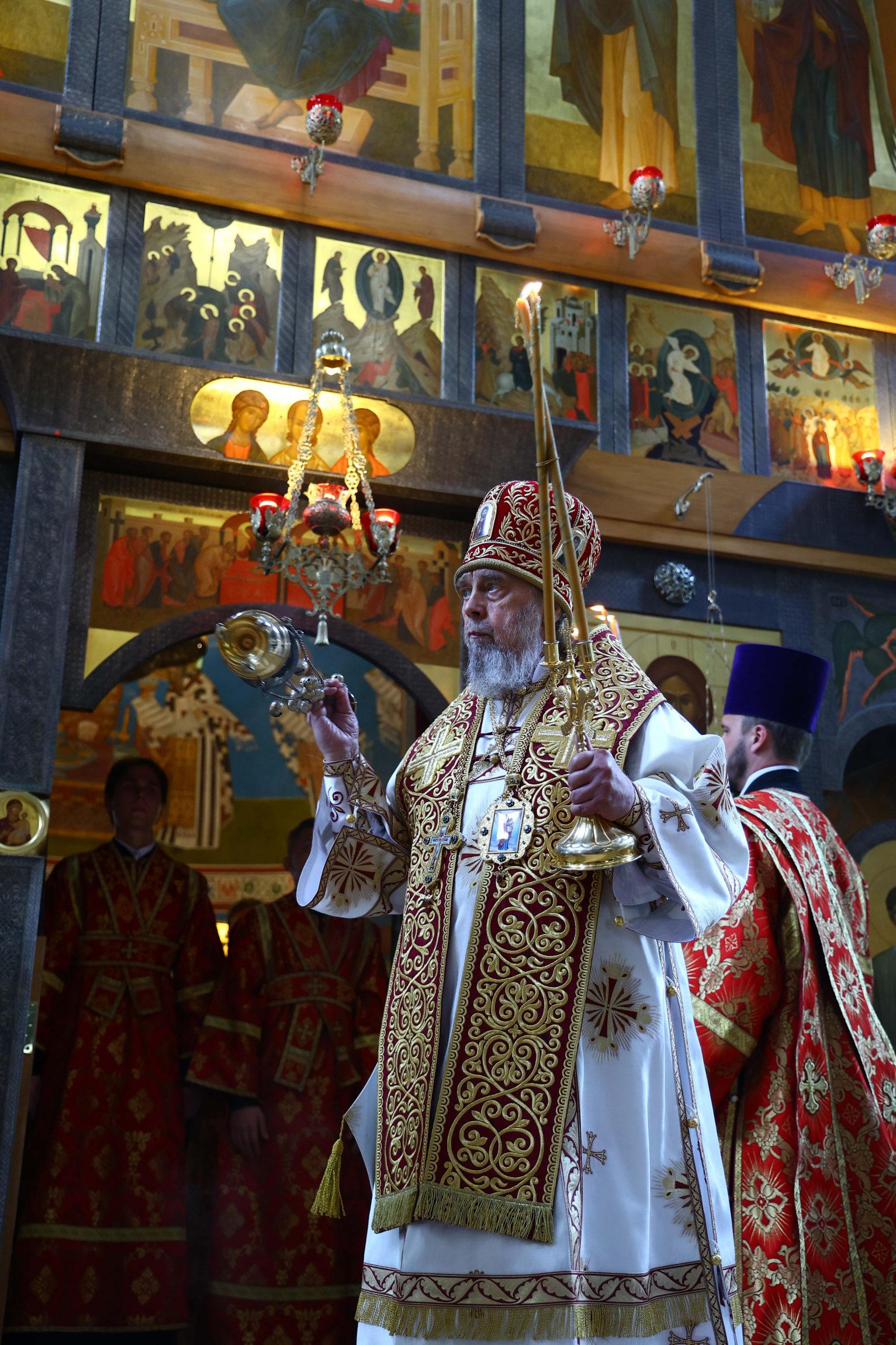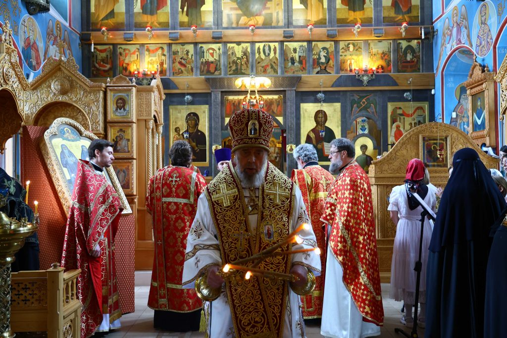 Архипастырь обратился к участникам общей молитвы словом мира и любви о Христе. «В сей нареченный и святой день, когда вся православная христианская вселенная благочестно совершает память дивного собора преподобных Радонежских угодников, мы в этой святой обители, в доме Пресвятой Богородицы, по особому действию Божественного Промысла принявшем под свои своды дивную святыню — образ преподобномученицы великой княгини Елисаветы и ее келейной Марфо-Мариинской обители инокини Варвары с частицей их многоцелебных мощей, совершаем и чтим их святую, блаженную и христоподобную память.