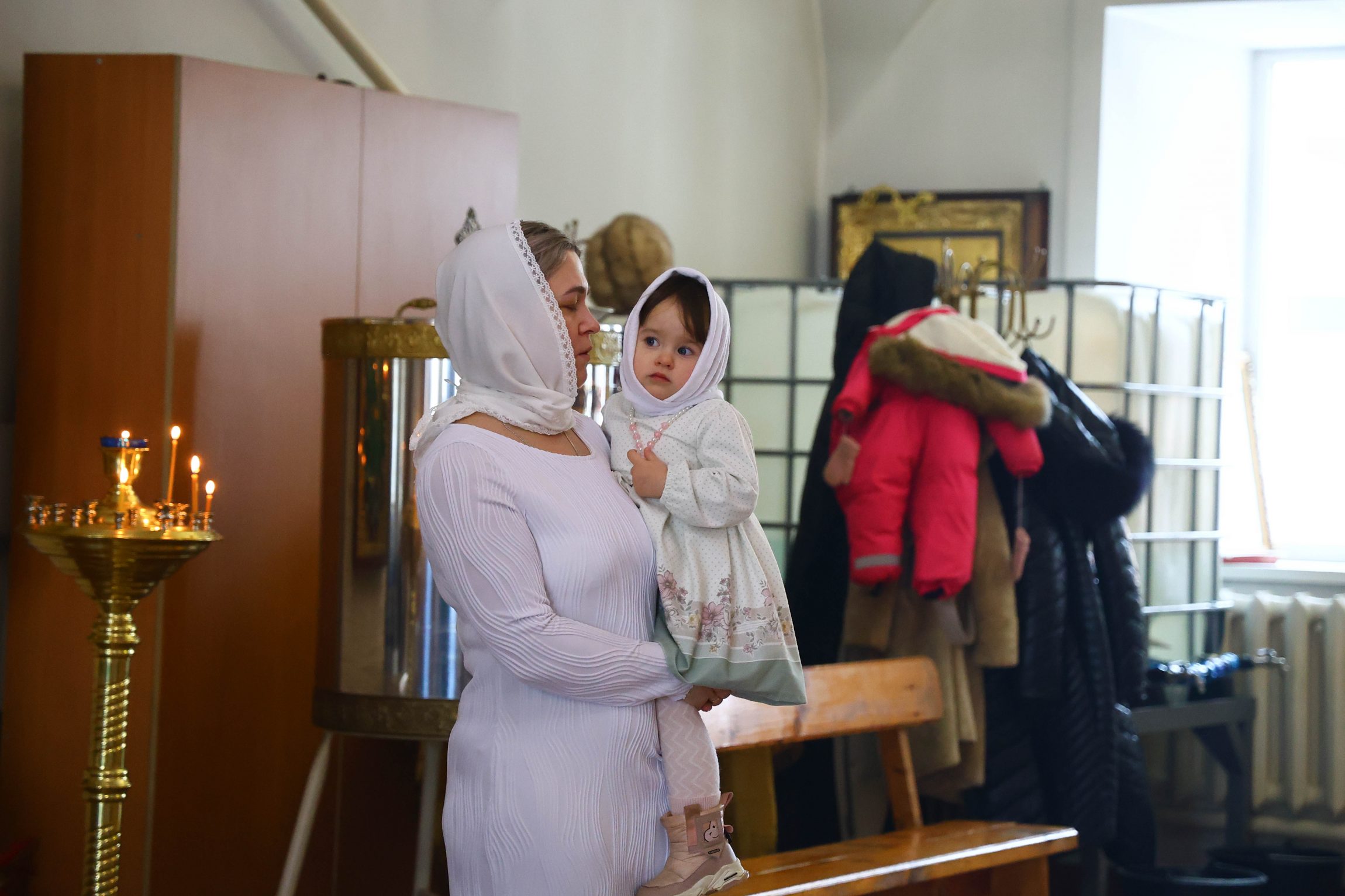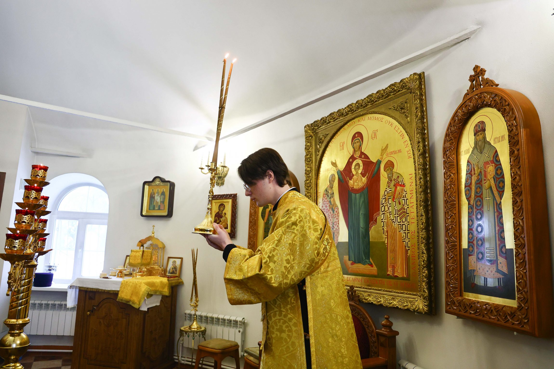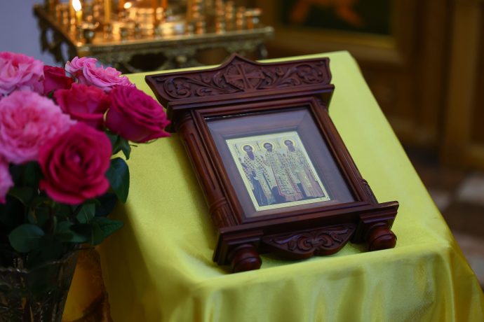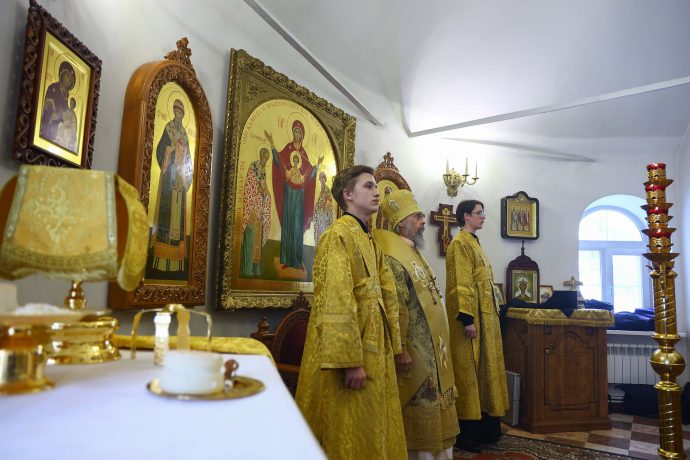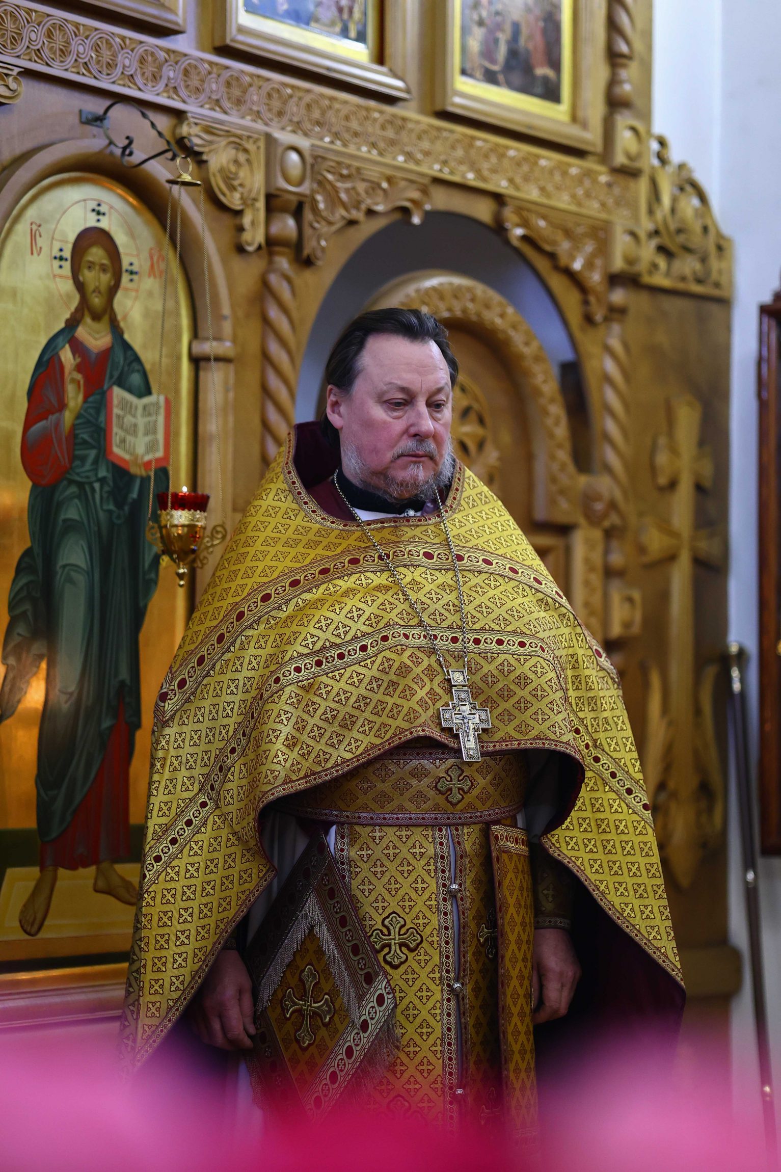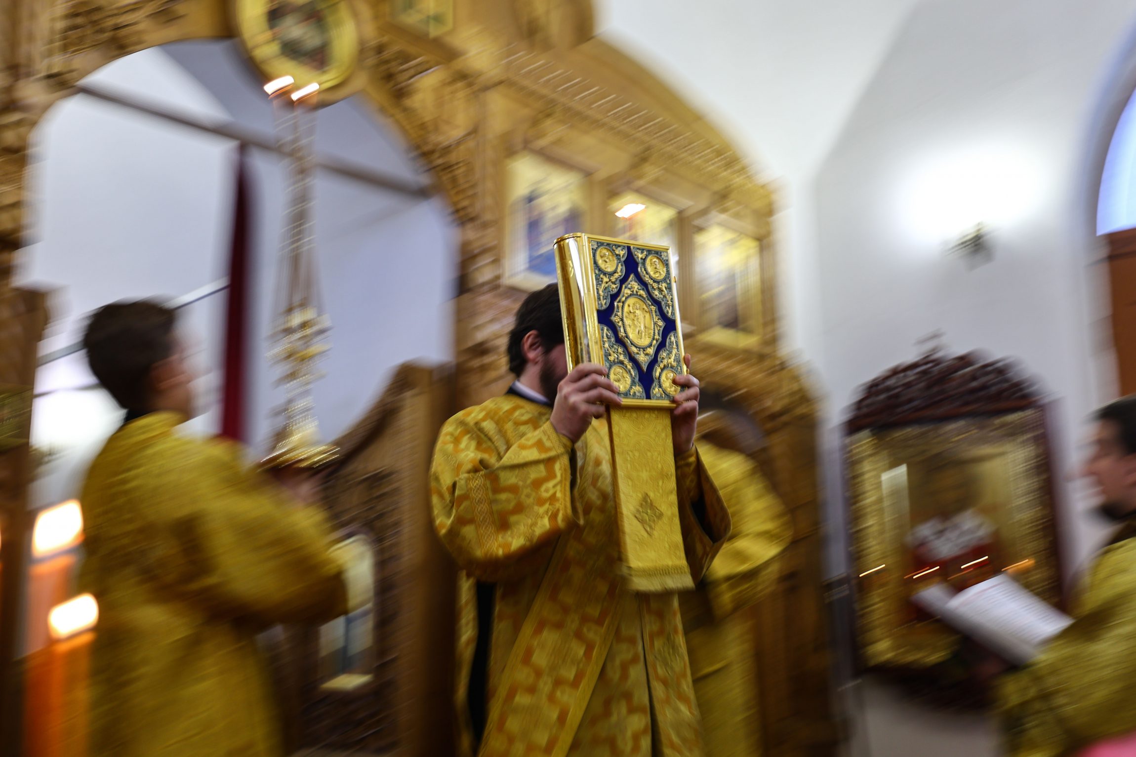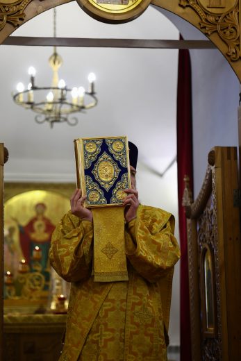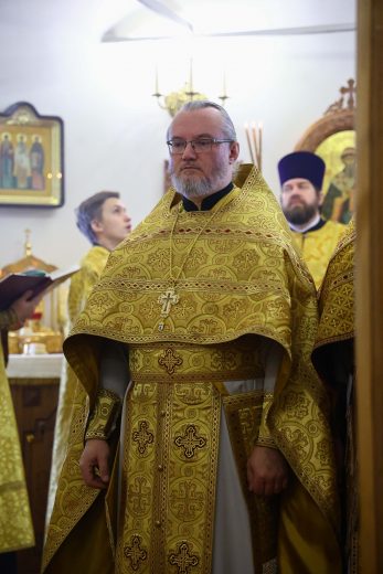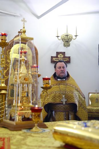 На сугубой ектении вознесены молитвы о благопоспешении христолюбивому Российскому воинству в установлении мира в сию лихую годину, на Святую Русь нашедшую, о мире на Украине, а также о сохранении единства святого Православия.