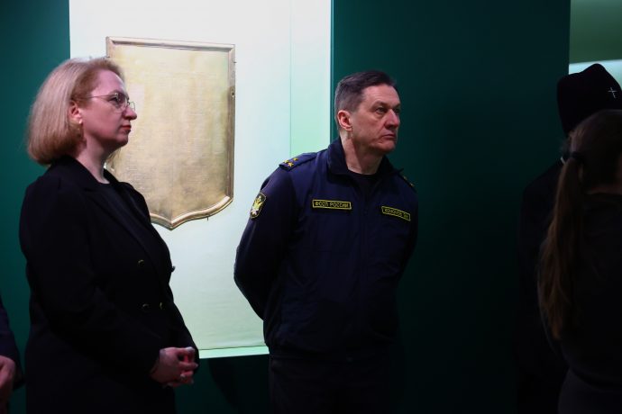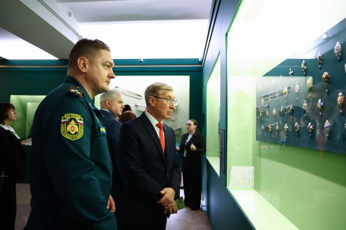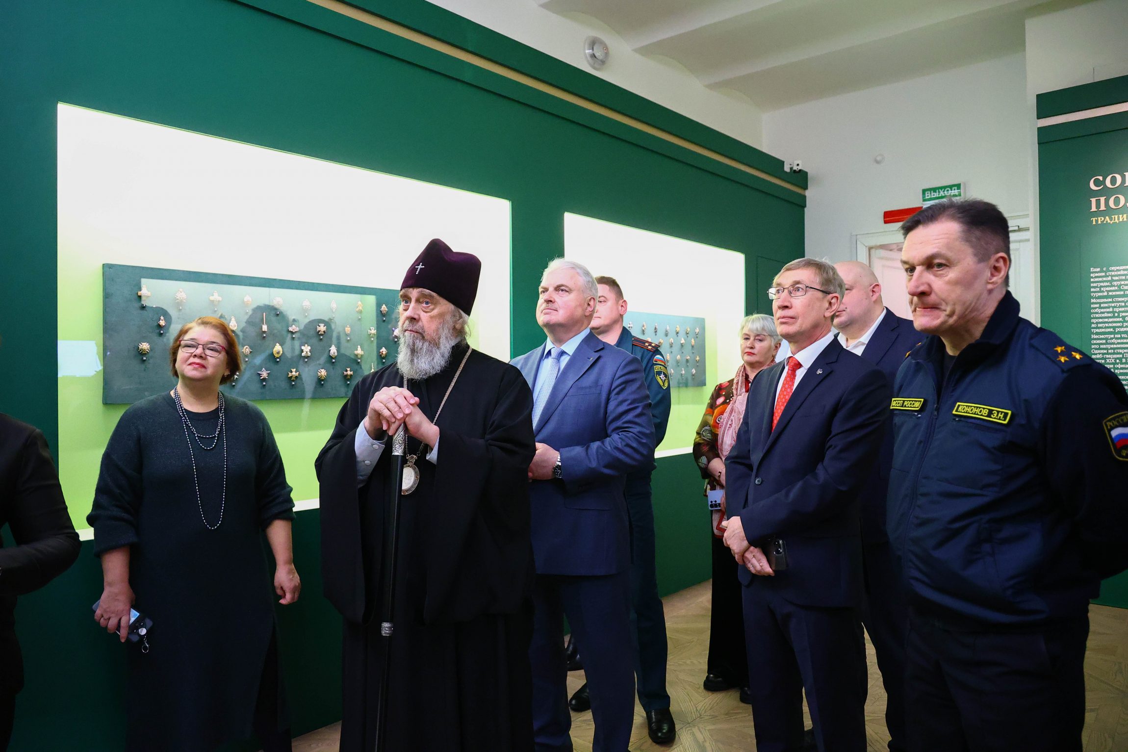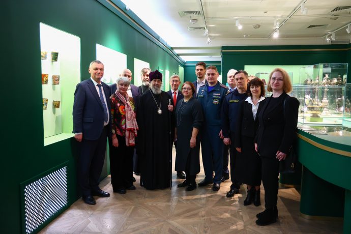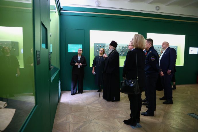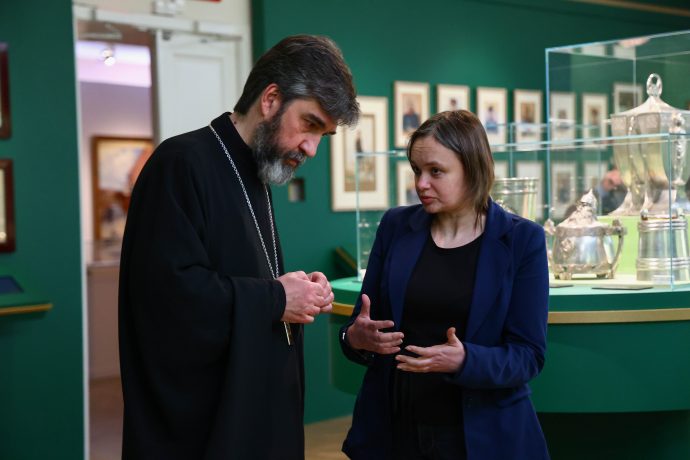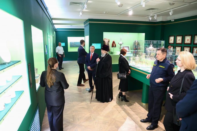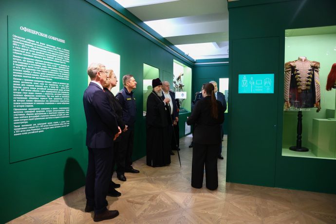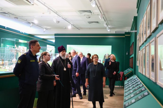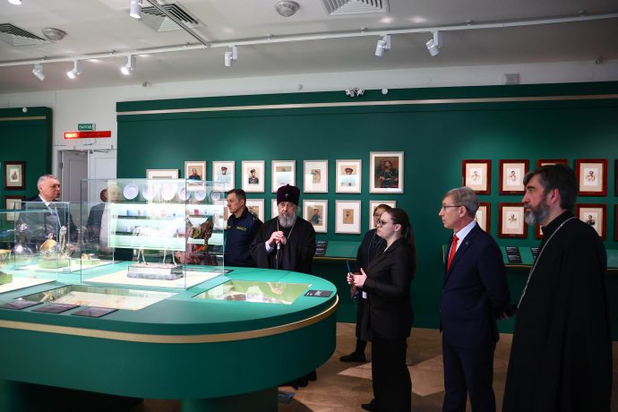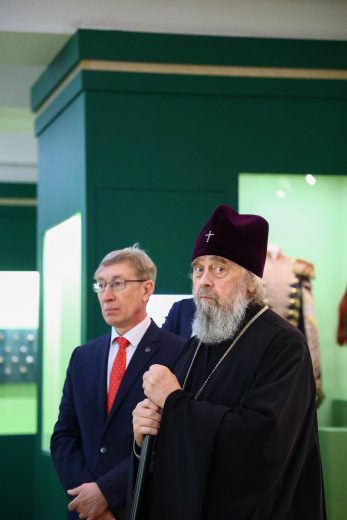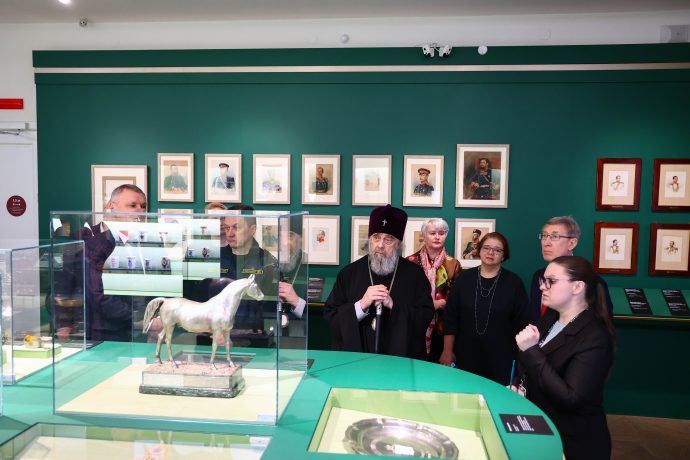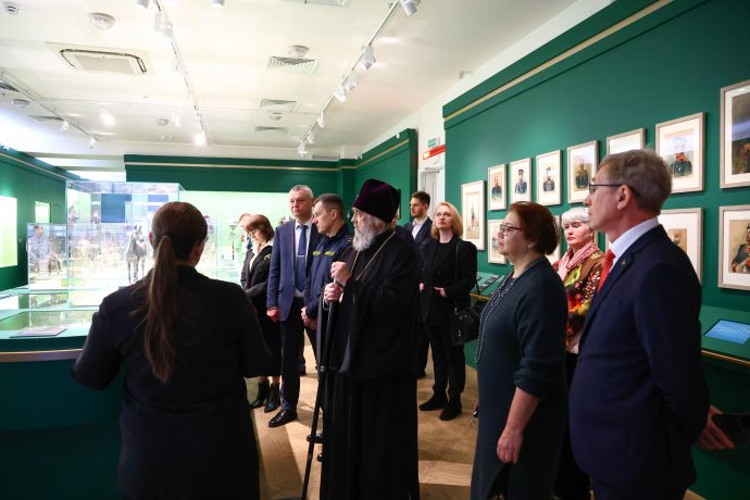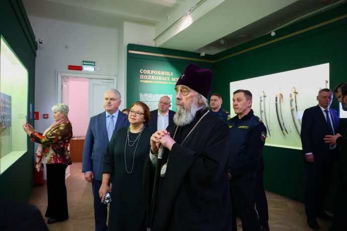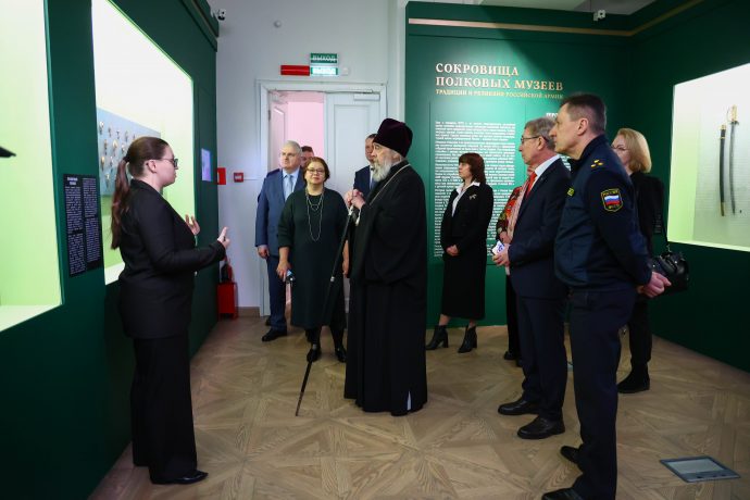 Митрополит Тульский и Ефремовский Алексий ознакомился с выставкой «Сокровища полковых музеев. Традиции и реликвии российской армии», открытой в Тульском филиале Государственного исторического музея.