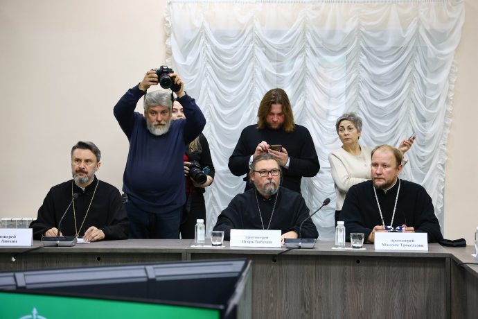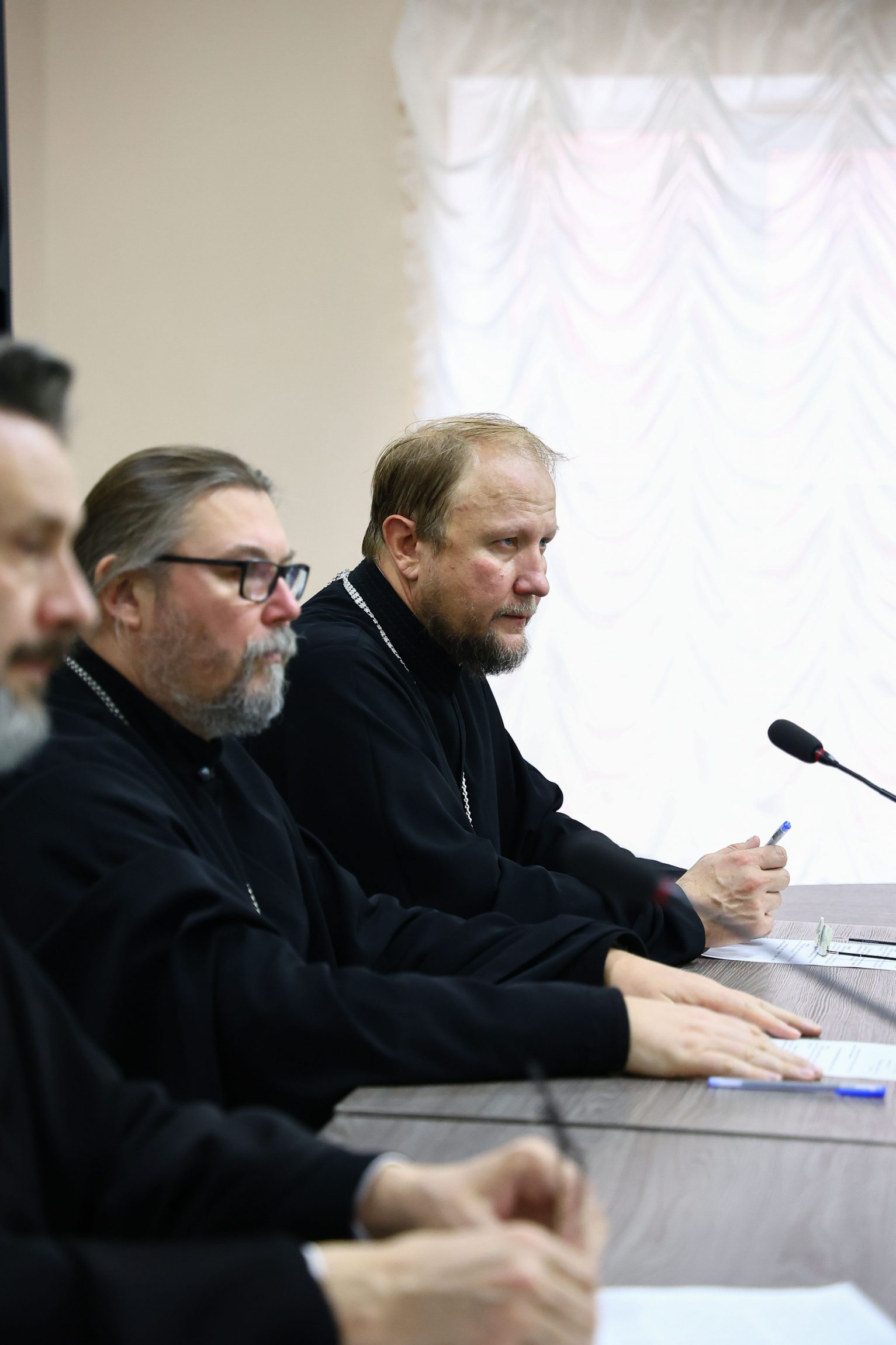 Митрополит Алексий, возглавивший работу заседания, приветствовал собравшихся и озвучил основные темы для обсуждения.