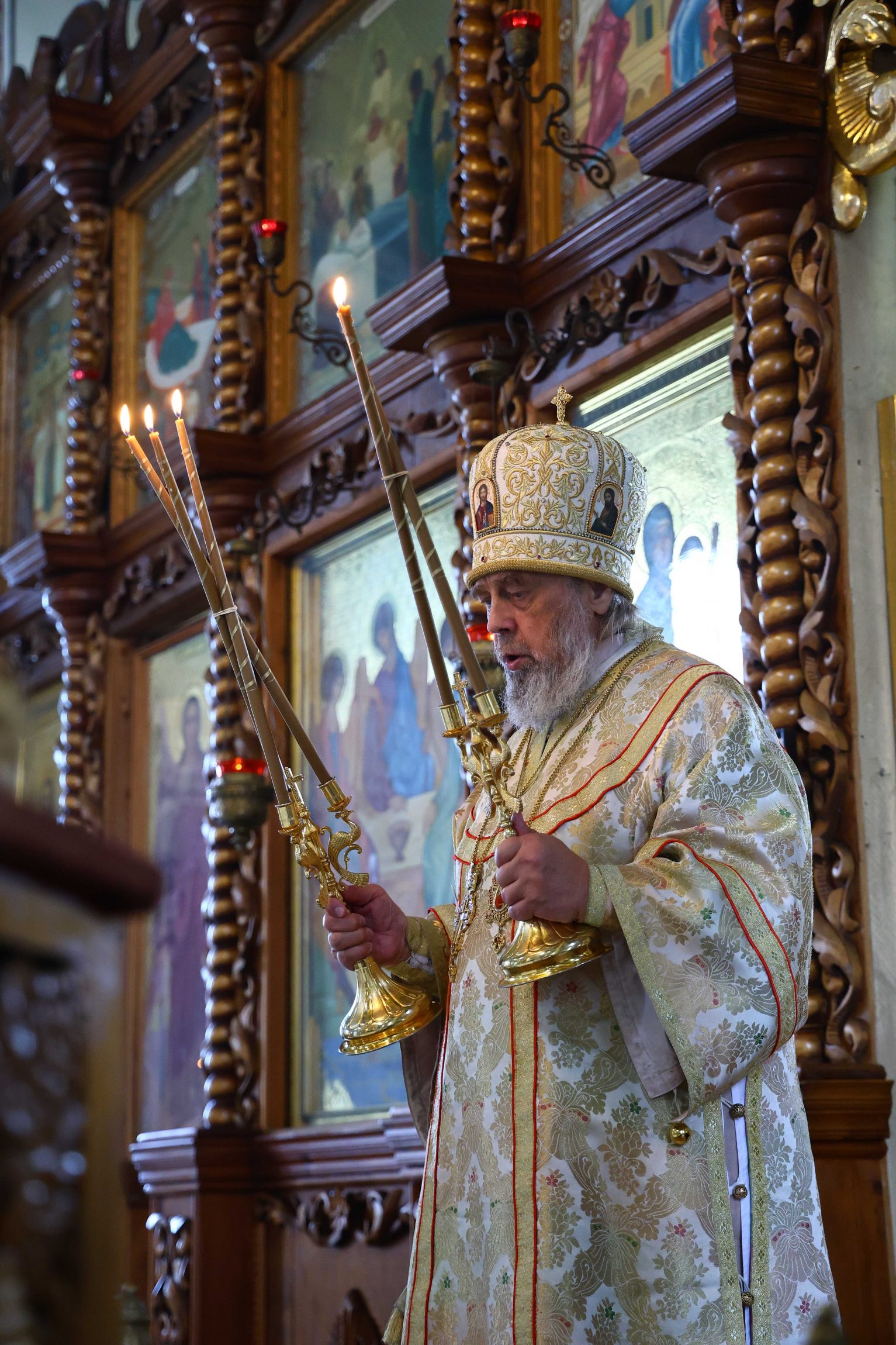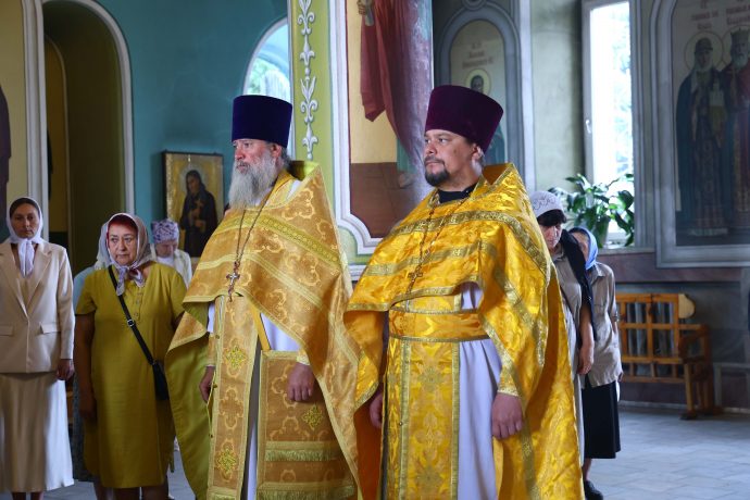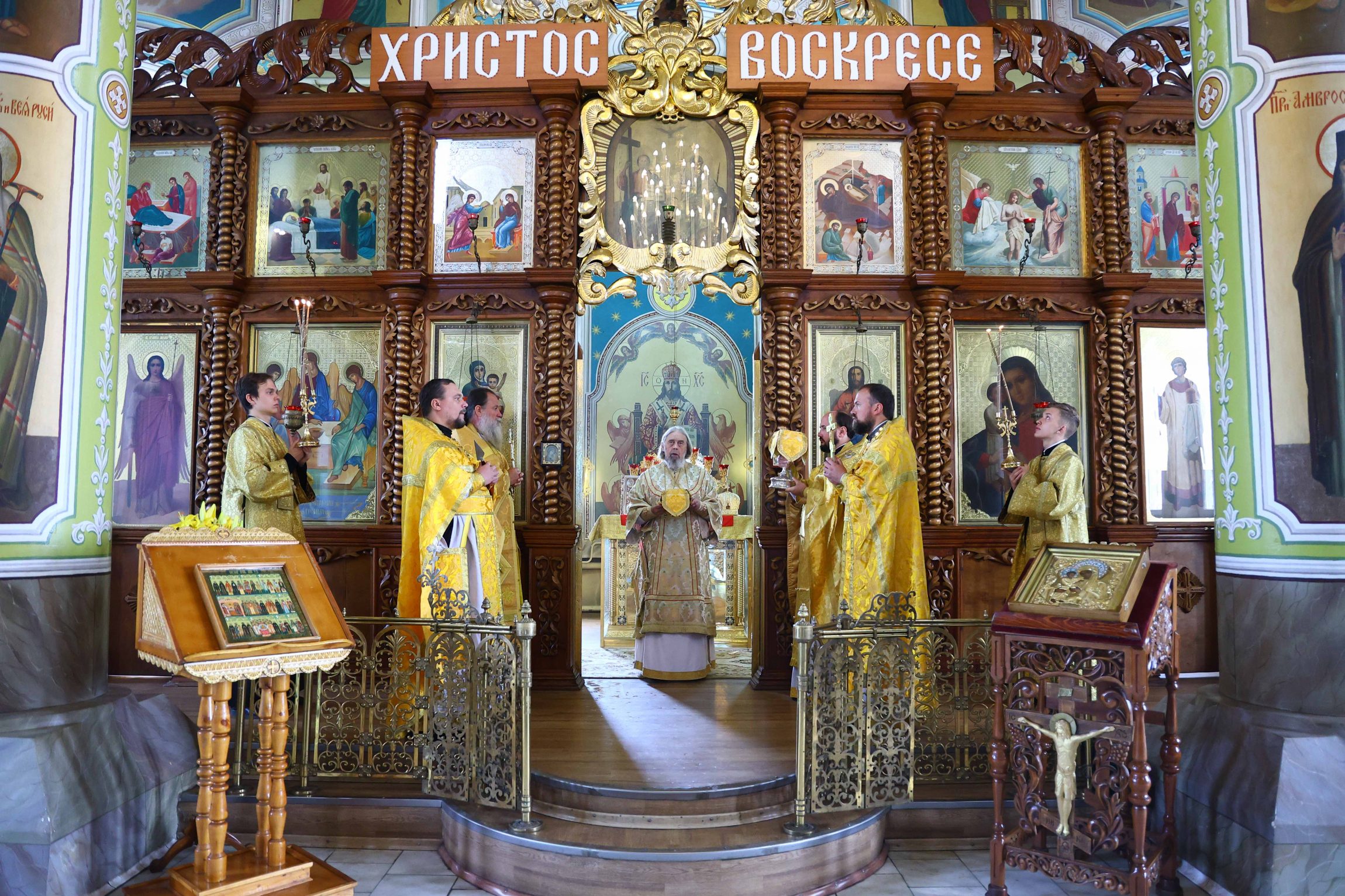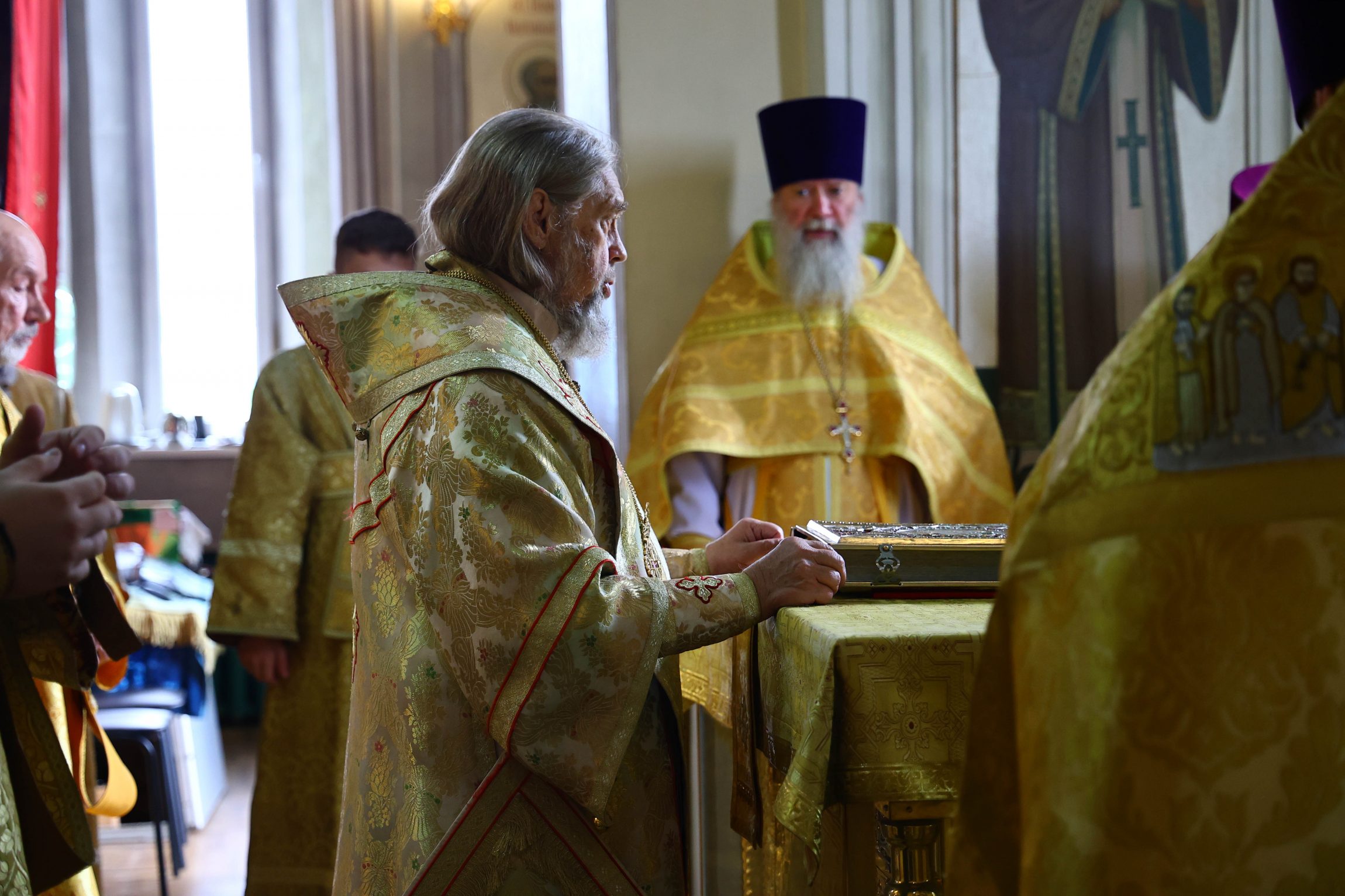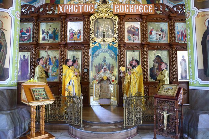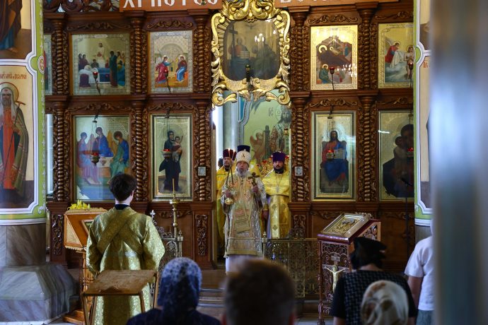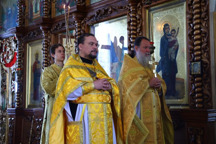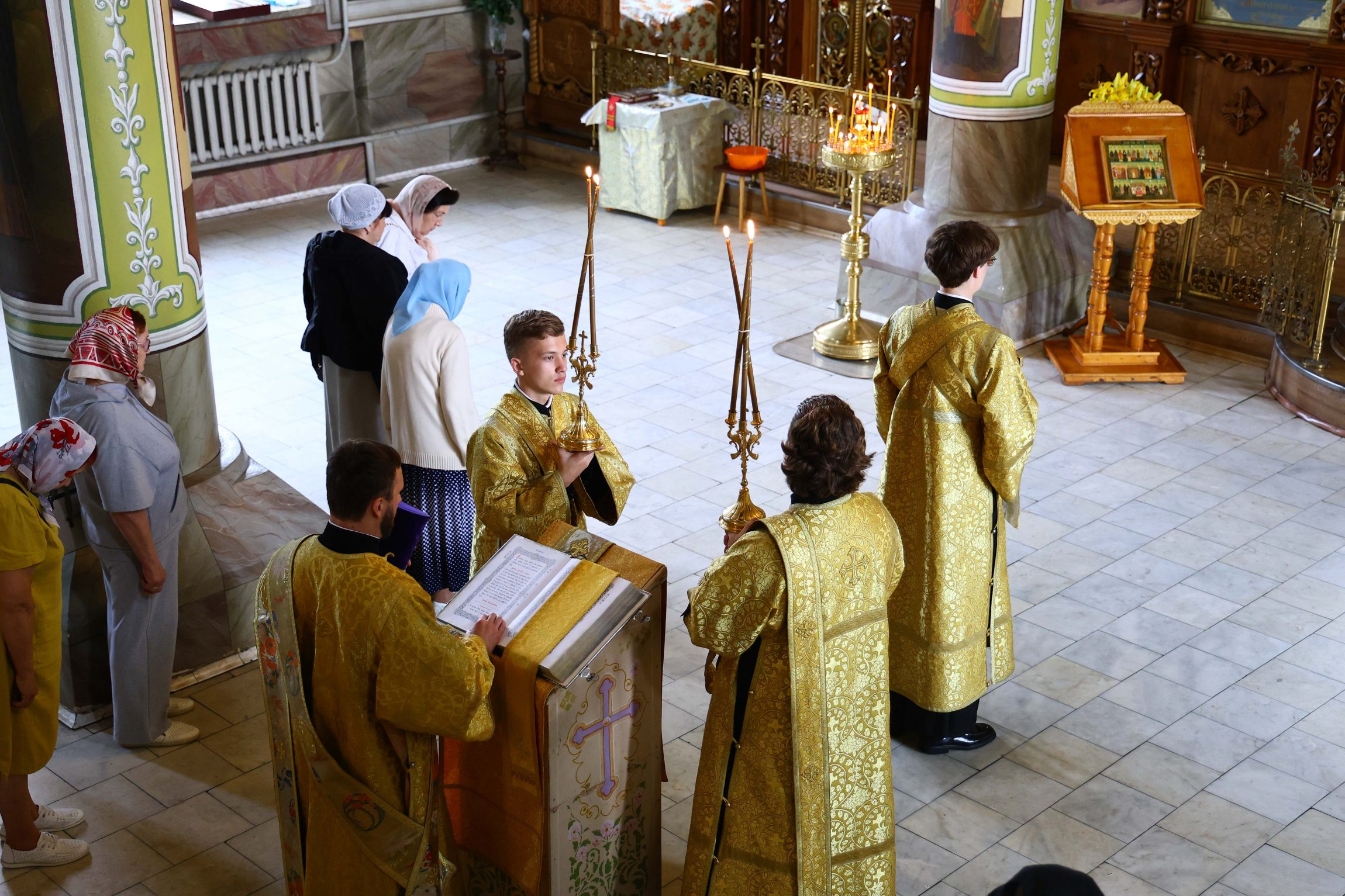 На сугубой ектении вознесены молитвы о благопоспешении христолюбивому Российскому воинству в установлении мира в сию лихую годину, на Святую Русь нашедшую, о мире на Украине, а также о сохранении единства святого Православия.