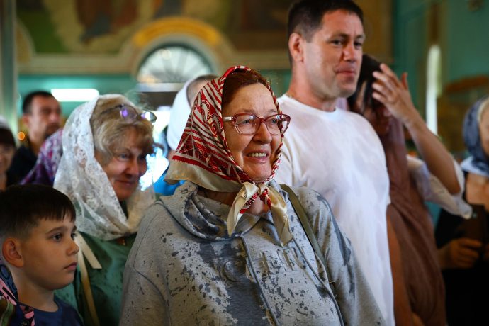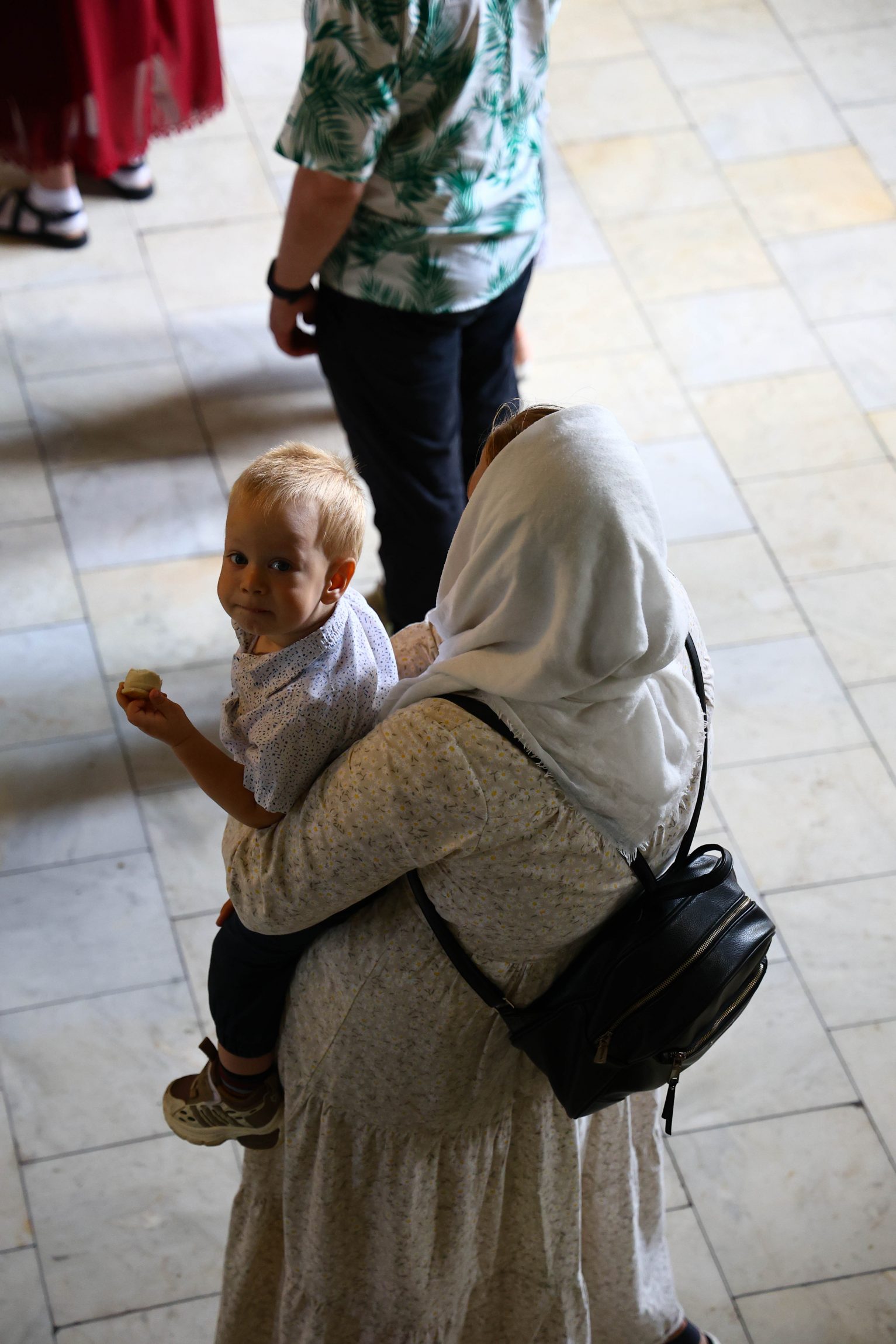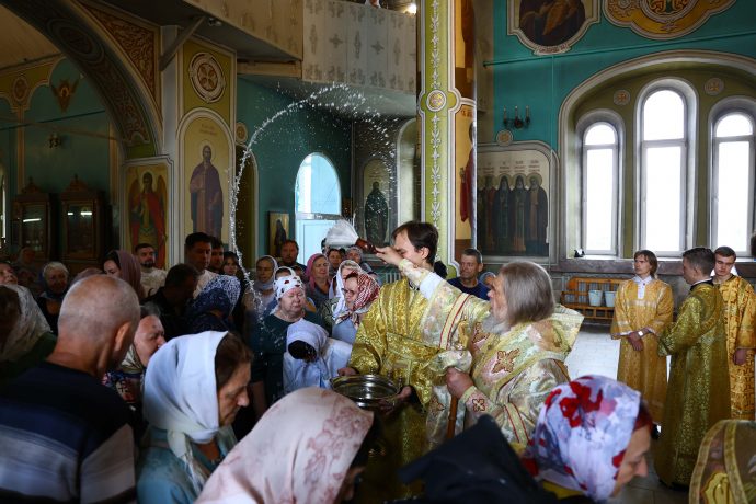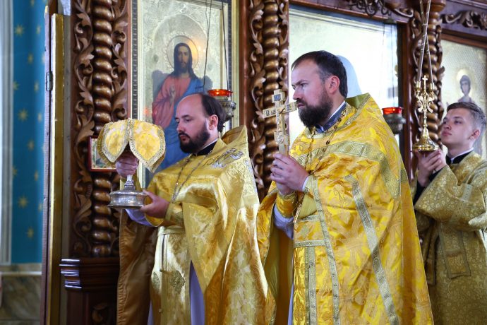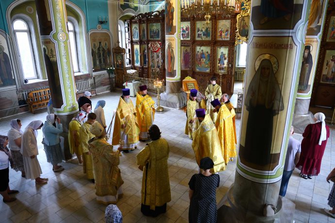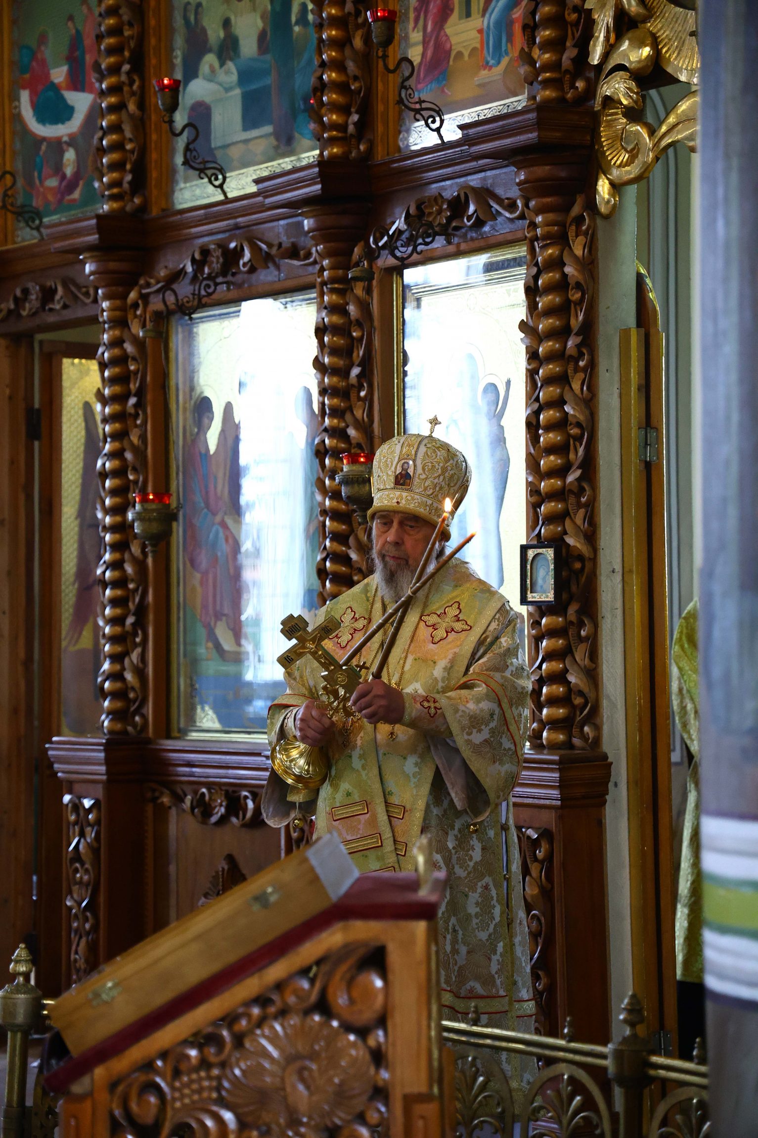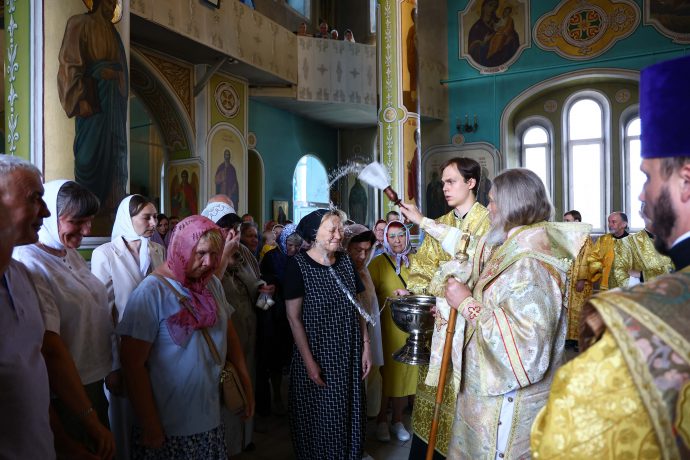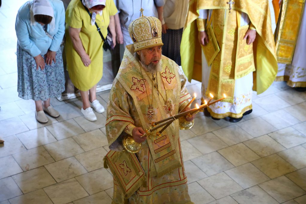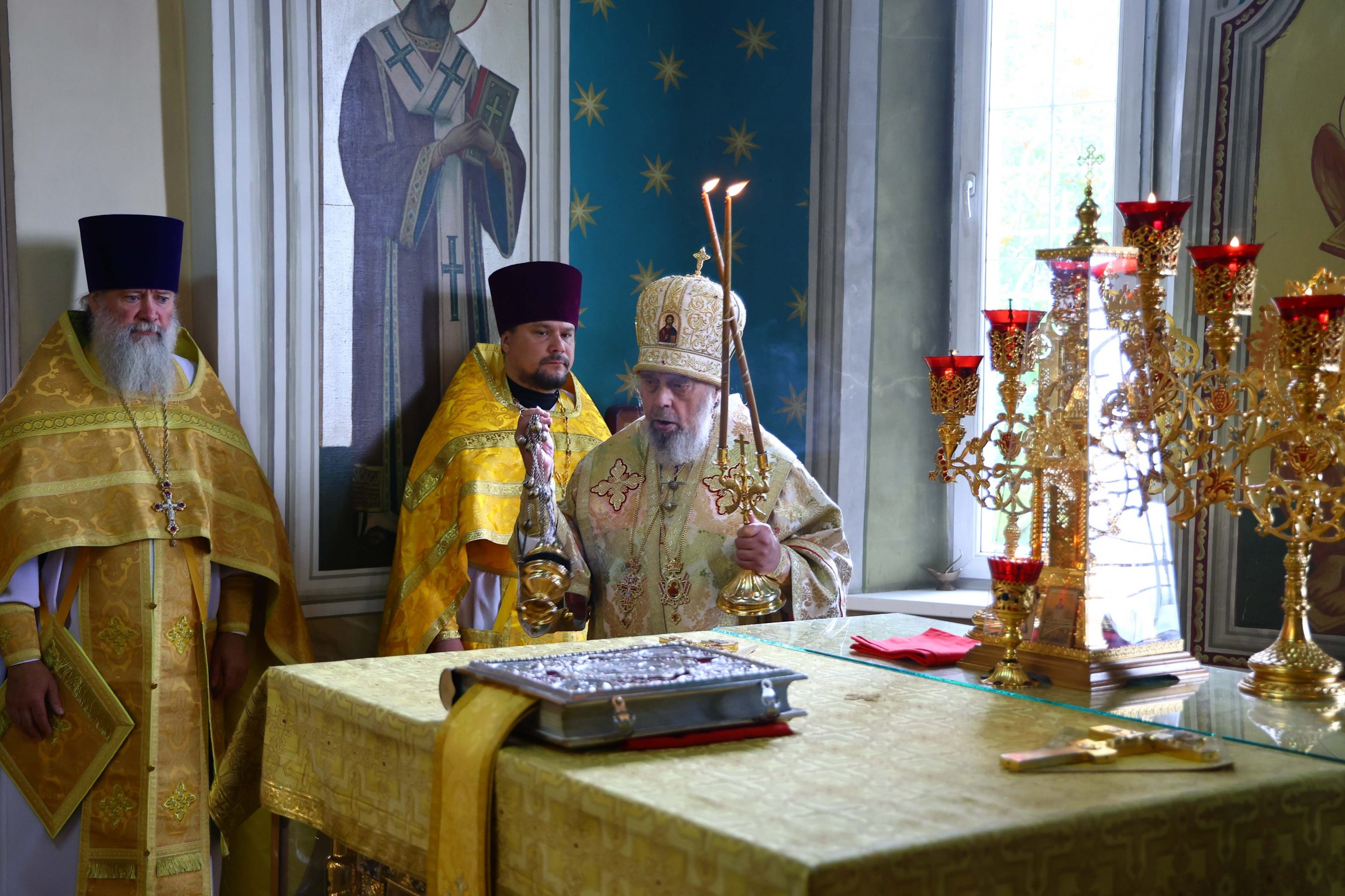 На сугубой ектении вознесены молитвы о благопоспешении христолюбивому Российскому воинству в установлении мира в сию лихую годину, на Святую Русь нашедшую, о мире на Украине, а также о сохранении единства святого Православия.