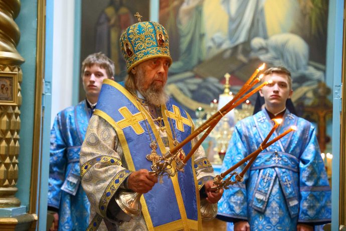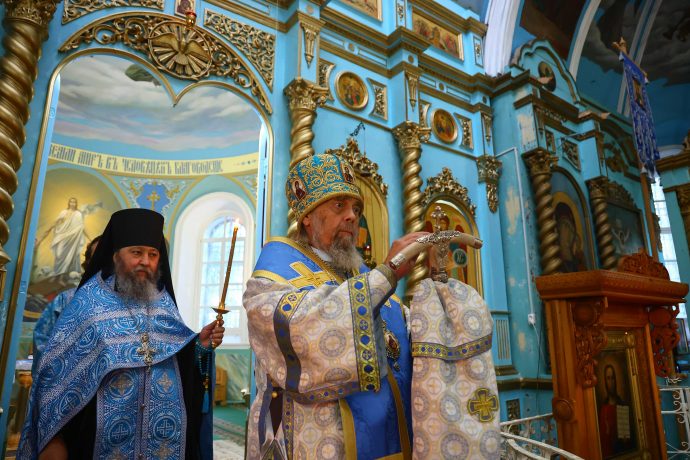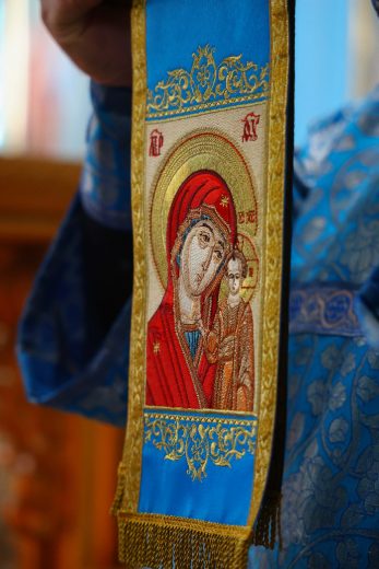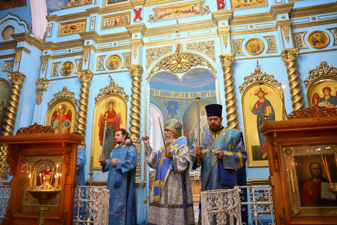Благодарю всеблагое Божие смотрение и благословение Царицы Небесной, Игумении сего святого места, судившее и моей мерности вместе с вами разделить наше великое духовное торжество и ликование со всей Вселенной, ибо Пречистая и Пренепорочная Пресвятая Приснодева Богородица Мария явила Себя огнезрачным световидным столпом, утвержденным на земле, а простирающимся в самые глубины небесные, вводящая в божественную жизнь естество человеческое, а в жизнь человеческого естества — Единого от Святой Троицы как Нового Адама, перевозглавившего собою от Адама ветхого весь человеческий род и весь поток истории Единородного Божьего Сына, ставшего и Сыном человеческим и явившего Себя всем людям как Путь, Истину и Жизнь (Ин. 14, 6).