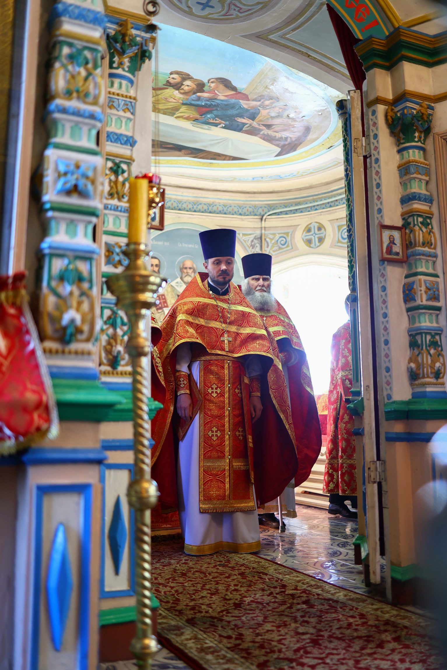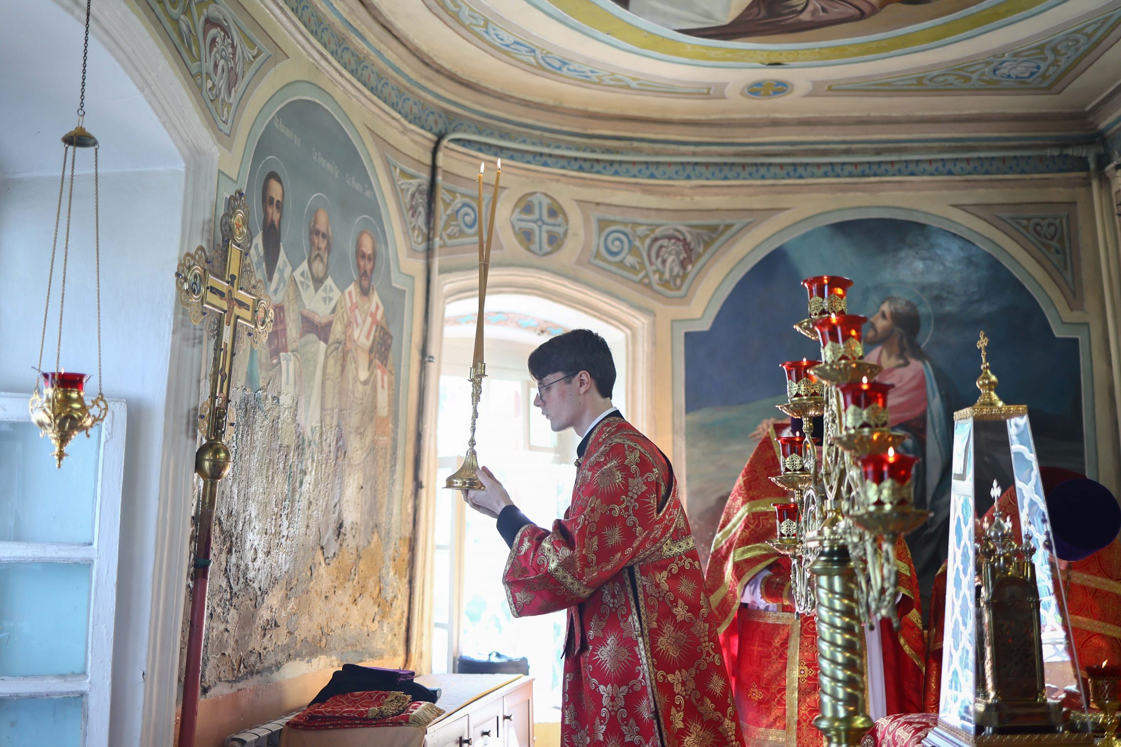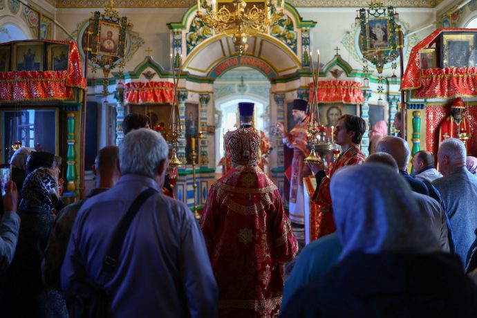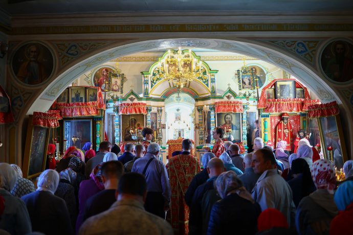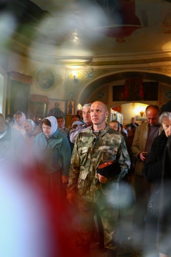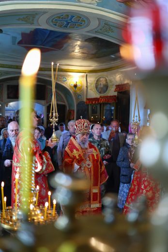 На сугубой ектении вознесены молитвы о благопоспешении христолюбивому Российскому воинству в установлении мира в сию лихую годину, на Святую Русь нашедшую, о мире на Украине, а также о сохранении единства святого Православия.