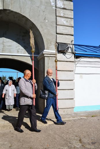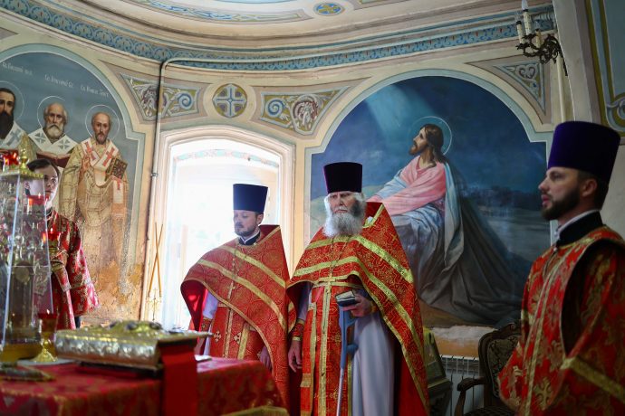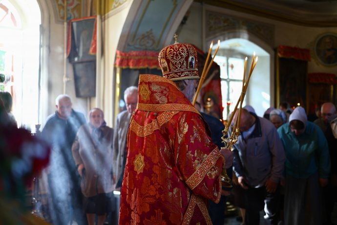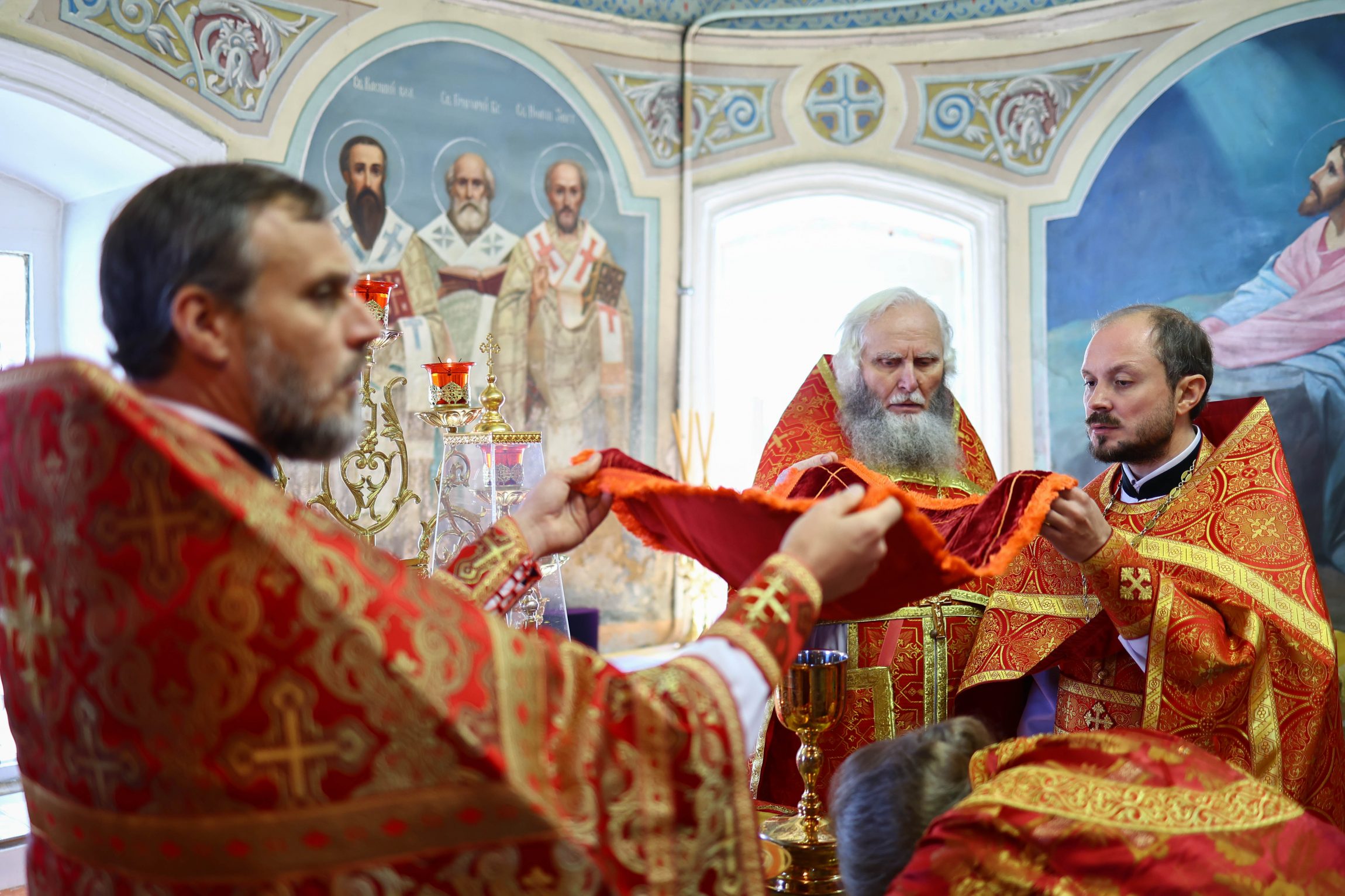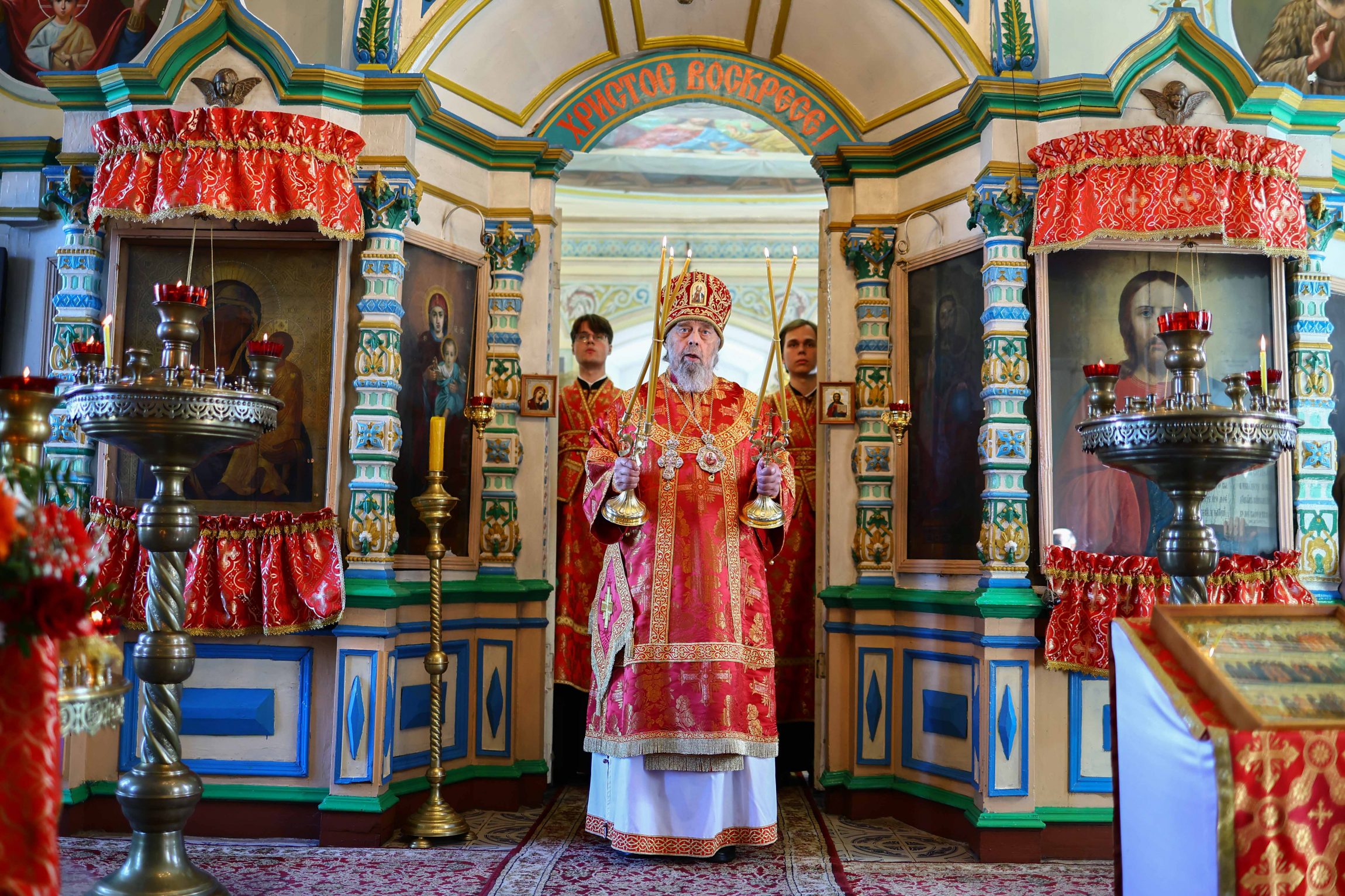 На сугубой ектении вознесены молитвы о благопоспешении христолюбивому Российскому воинству в установлении мира в сию лихую годину, на Святую Русь нашедшую, о мире на Украине, а также о сохранении единства святого Православия.