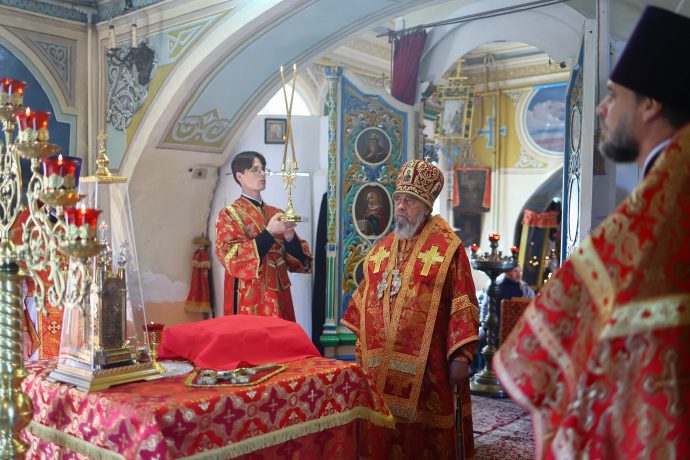 По окончании богослужения совершено славление перед чтимым образом Предтечи и Крестителя Господня Иоанна, после чего владыка обратился к духовенству и мирянам: «В благословенный день престольного торжества сего святого храма, здесь, на священной земле Куликова поля, первого поля ратной славы нашего Отечества, под сводами этого Божьего дома, любовью наших пращуров посвященного дивному сиянию христоподобного служения и жительства Честного Пророка, Предтечи и Крестителя Господня Иоанна, словом мира и любви о Христе приветствую всех вас, всечестные отцы и возлюбленные о Господе братья и сестры!