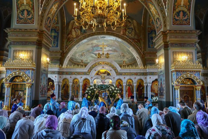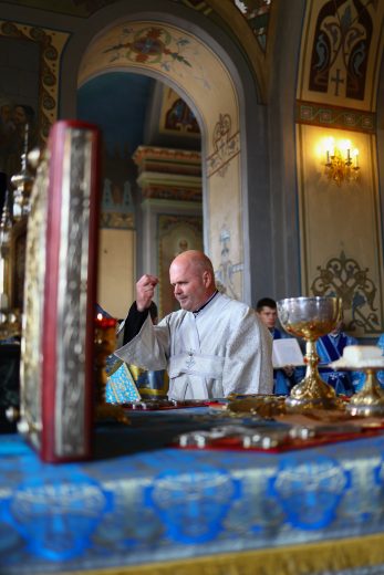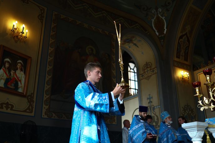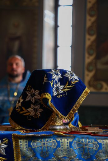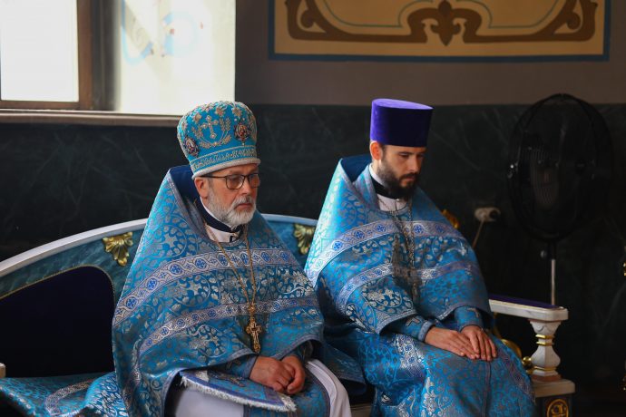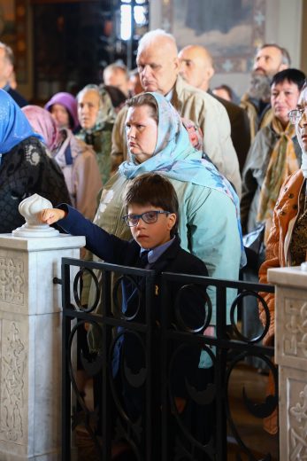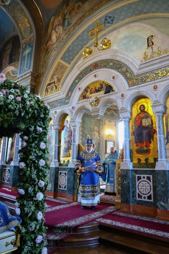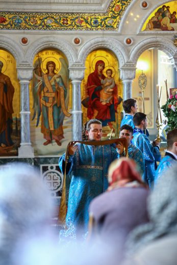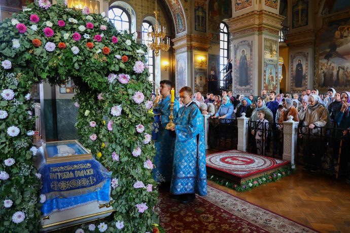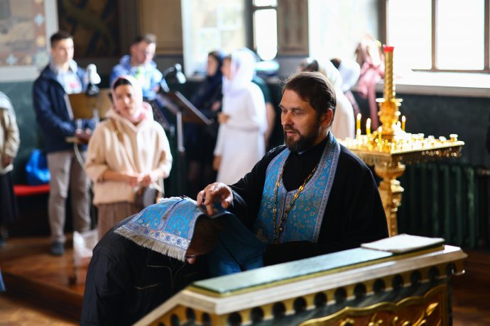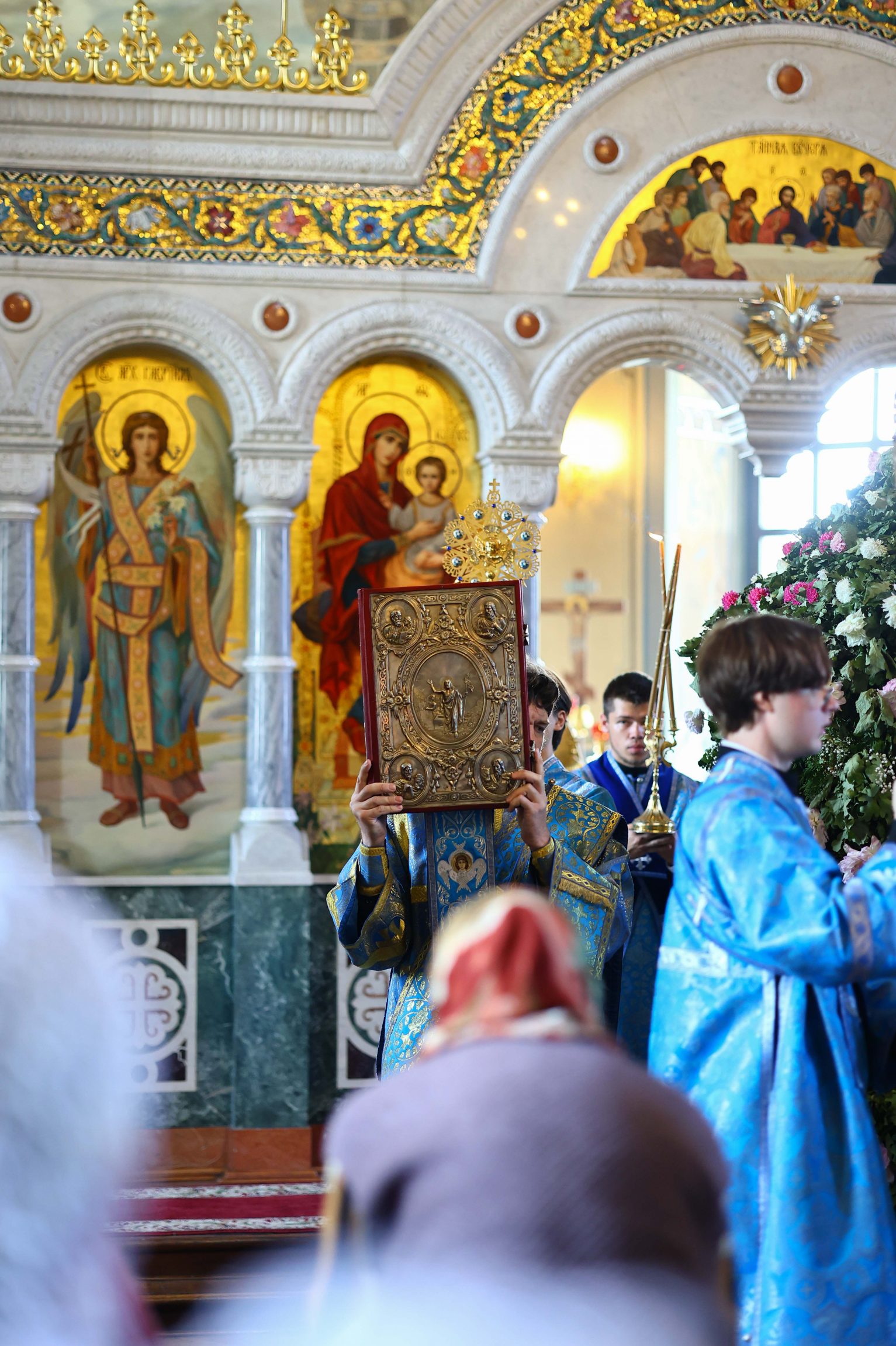 По окончании богослужения совершено славление Божией Матери с окроплением молящихся святой водой и возглашением уставного многолетия.