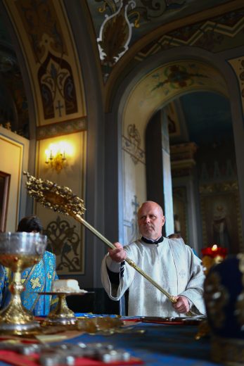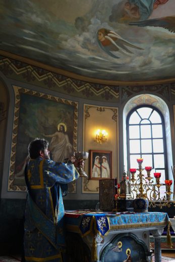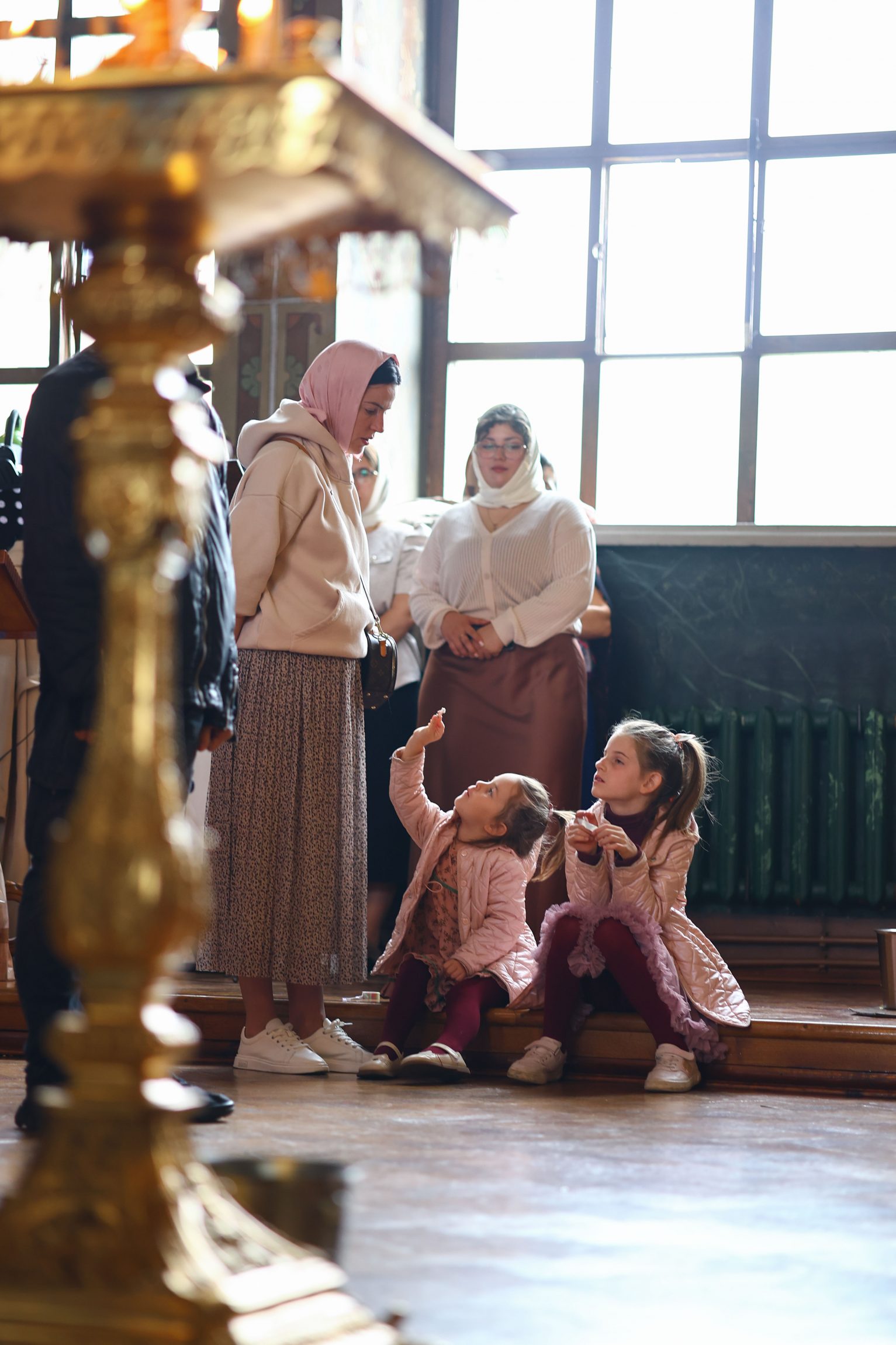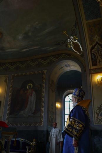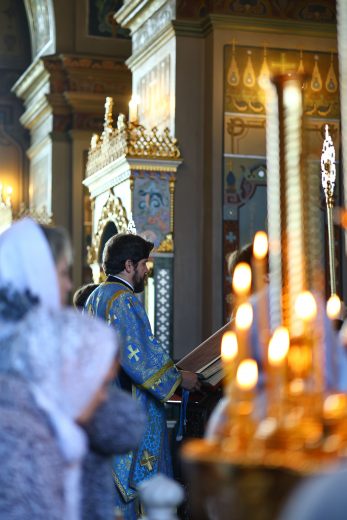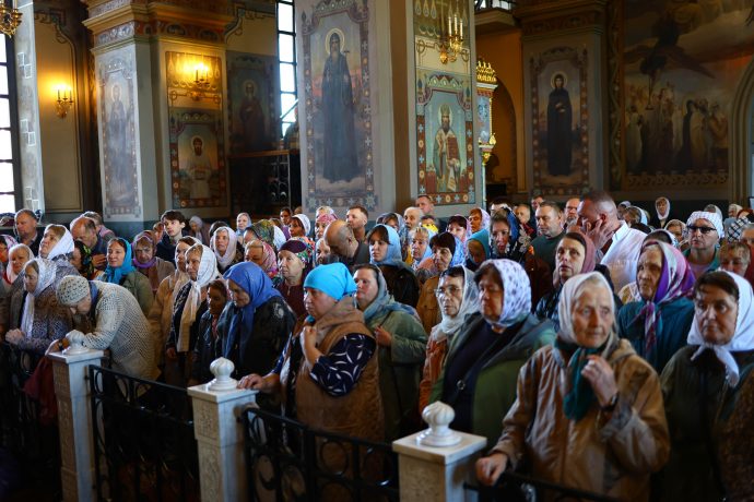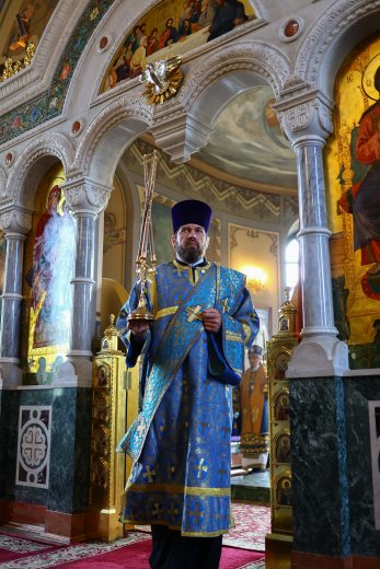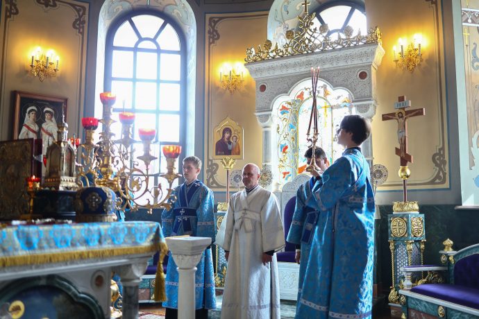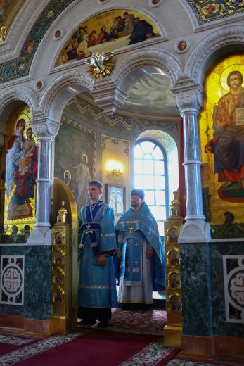 На сугубой ектении вознесены молитвы о благопоспешении христолюбивому Российскому воинству в установлении мира в сию лихую годину, на Святую Русь нашедшую, о мире на Украине, а также о сохранении единства святого Православия.