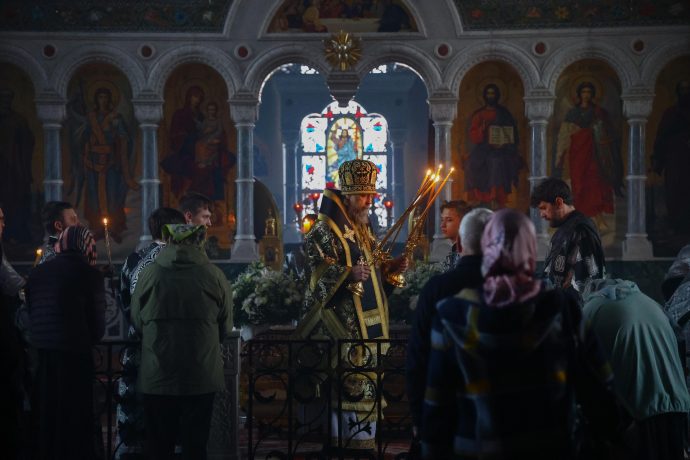 Далее митрополит Алексий обратился с архипастырским словом к молящимся: «В Великую и благословенную сию Субботу умолкло в земных просторах радостоносное слово уст бессмертного Единородного Божьего Сына, Бога Слова, взыскуя создаваемое каждым из нас в своем богонечувствии и богозабвении то самое пространство, которое именуется адом, взыскуя всякую свою заблудшую духовную овцу, снисходя в эти, сотворенные свободой человеческой, беспросветные в богонечувствии и богозабвении пространства. Христос умолкает для того, чтобы уже не словом, а самими актом и фактом самозабвенной, жертвенной, жизненосной, Себя источающей до предела перед каждым любовью наполнить эти пространства теплом и живительным светом, потому что самую суть того, откуда происходит это омрачение, как эхо Его голоса, выражающее нетленную и неизменную любовь Отца и Сына и Святого Духа к каждому из нас, мы уничтожить и попрать никаким богонечувствием и богозабвением не можем, мы только способны исказить, извратить, унизить, обезобразить, а Он может исцелить, преобразовать, оживотворить и насытить истинной радостью.