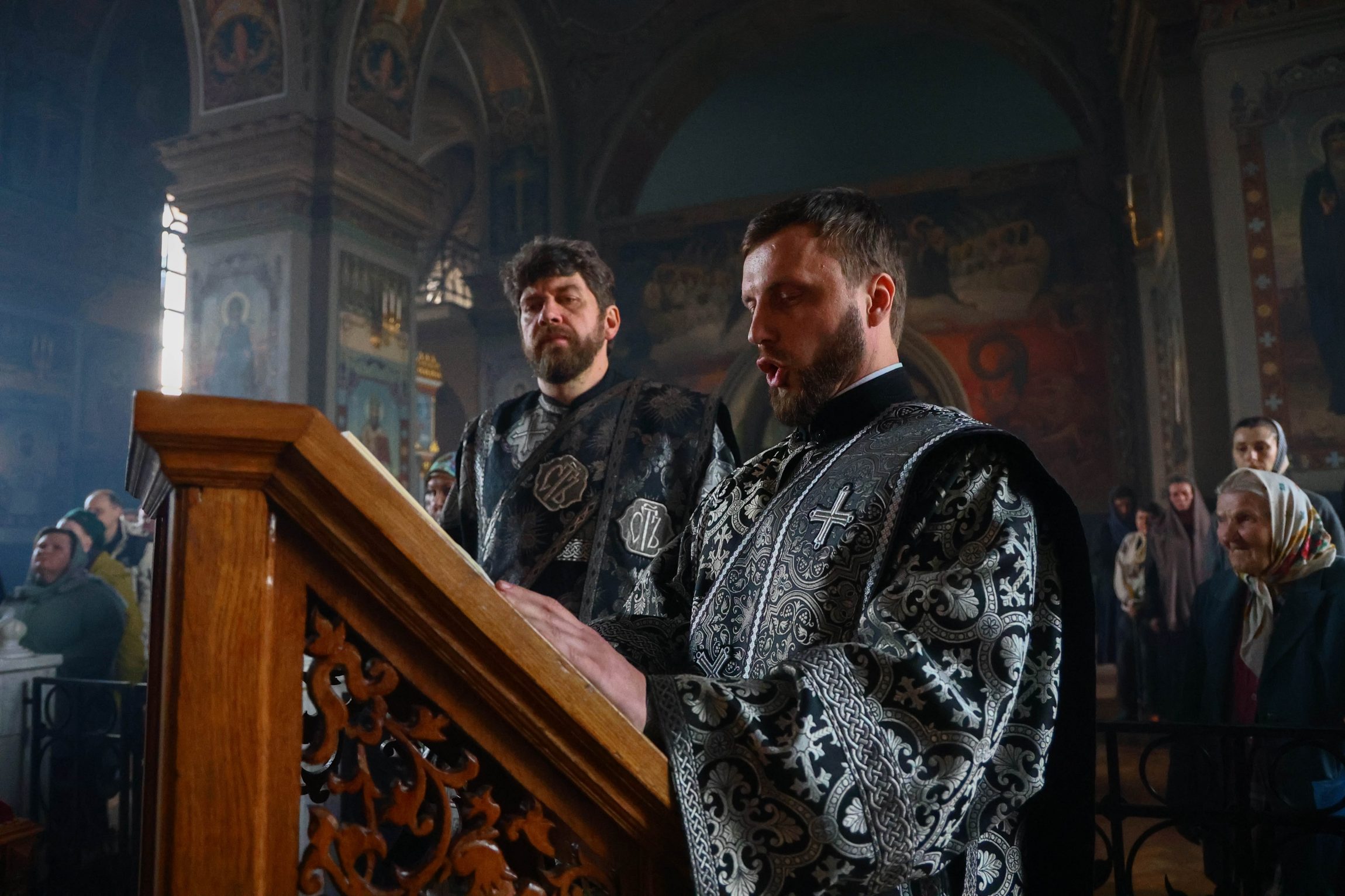 Затем перед Плащаницей были прочитаны: пророчество о воскресении из книги пророка Иезекииля (Иез. 37, 1-14), чтение из Апостола об искупительной Жертве, принесенной Христом (1 Кор. 6, 7-8), после чего владыка прочитал евангельское зачало о запечатании гроба Господня и приставлении к нему стражи (Мф. 27, 62-66).
