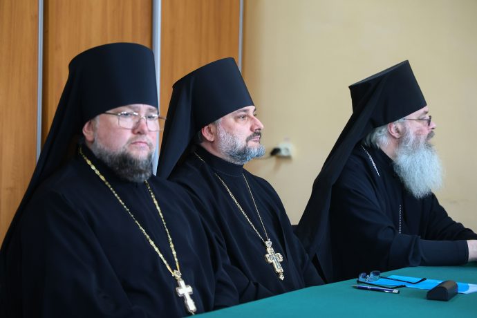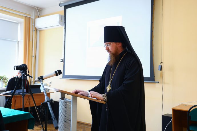 Далее епископ Веневский Феодорит, викарий Тульской епархии, представил вниманию участников заседания доклад на тему: «Идеалы древнего монашества в условиях современного мира: соприкосновение с миром». В своем исследовании владыка выделил три важных тезиса: