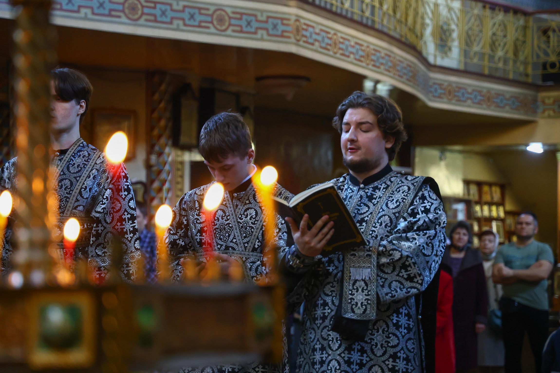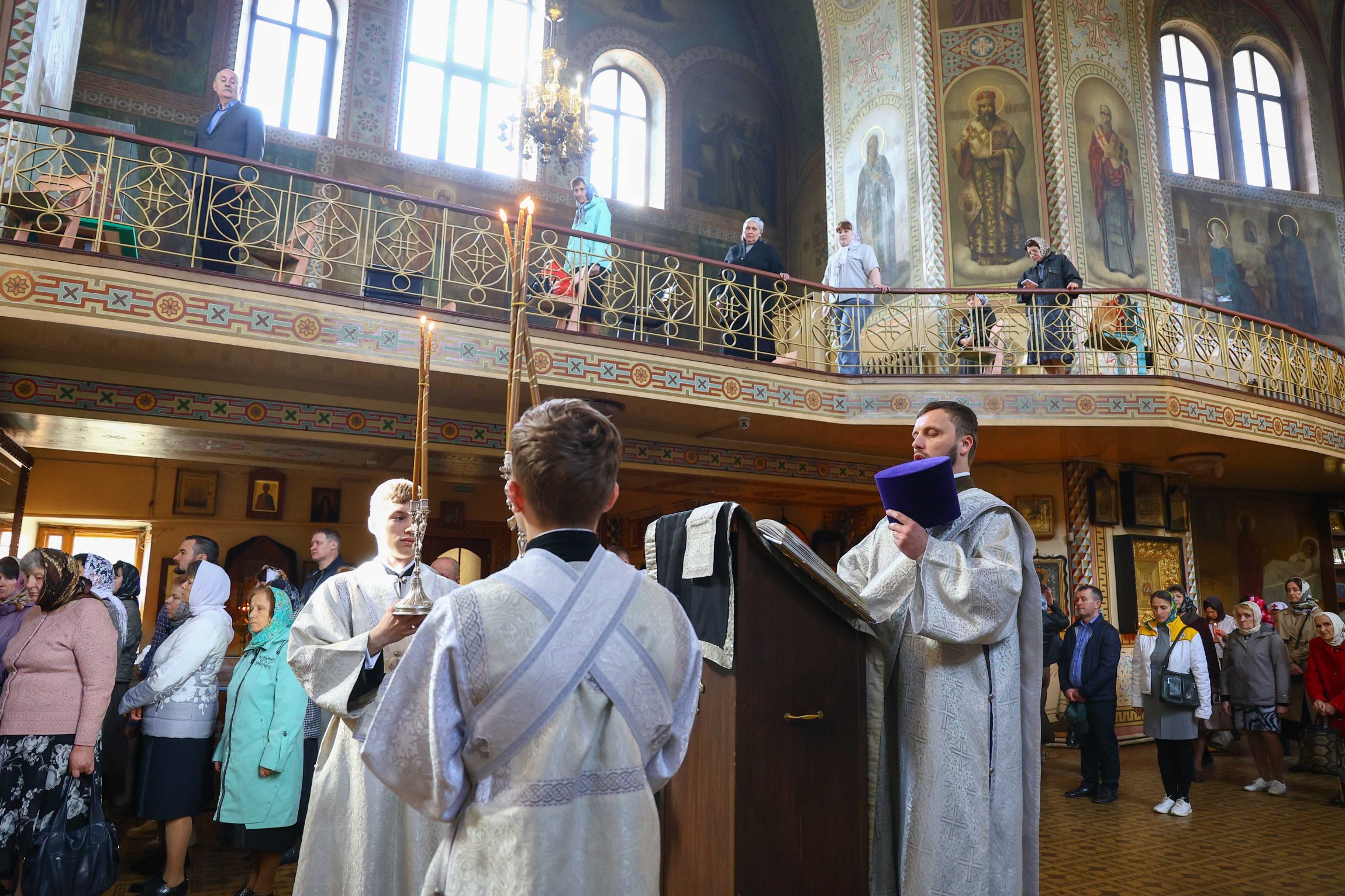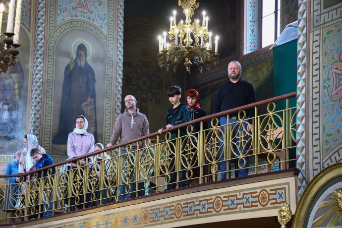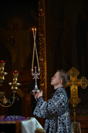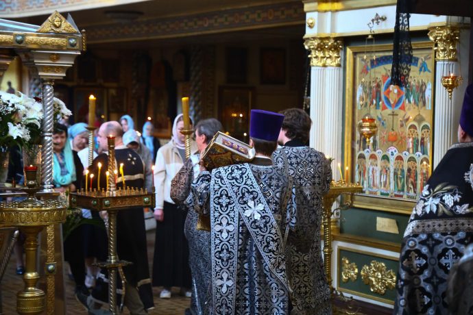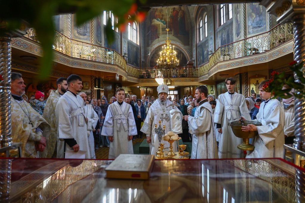 На сугубой ектении вознесены молитвы о благопоспешении христолюбивому Российскому воинству в установлении мира в сию лихую годину, на Святую Русь нашедшую, о мире на Украине, а также о сохранении единства святого Православия.