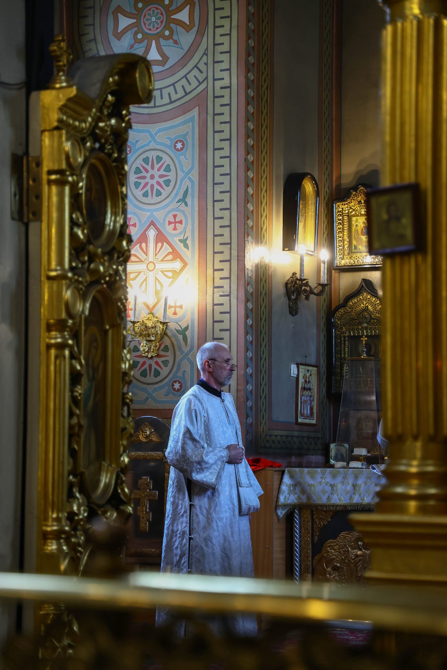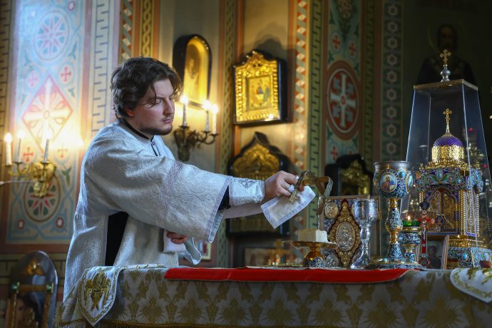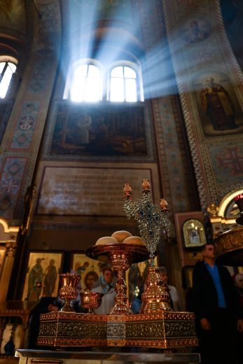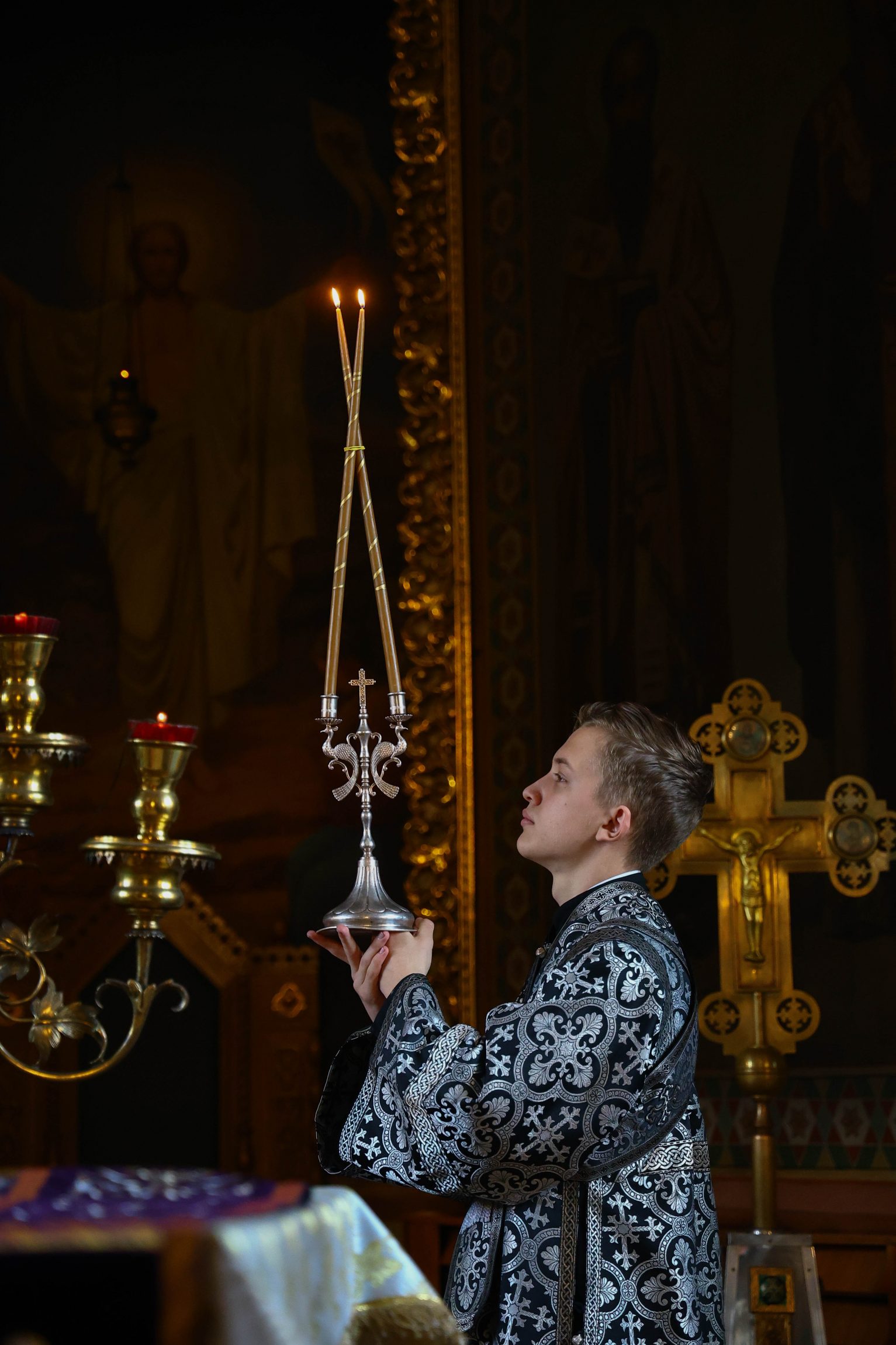 На сугубой ектении вознесены молитвы о благопоспешении христолюбивому Российскому воинству в установлении мира в сию лихую годину, на Святую Русь нашедшую, о мире на Украине, а также о сохранении единства святого Православия.