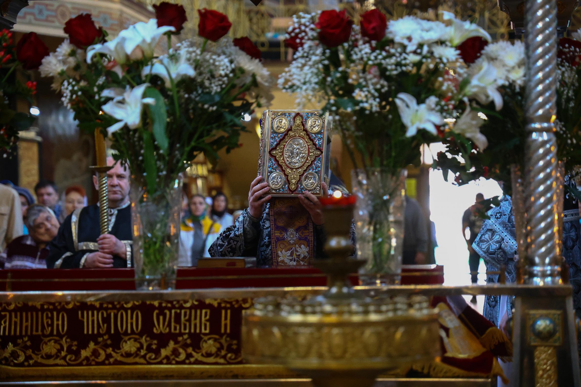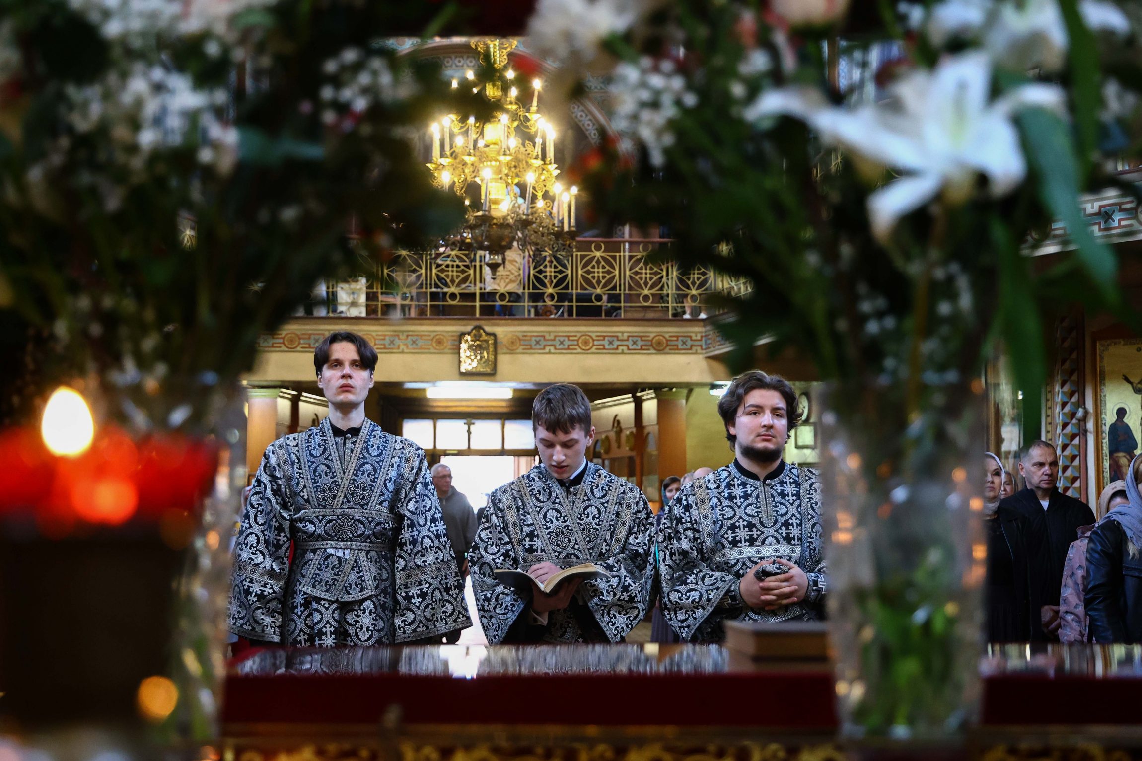 Рад приветствовать причастников с принятием Святых Христовых Таин и всех вас с благословенным завершением трудов и подвигов святого и Великого поста, с укреплением благодатью Господней к тому, чтобы и впредь нам неуклонно, изо дня в день, искать и осуществлять единомыслие, единонравие, единодушие, единочувствие и единодействие с Подвигоположником Спасителем нашим и Господом Иисусом Христом, а в Нем — с Собезначальными Ему Отцом и Святым Духом.