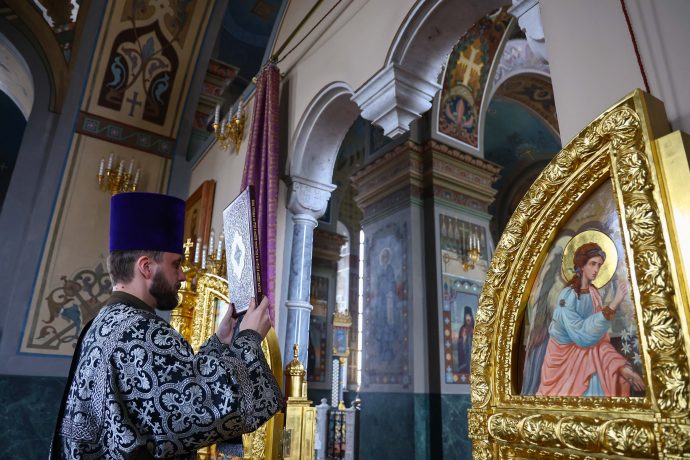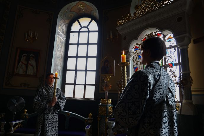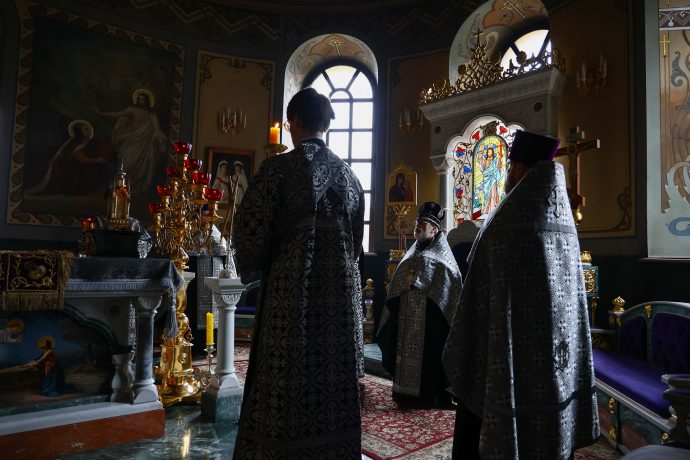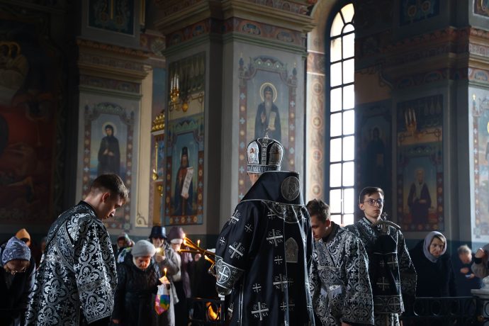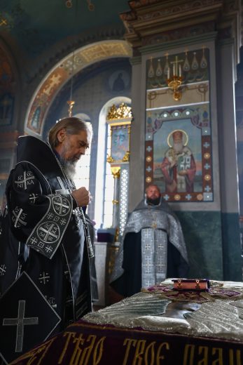Затем владыка совершил малое повечерие, на котором прочитан канон «О распятии Господа и на плач Пресвятой Богородицы».