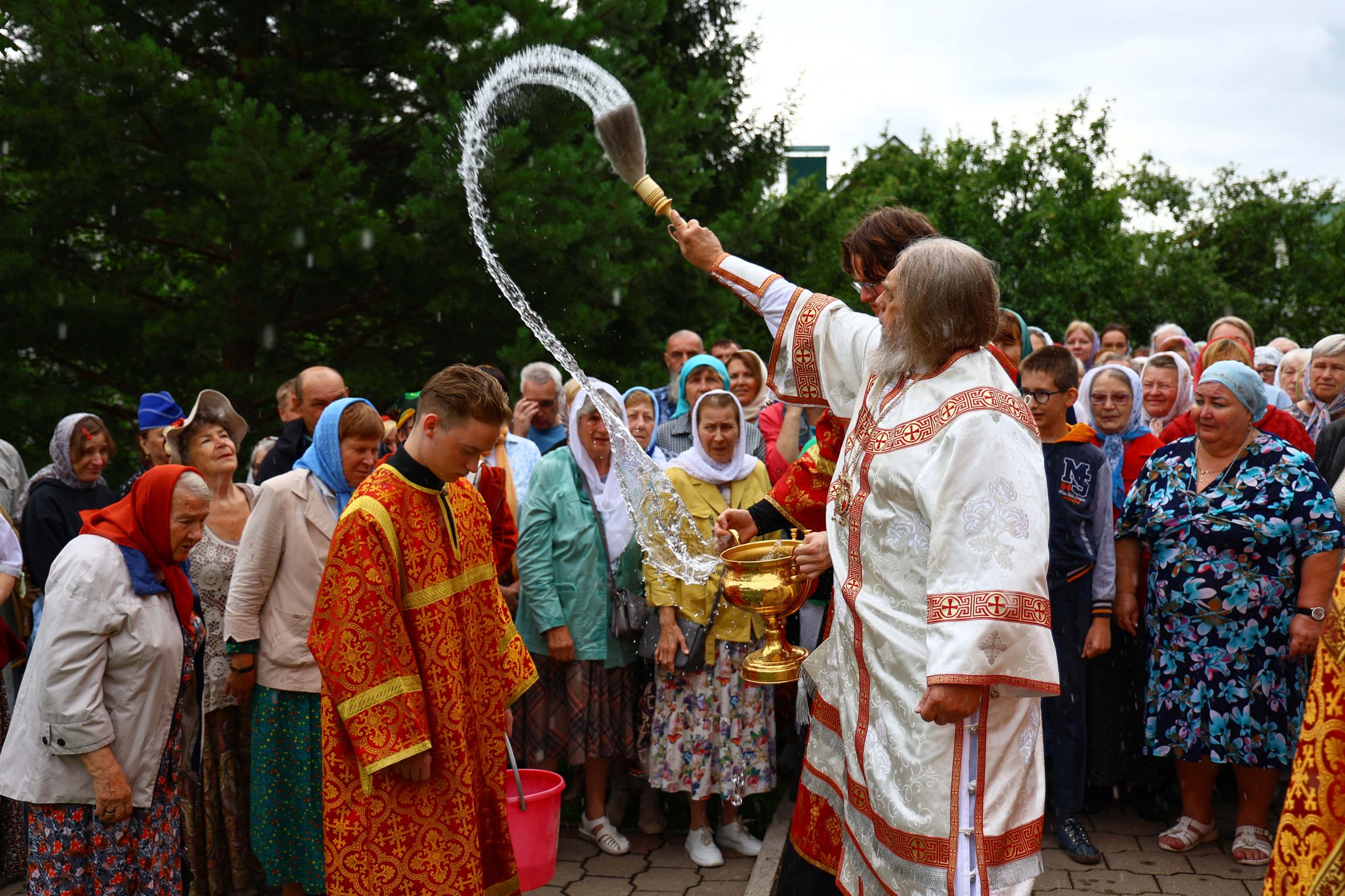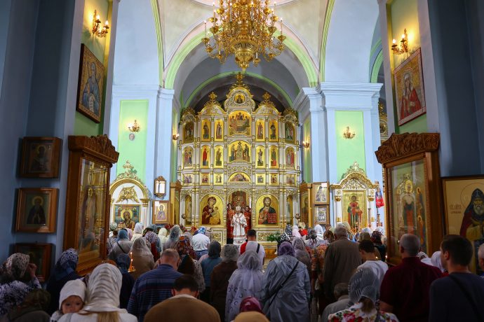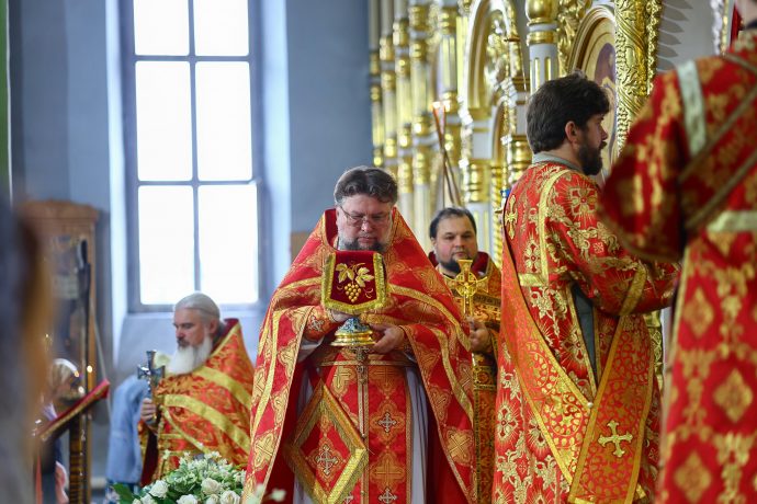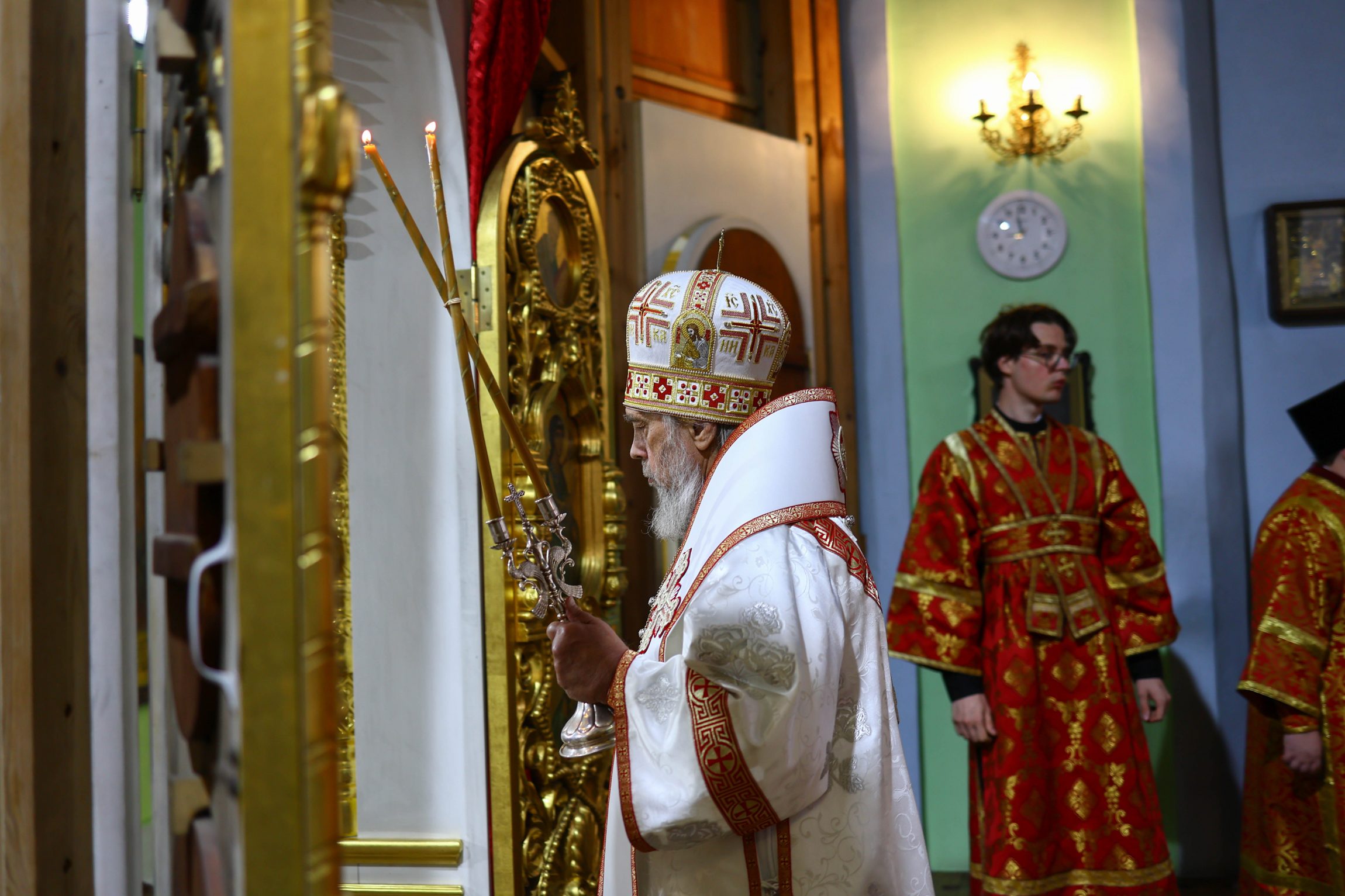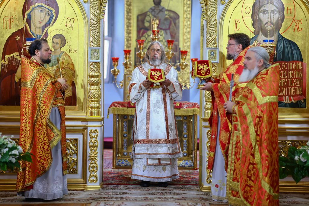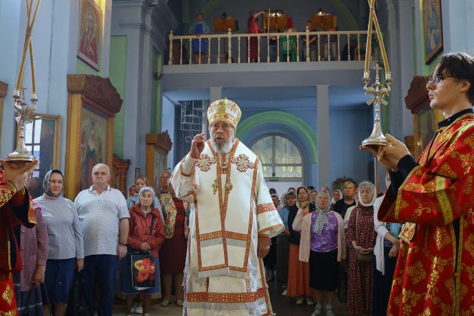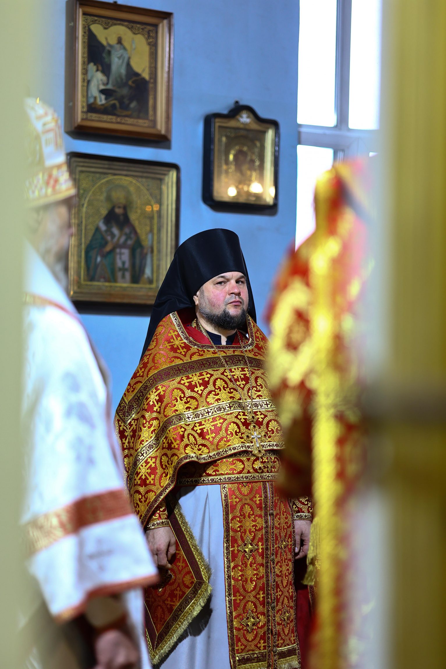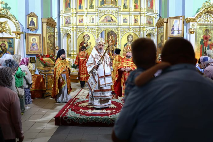 На сугубой ектении вознесены молитвы о благопоспешении христолюбивому Российскому воинству в установлении мира в сию лихую годину, на Святую Русь нашедшую, о мире на Украине, а также о сохранении единства святого Православия.