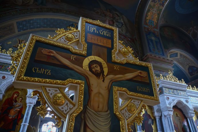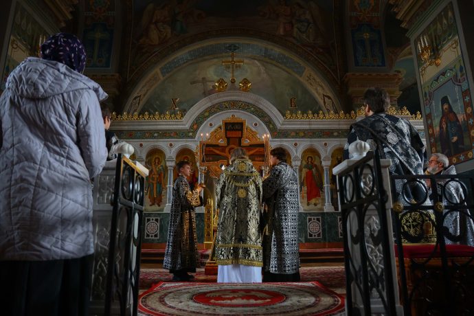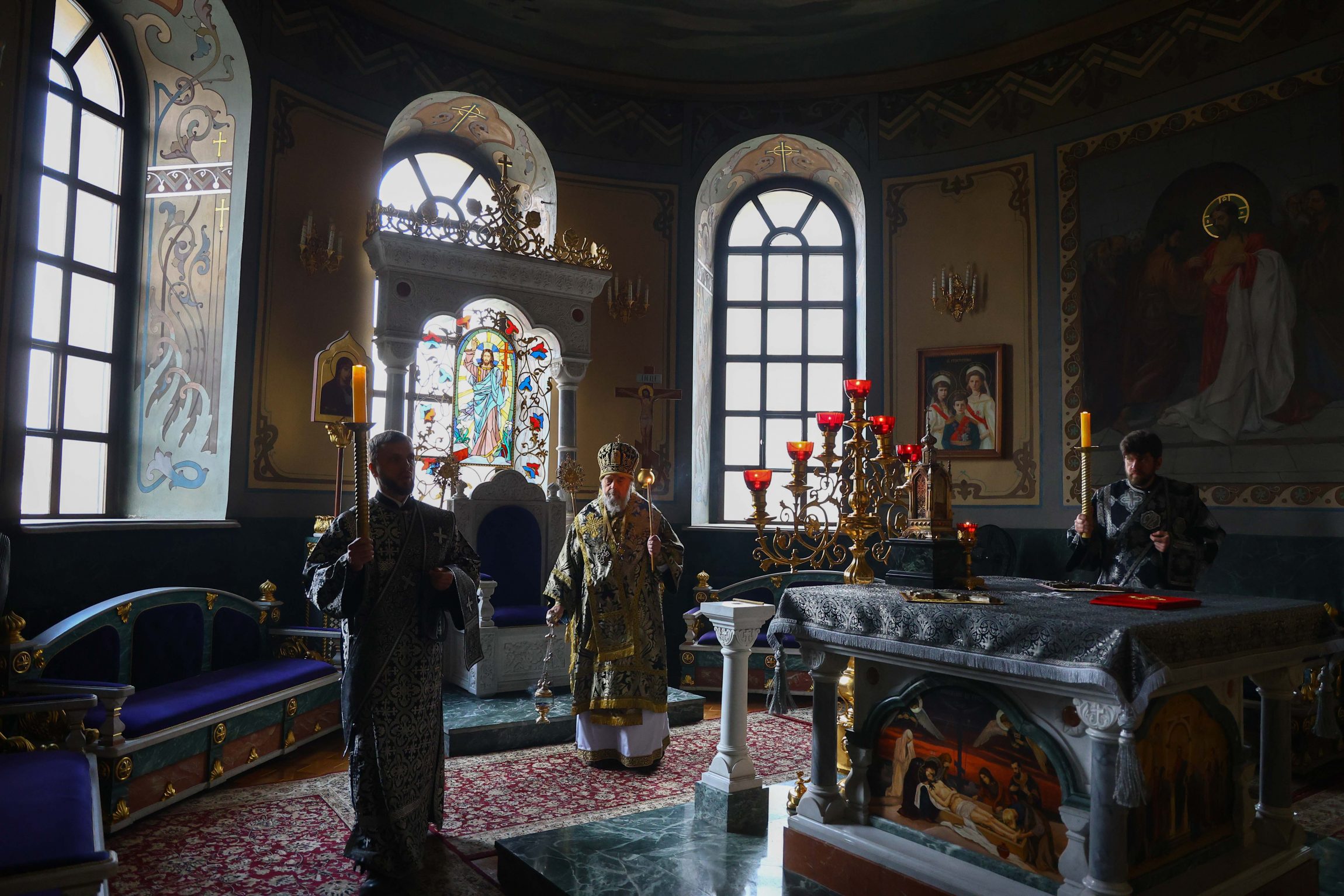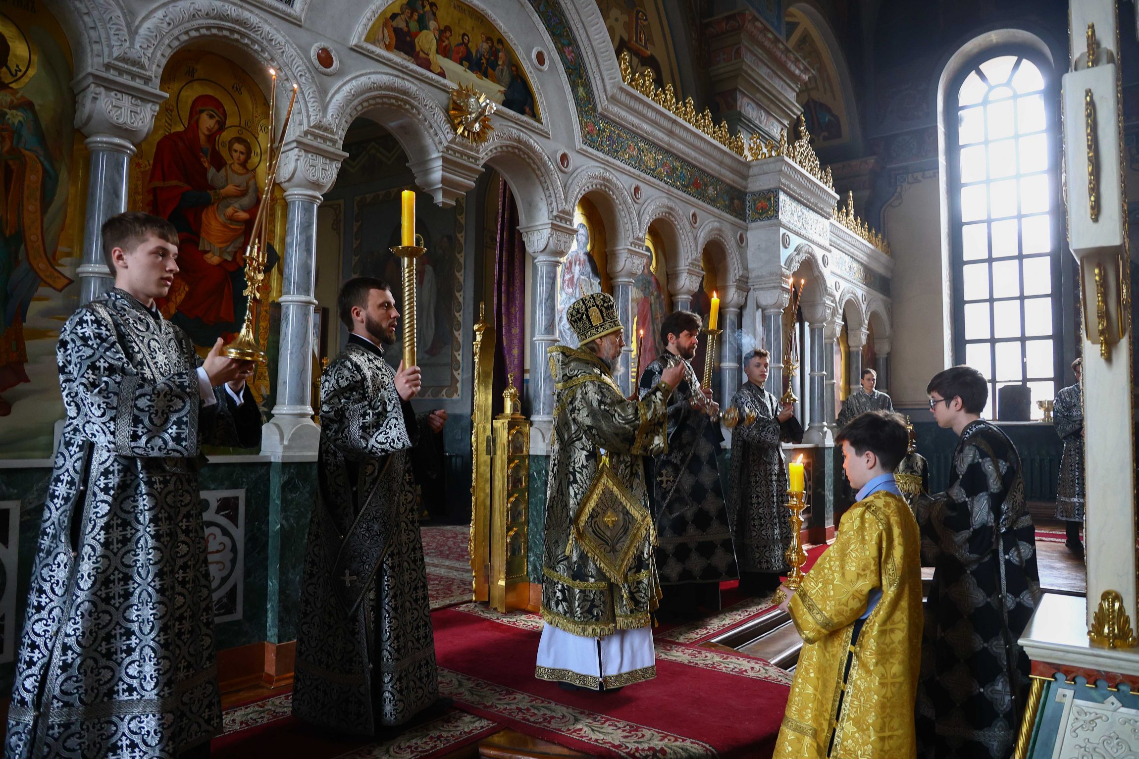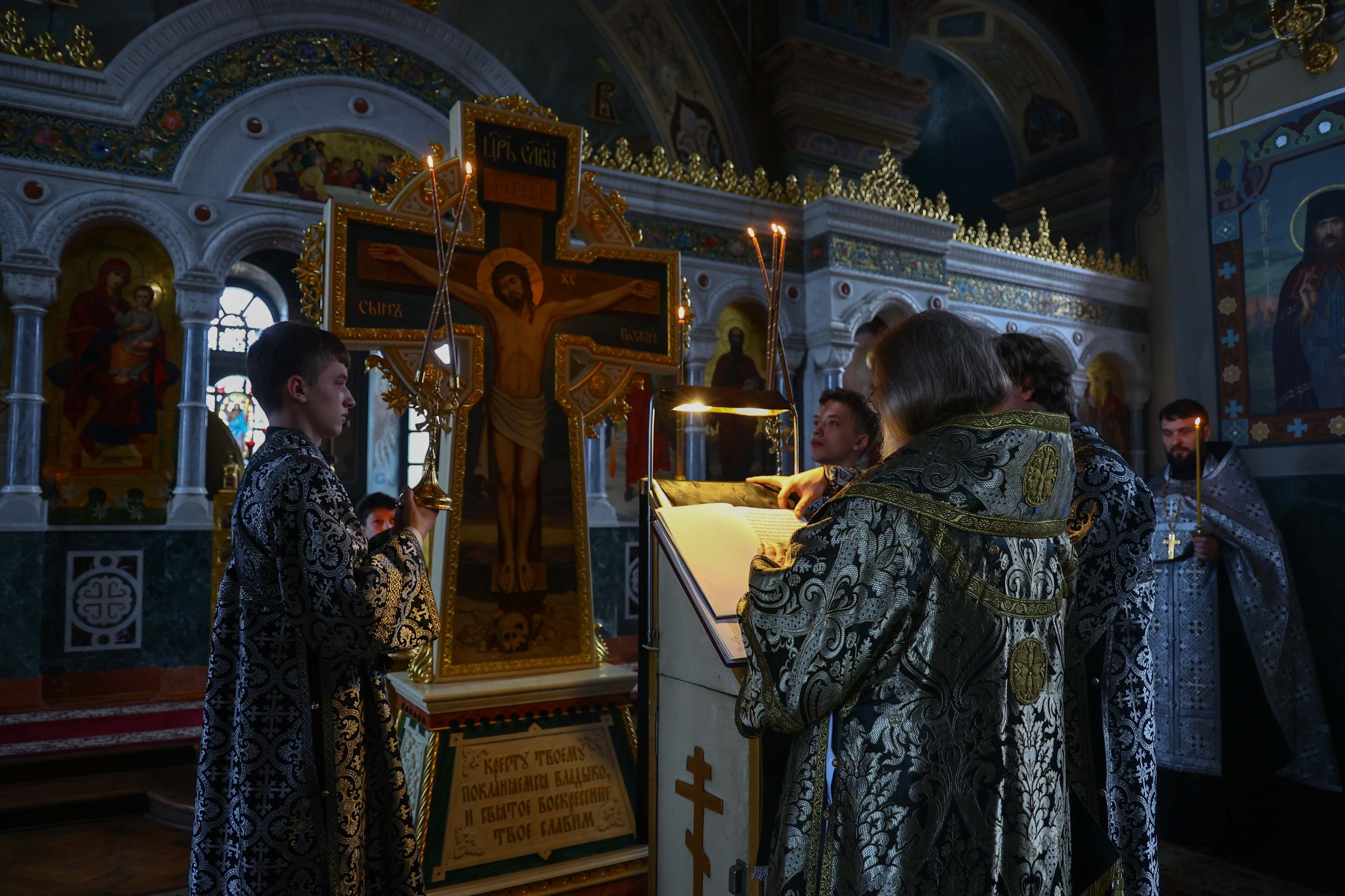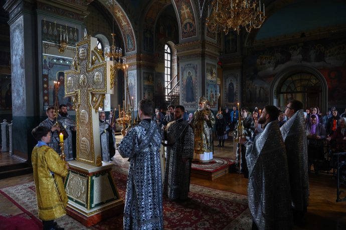 По окончании богослужения владыка, духовенство и верующие поклонились Кресту Господню.