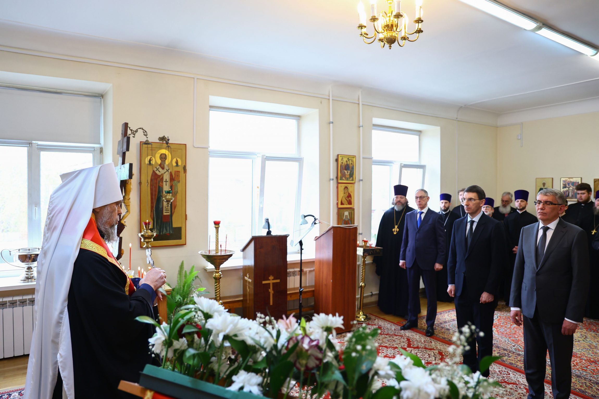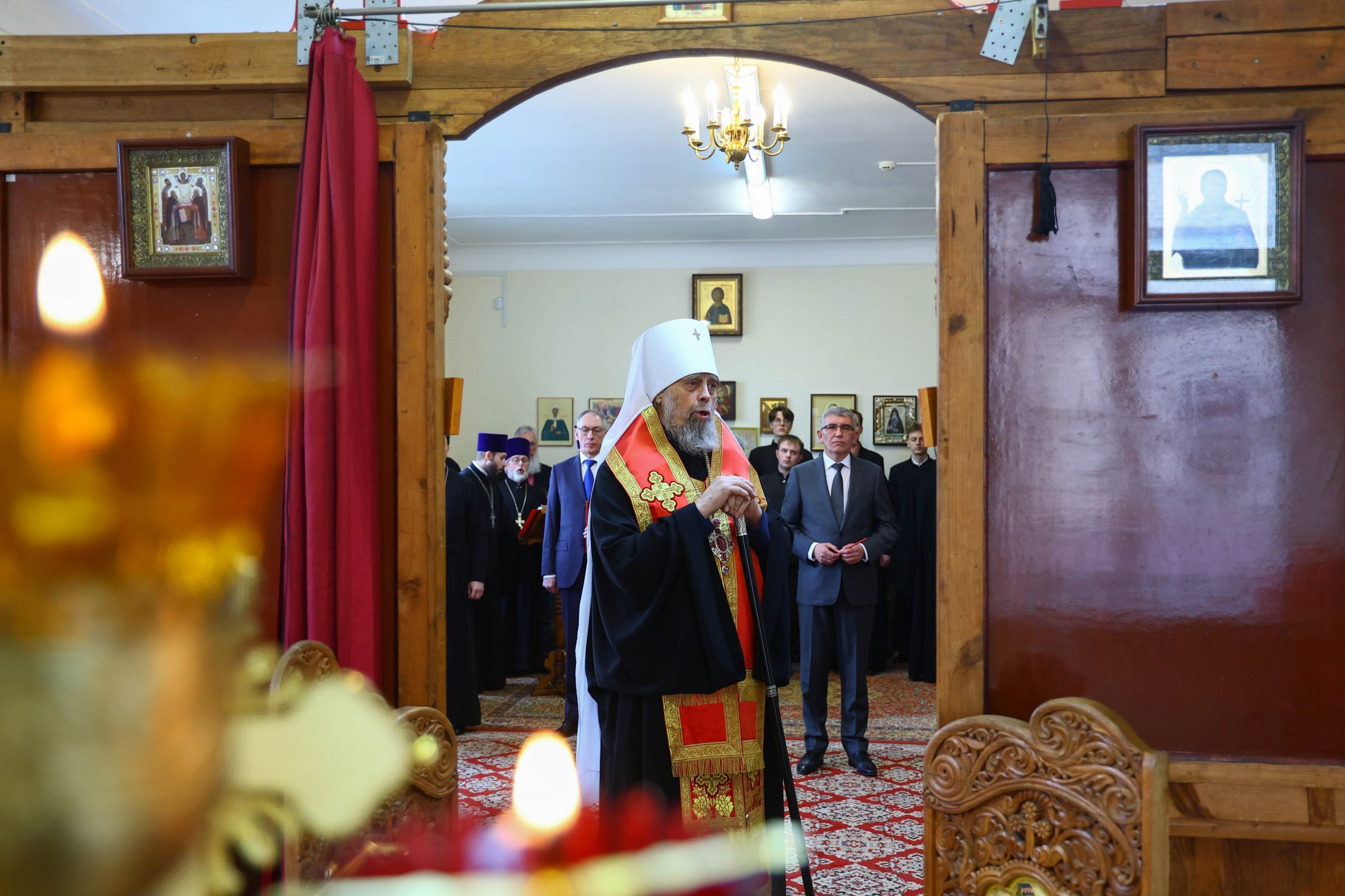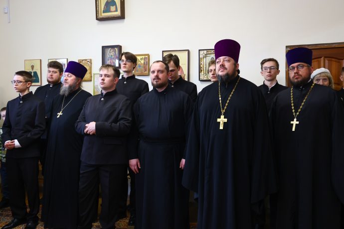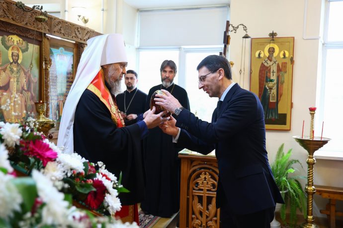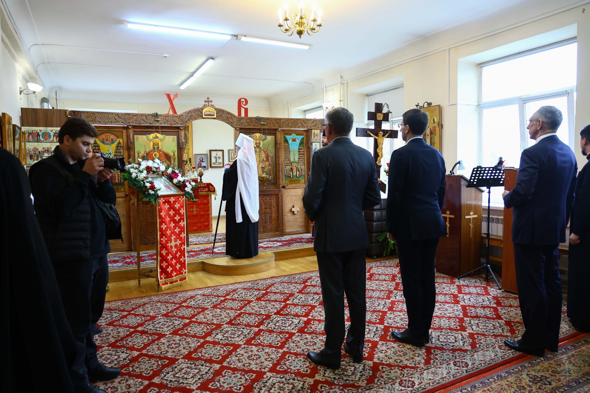 Общение главы Тульской митрополии с Игорем Щеголевым, полномочным представителем Президента Российской Федерации в Центральном федеральном округе, и сопровождавшим его Дмитрием Миляевым, губернатором Тульской области, предварила совместная молитва в семинарском храме в честь Святой Живоначальной Троицы. После торжественных пасхальных песнопений были вознесены молитвенные прошения о помощи Божией и благопоспешении в ответственном служении высоких гостей на благо страны и ее народа.