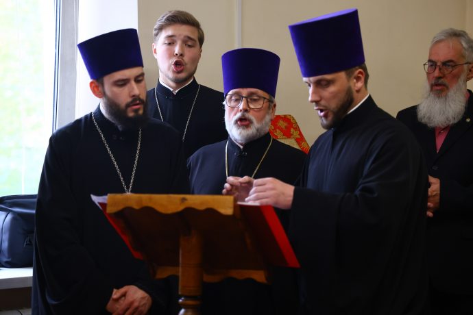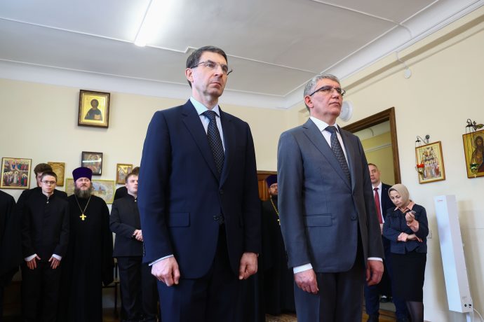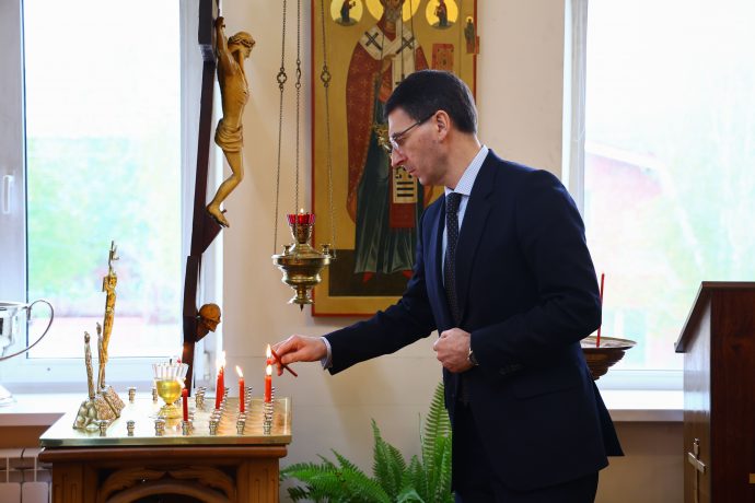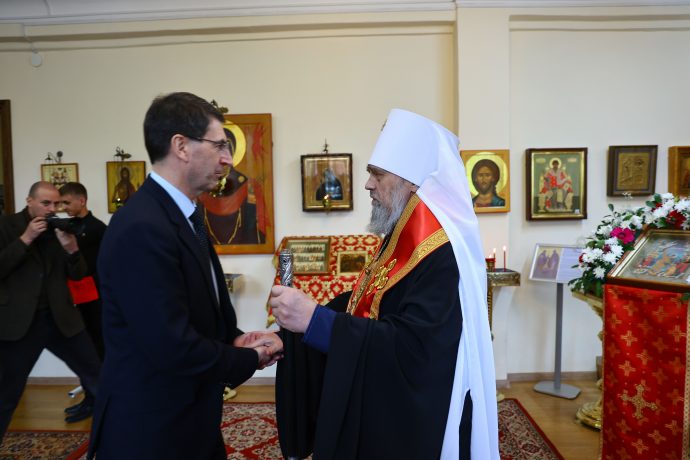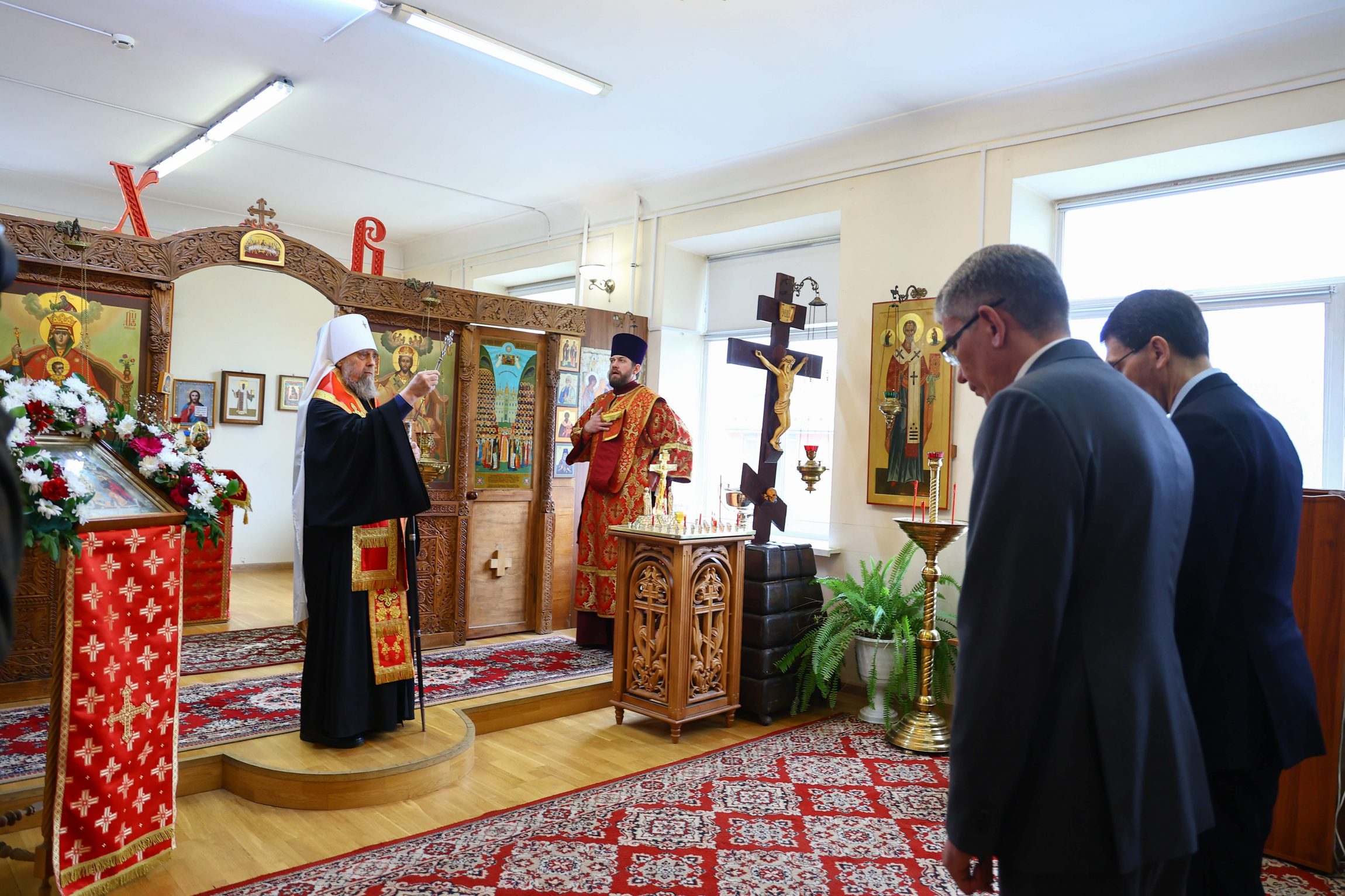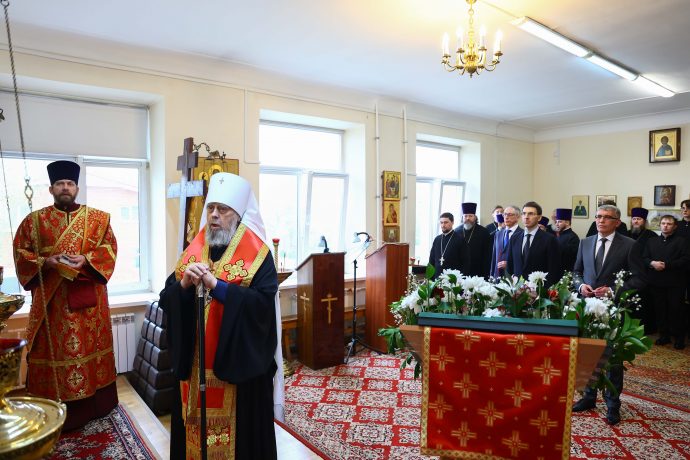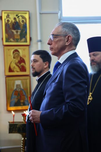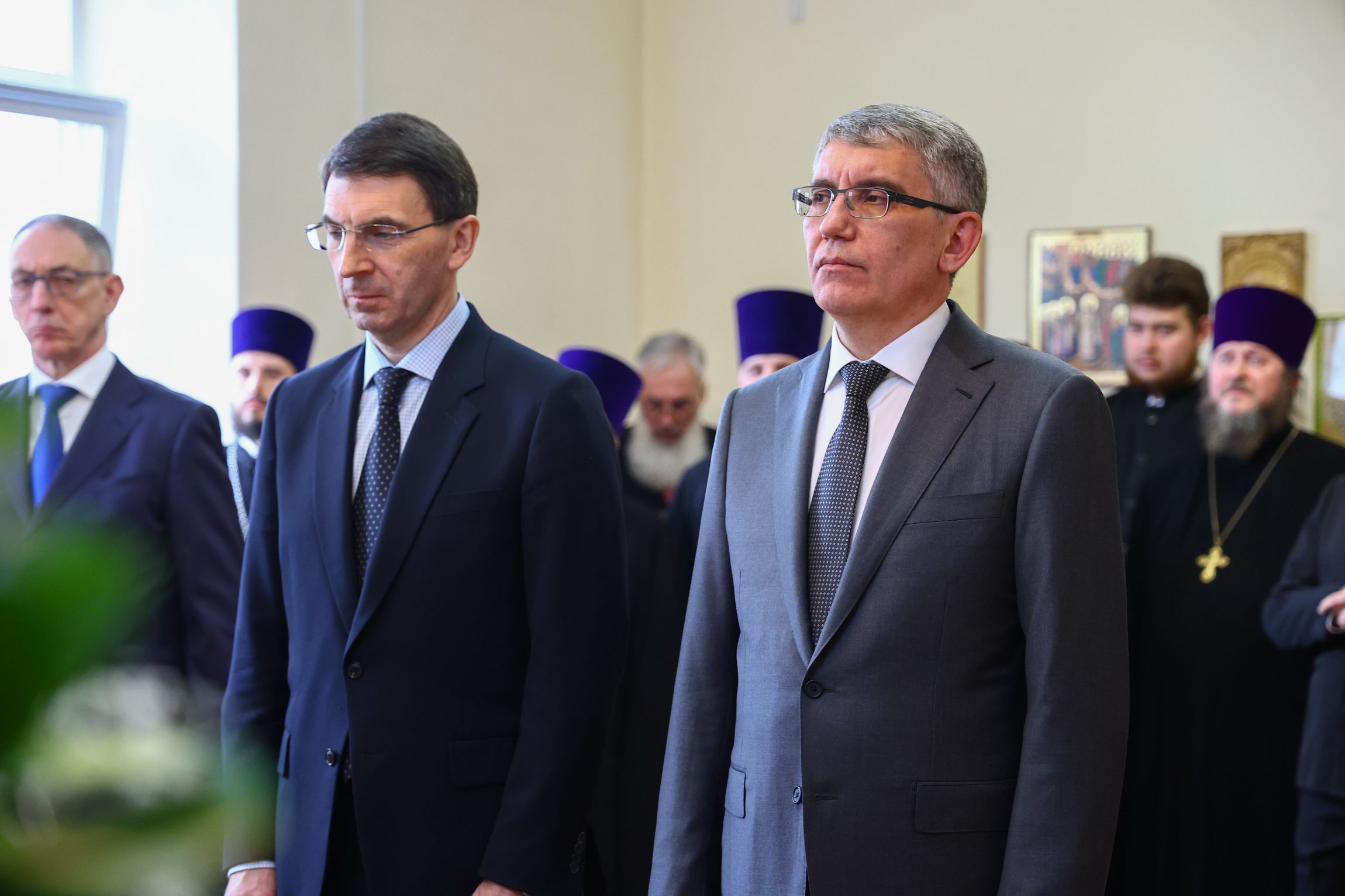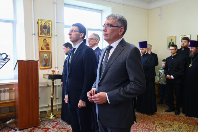 Общение главы Тульской митрополии с Игорем Щеголевым, полномочным представителем Президента Российской Федерации в Центральном федеральном округе, и сопровождавшим его Дмитрием Миляевым, губернатором Тульской области, предварила совместная молитва в семинарском храме в честь Святой Живоначальной Троицы. После торжественных пасхальных песнопений были вознесены молитвенные прошения о помощи Божией и благопоспешении в ответственном служении высоких гостей на благо страны и ее народа.