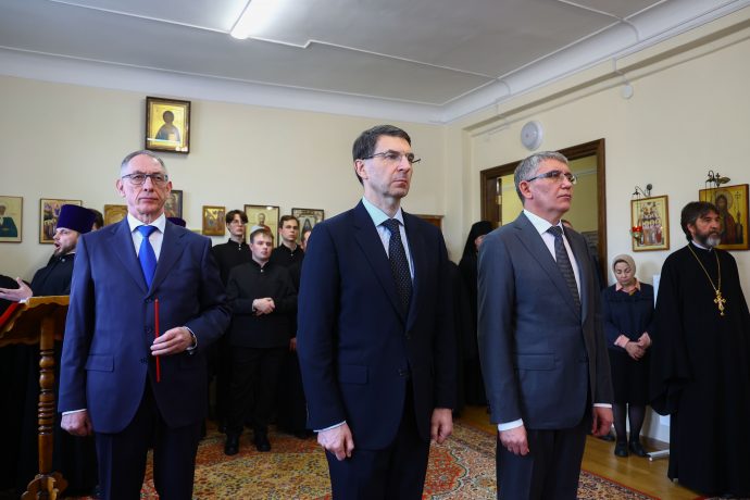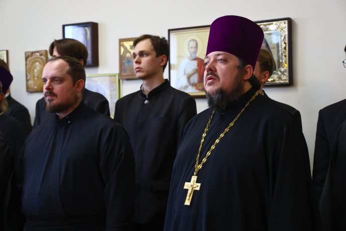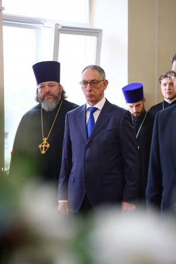 Милостью Божией мы находимся в преддверии соития этих двух знаменательных, избавительных, значительных событий в истории рода человеческого, народа и Отечества нашего. И мы очень рады видеть Вас, досточтимый Игорь Олегович, в нашем городе-герое, рады тому, что Вы сочли возможным посетить нашу духовную школу. Стоит отметить, что за последнюю четверть века с момента возрождения семинарии педагогическому коллективу и учащимся Божией милостью и содействующей благодатью Святого Духа удается принять безразрывно отцепреданные смыслы и традиции, которыми всегда жила духовная школа Святой Православной Руси.