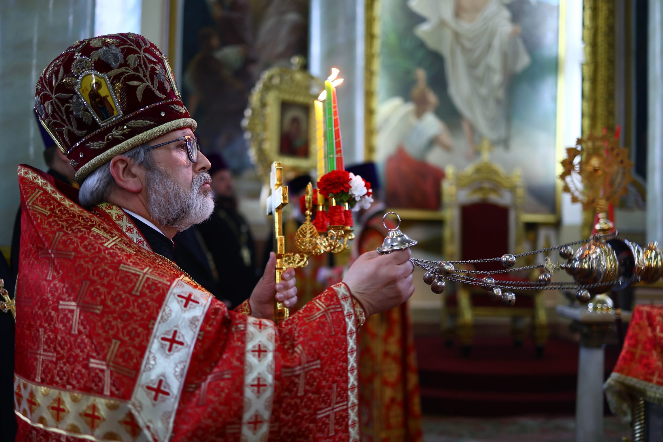 Дорогой Владыка, принося пасхальные поздравления, мы молим Воскресшего Господа, чтобы Он даровал Вам здравие, мир, умножение имеющейся мудрости и, если продолжать евангельскую линию, чтобы сердце Ваше всегда горело так, как горели сердца апостолов Луки и Клеопы, когда их проводил Господь!»