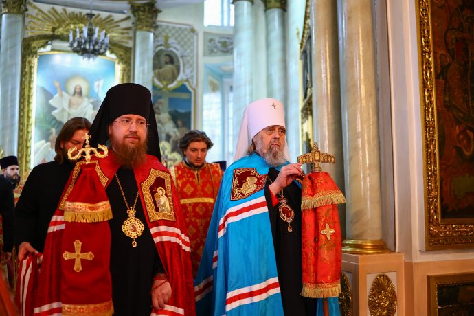 Во время богослужения во внимание к усердным трудам. во славу Святой Церкви и ко дню Святой Пасхи митрополит Тульский и Ефремовский Алексий вручил клирикам Тульской епархии богослужебно-иерархические награды.