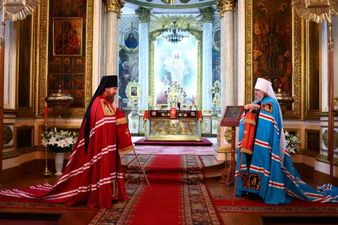 Митрополит Тульский и Ефремовский Алексий совершил Пасхальную вечерню во Всехсвятском кафедральном соборе города Тула в сослужении викария Тульской епархии епископа Веневского Феодорита и духовенства Тульской епархии.
