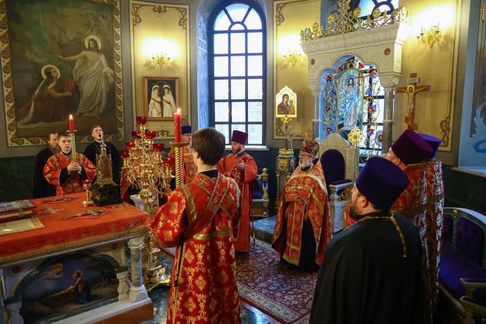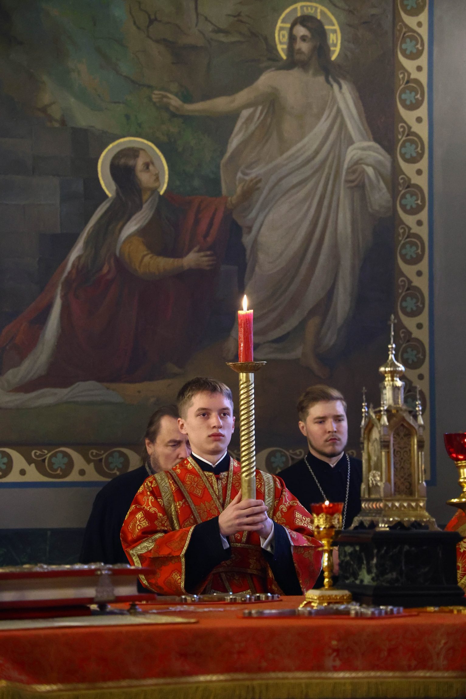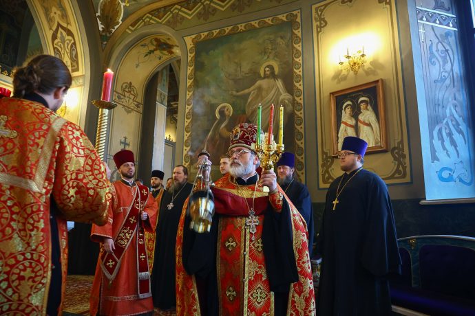 Митрополит Тульский и Ефремовский Алексий совершил Пасхальную вечерню в Успенском кафедральном соборе города Тула в сослужении викария Тульской епархии епископа Веневского Феодорита и духовенства Тульской епархии.