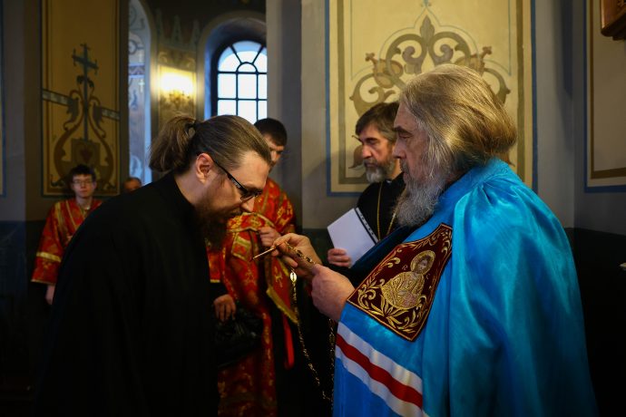 По отпусте вечерни секретарь Архиерейского совета Тульской митрополии протоиерей Павел Савельев огласил Пасхальное послание главы митрополии.
