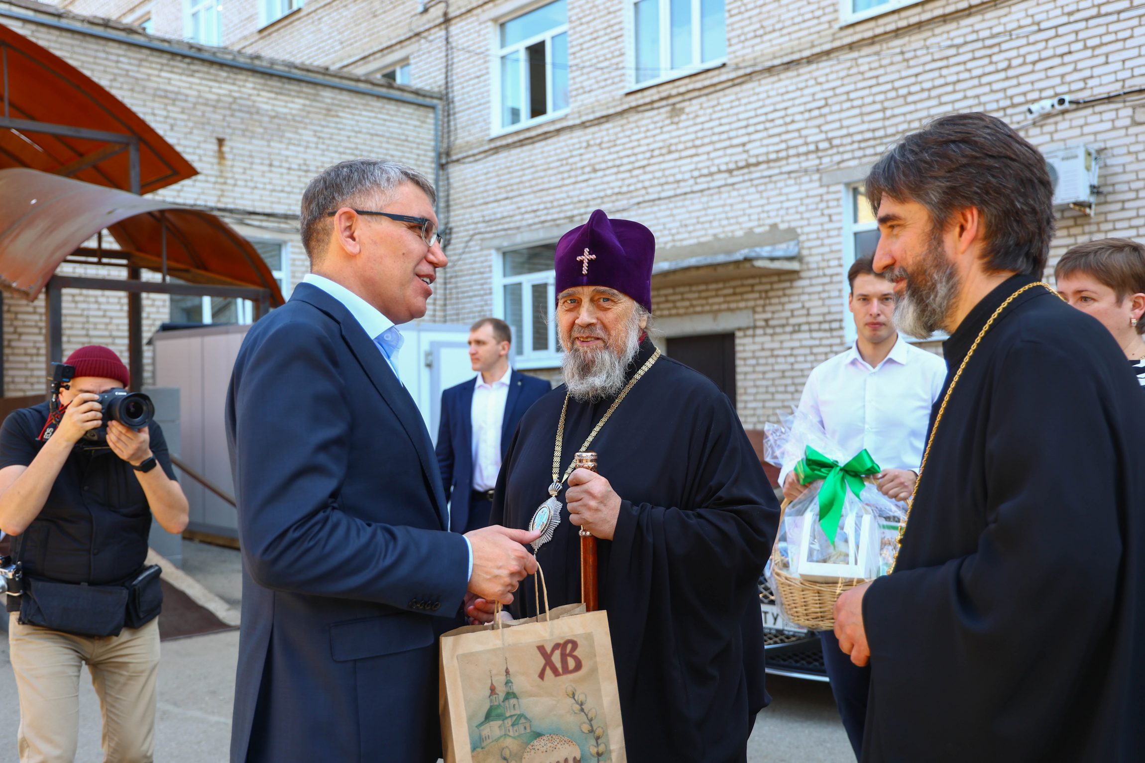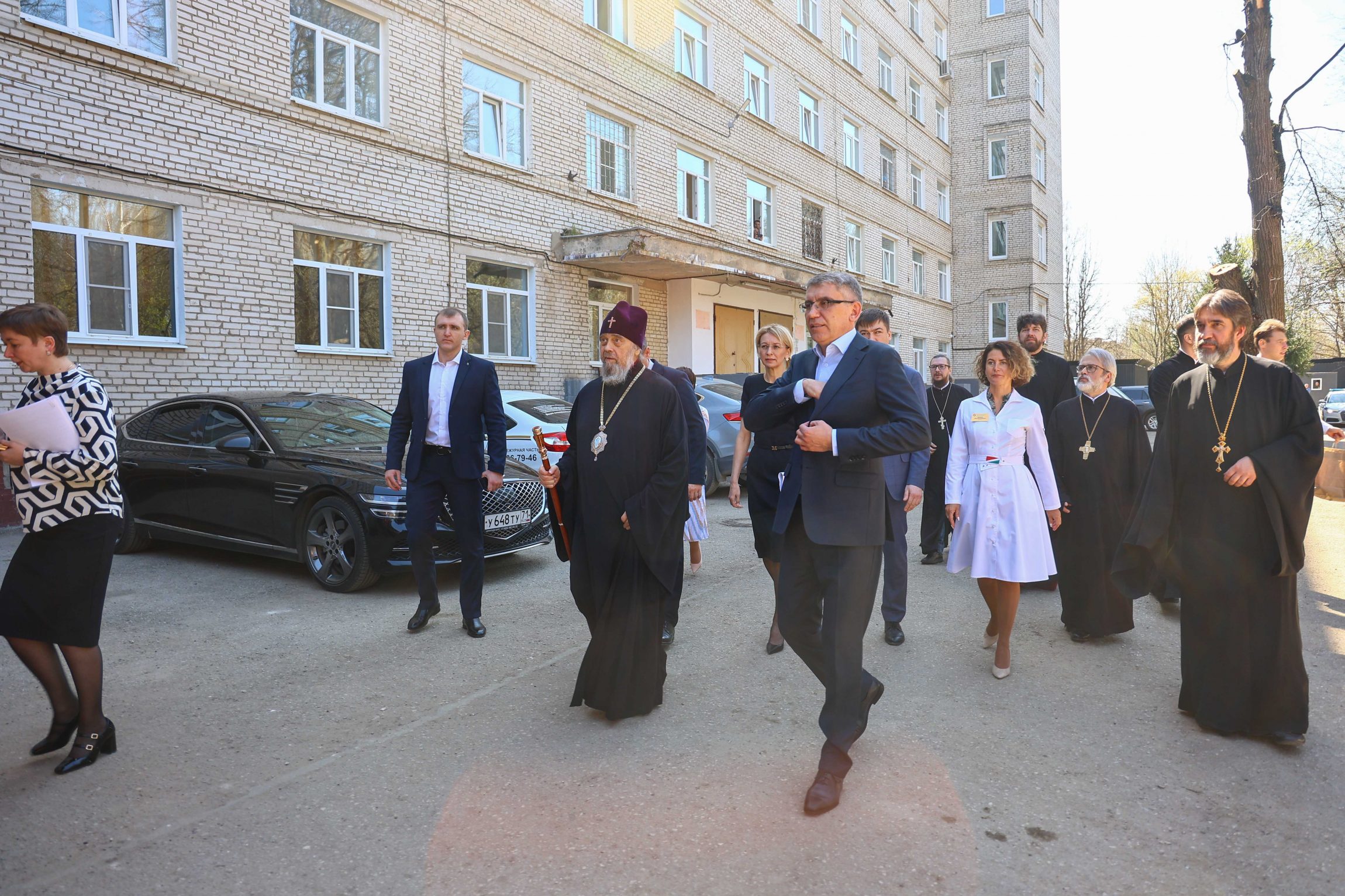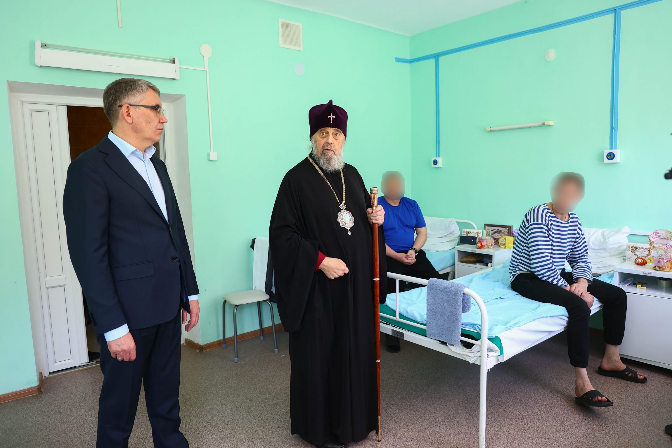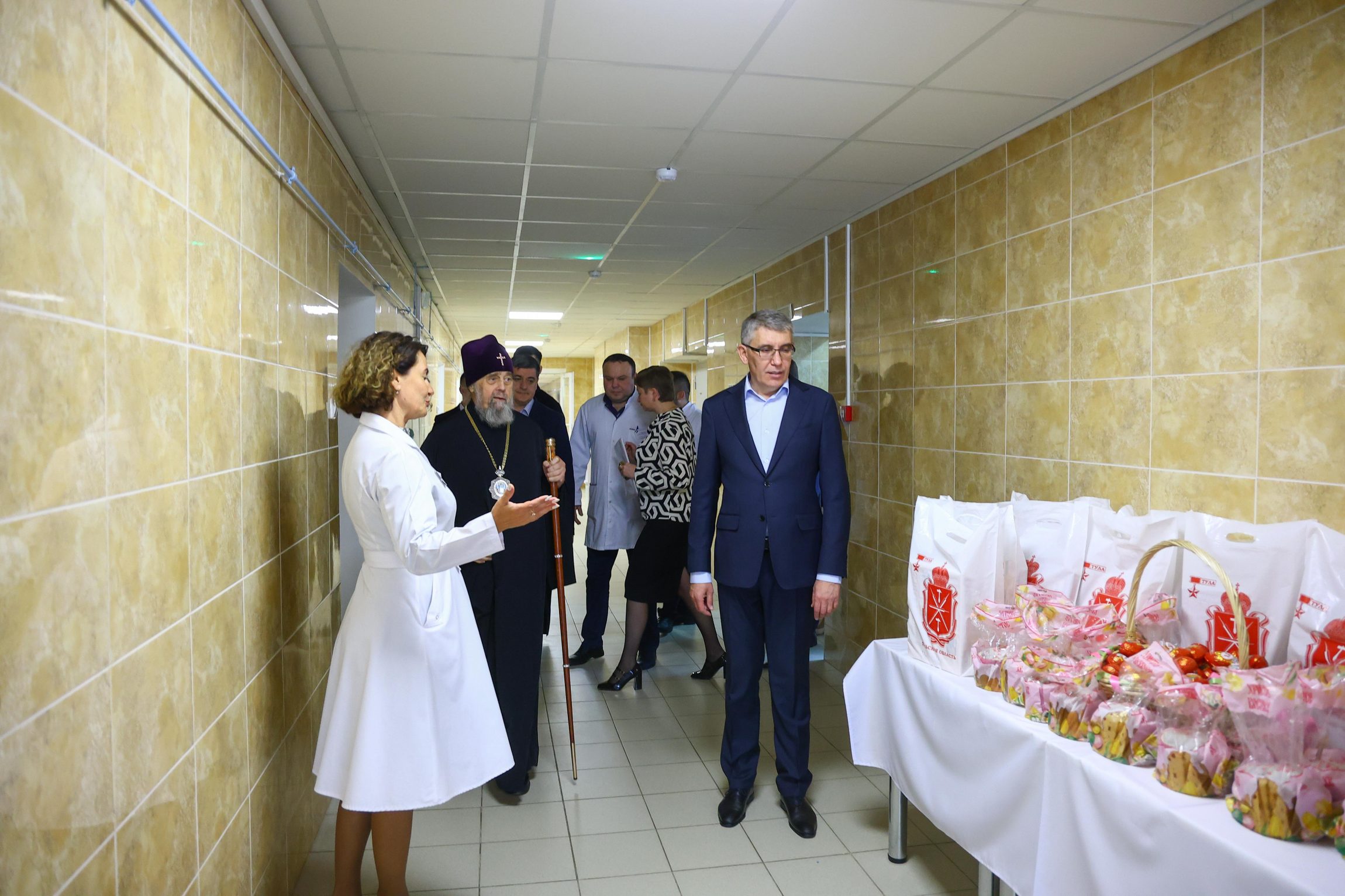 В день Светлого Христова Воскресения митрополит Тульский и Ефремовский Алексий и губернатор Тульской области Дмитрий Миляев посетили и поздравили с праздником праздников и торжеством из торжеств участников специальной военной операции, проходящих лечение в одном из медицинских учреждений.