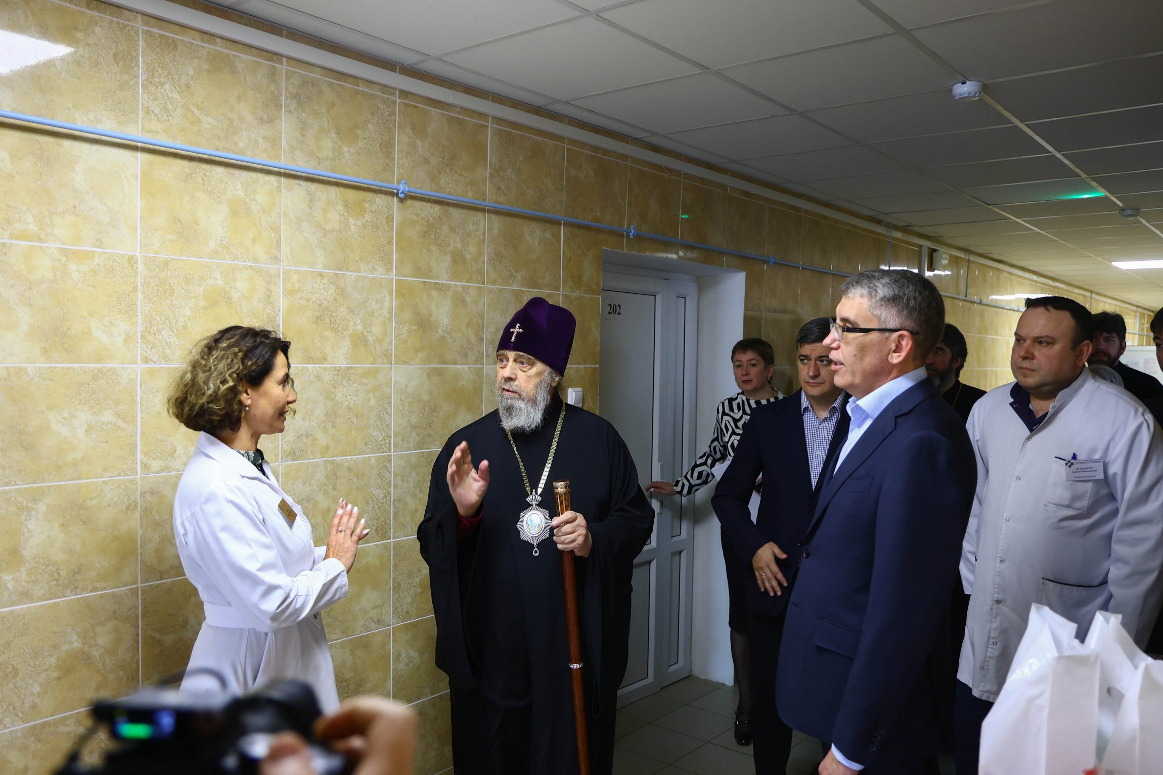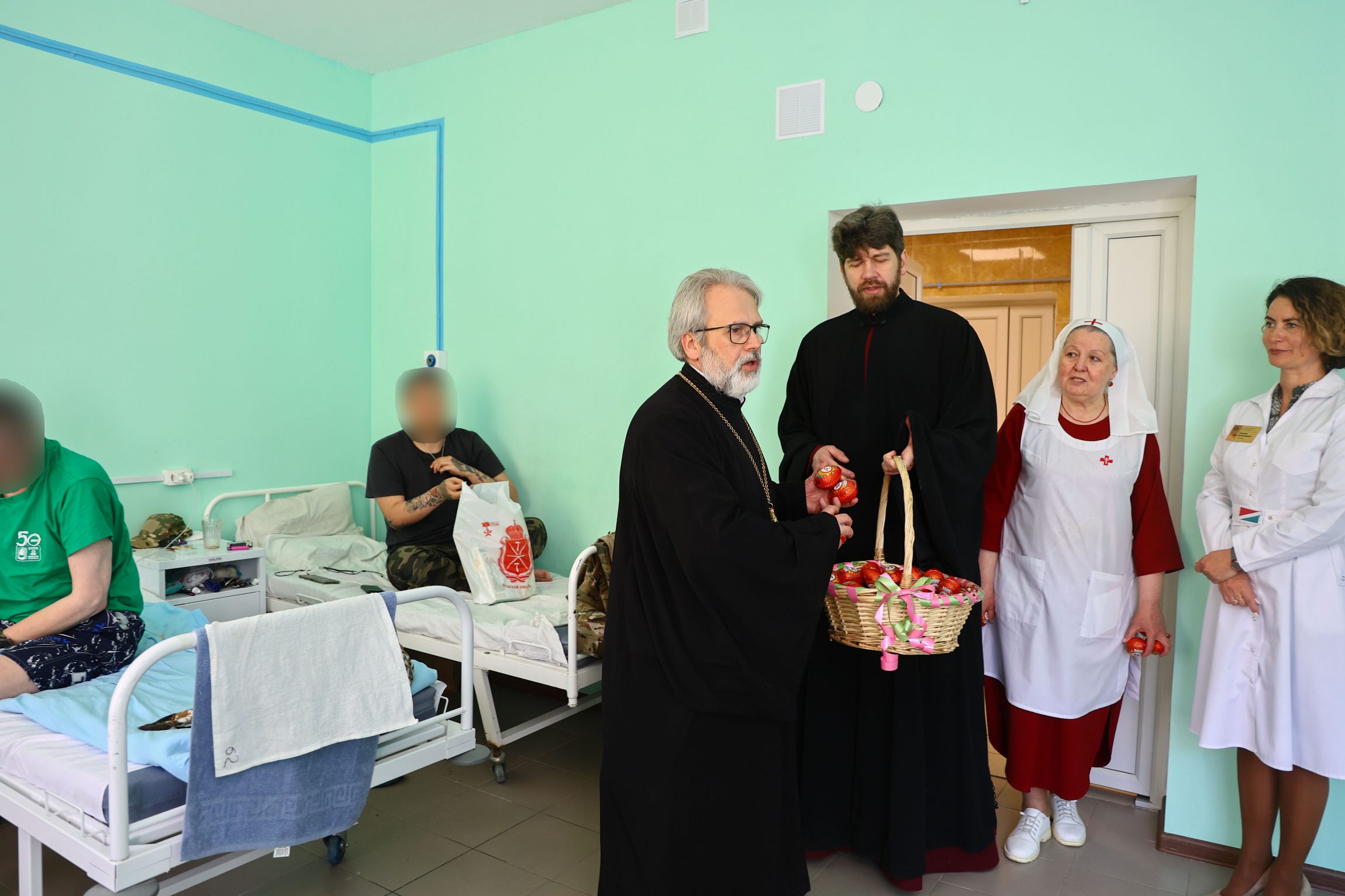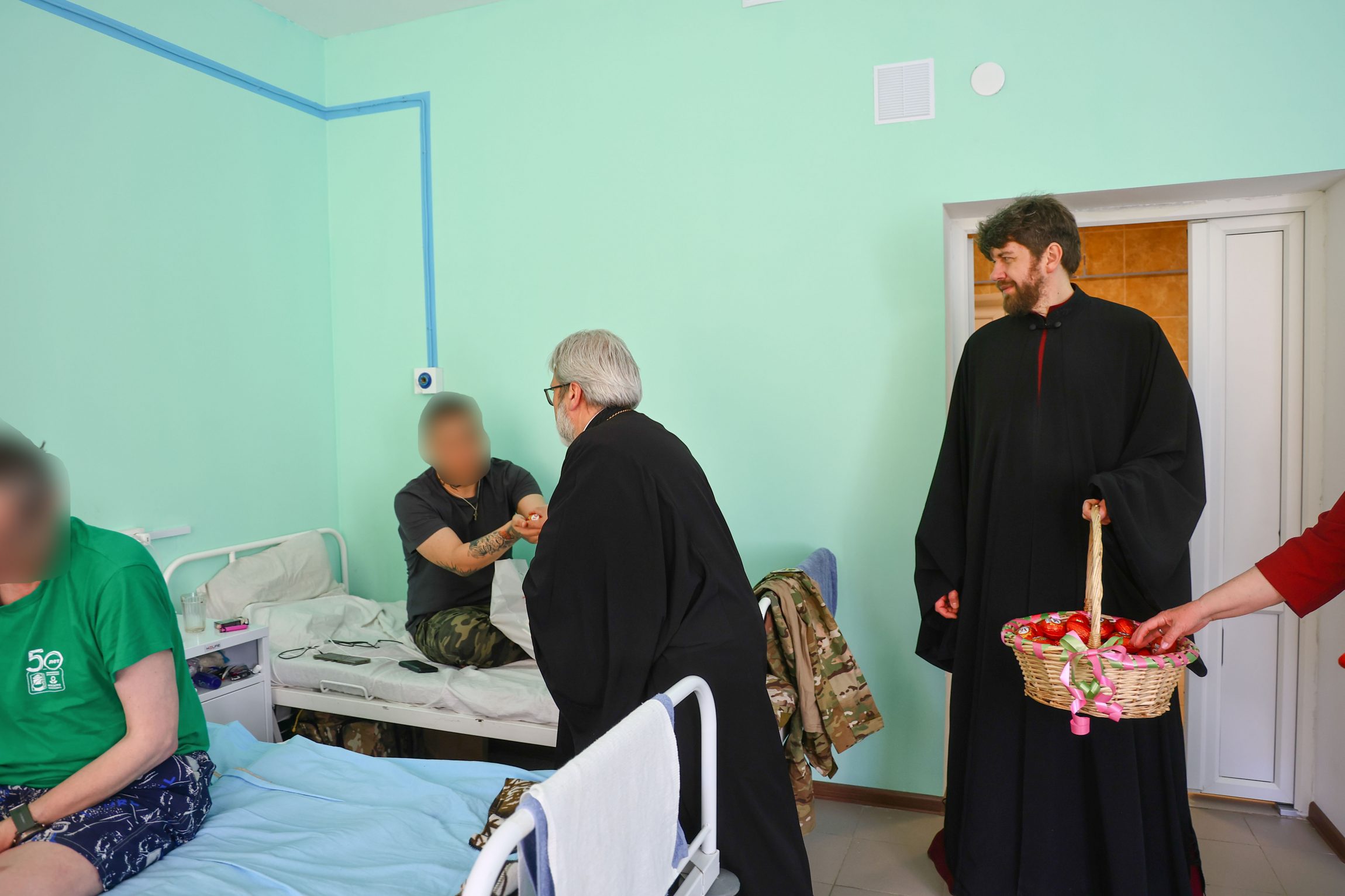 Гости передали военнослужащим куличи и сладкие подарки, а затем осмотрели медицинское учреждение, пообщались с руководством и врачами, убедившись в том, что для их лечения и реабилитации созданы все необходимые условия.