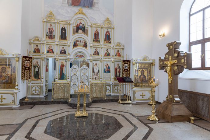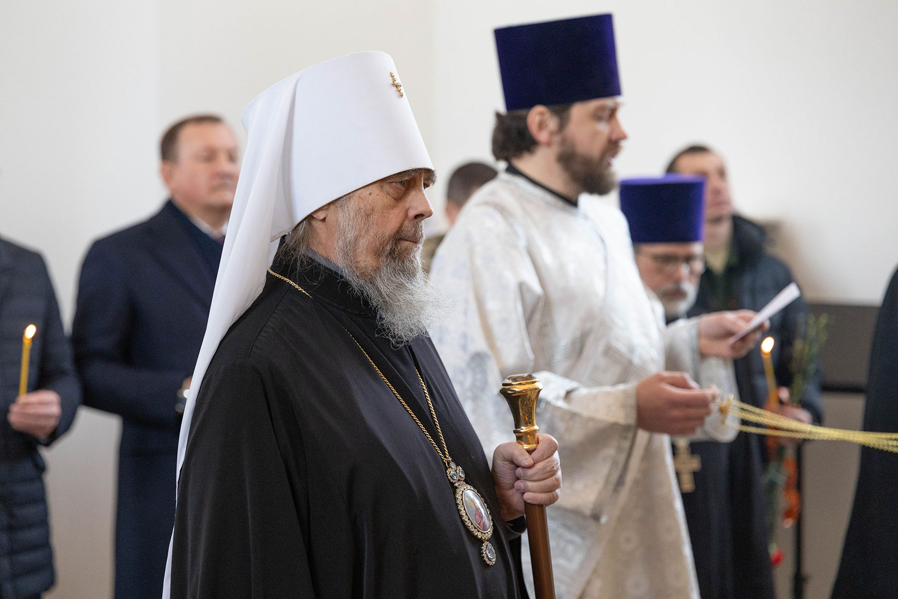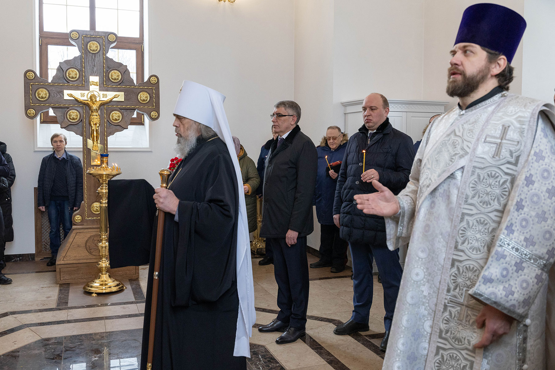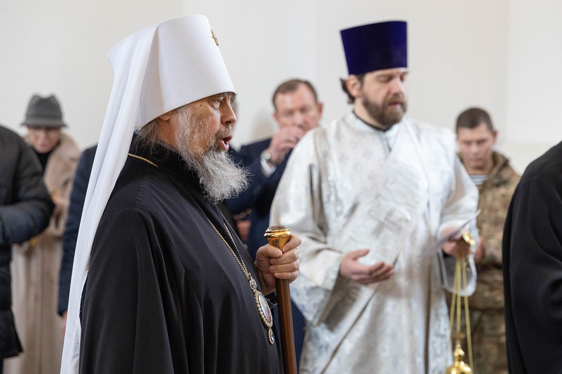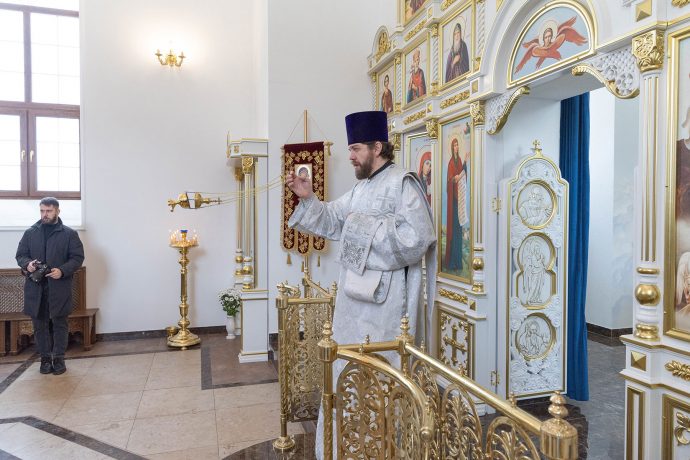 Его Высокопреосвященству сослужили: протоиерей Сергий Резухин, благочинный Центрального городского округа, и протоиерей Павел Савельев, благочинный Восточного городского округа.