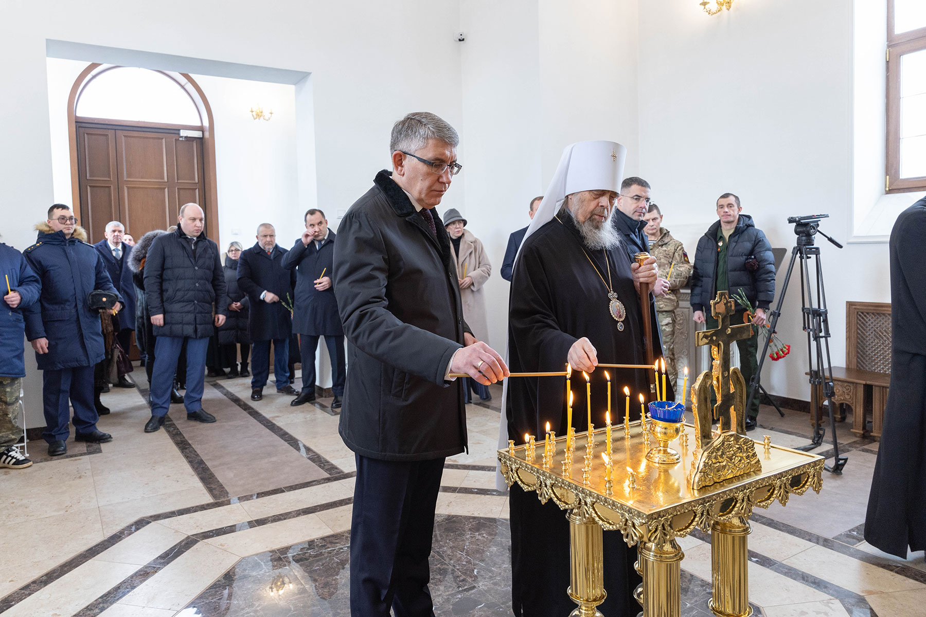 За богослужением молились: губернатор Тульской области Дмитрий Миляев, представители Совета Федерации Федерального Собрания РФ, члены регионального Правительства, глава Тулы Алексей Эрк, глава администрации Тулы Илья Беспалов, депутаты, ветераны СВО и боевых конфликтов, родственники погибших бойцов.