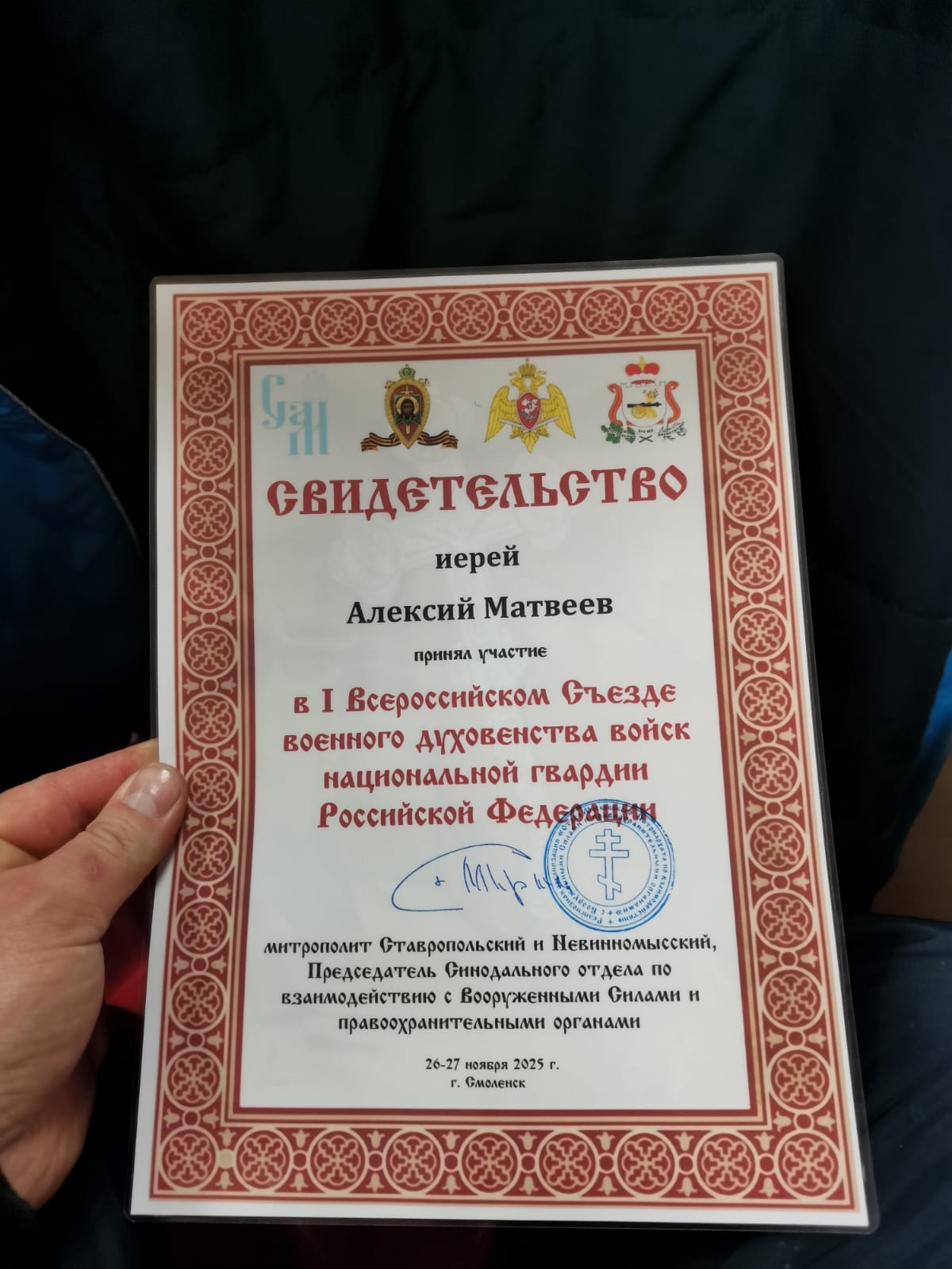 В Смоленске состоялся I Всероссийский съезд духовенства, поддерживающего верующих сотрудников и военнослужащих Рогсвардии. Около 90 священнослужителей из разных регионов России узнали, как научиться оказывать психологическую и первую медицинскую помощь, правильно действовать при атаке БПЛА и артиллерийских обстрелах, а также получили знания по тактической подготовке.