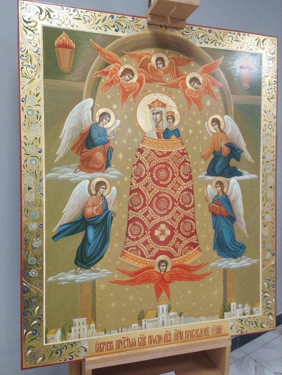 Заведующий кафедрой теории и методики преподавания изобразительного искусства, руководитель мастерской иконописи Юлия Ивановна Мезенцева рассказала присутствующим об истории создания мастерской, и подчеркнула, что работы выполняются в разнообразных техниках, ищутся новые формы в рамках основного направления деятельности – развития традиций московской школы иконописи.