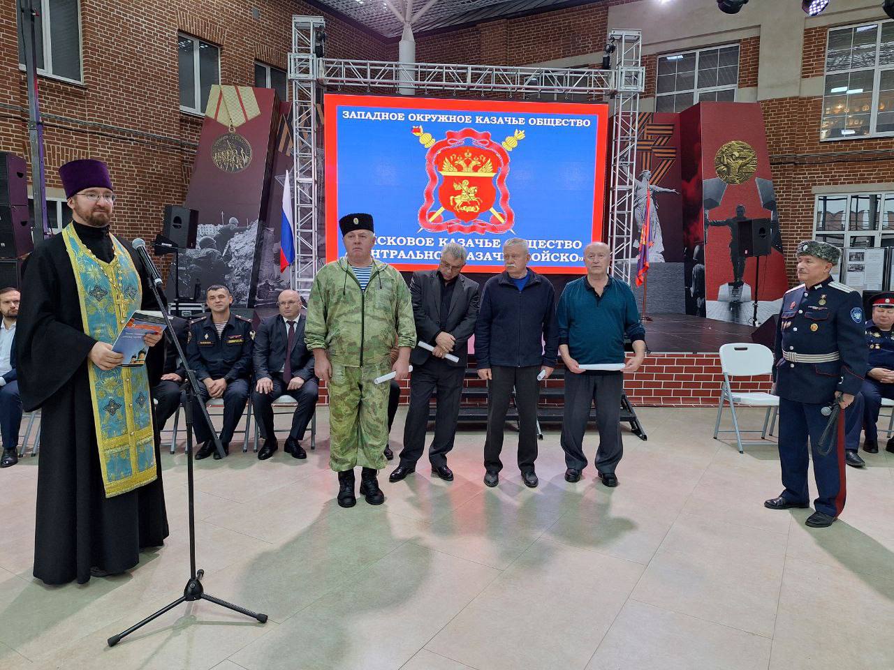 Далее в казачьи ряды были торжественно приняты: Сергей Чернышёв, Николай Макаров, Игорь Матросов и Валерий Макаров.