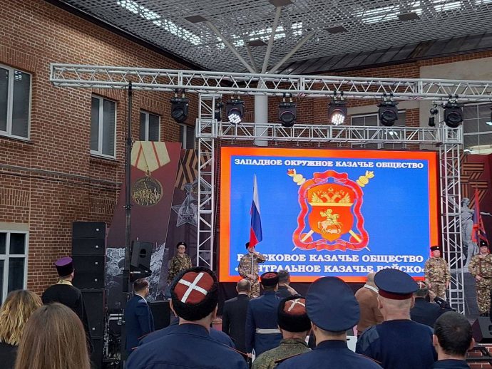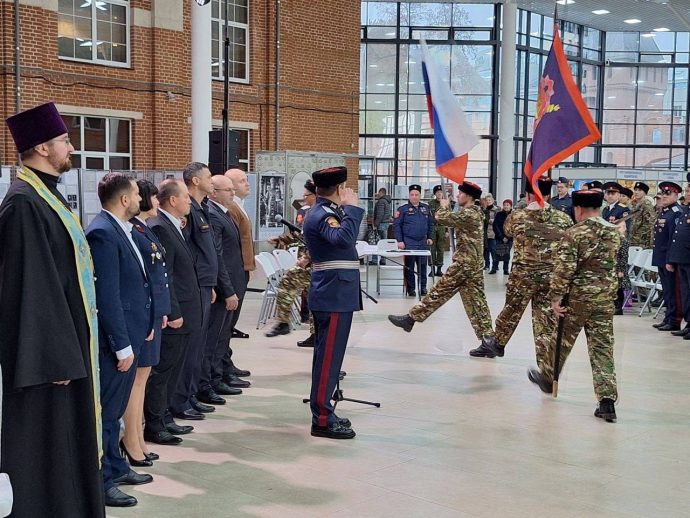 Перед началом мероприятия были торжественно вынесены флаг России и знамя Центрального казачьего войска, исполнены государственный гимн России и гимн Центрального казачьего войска.