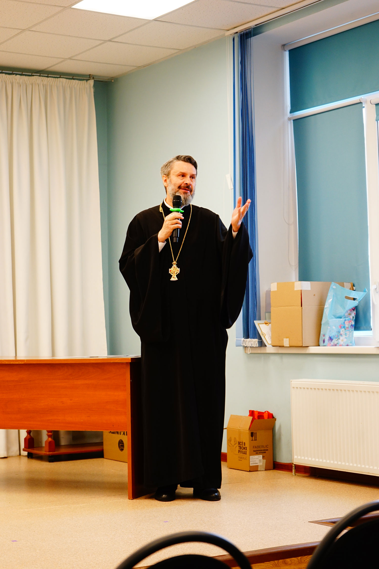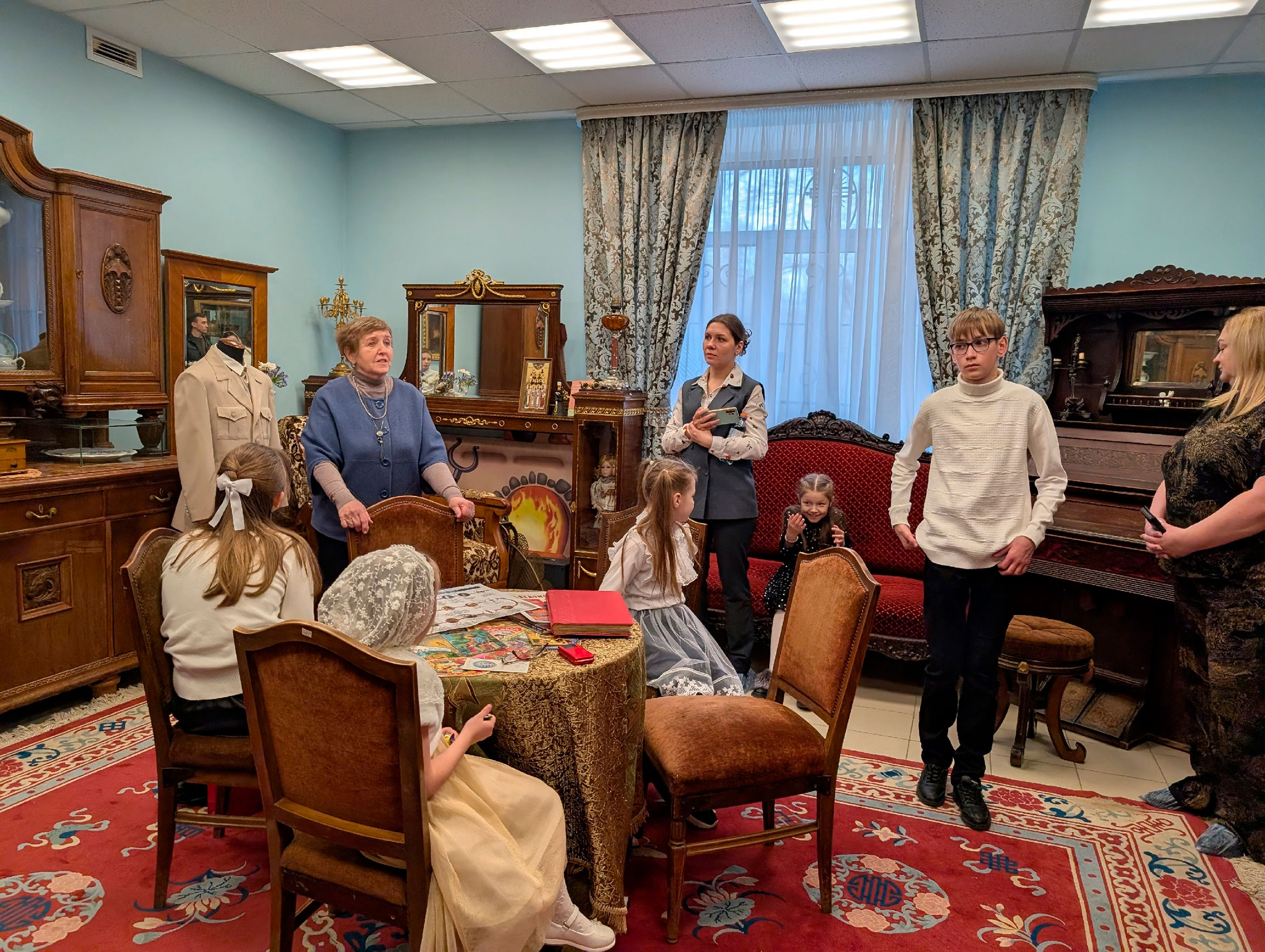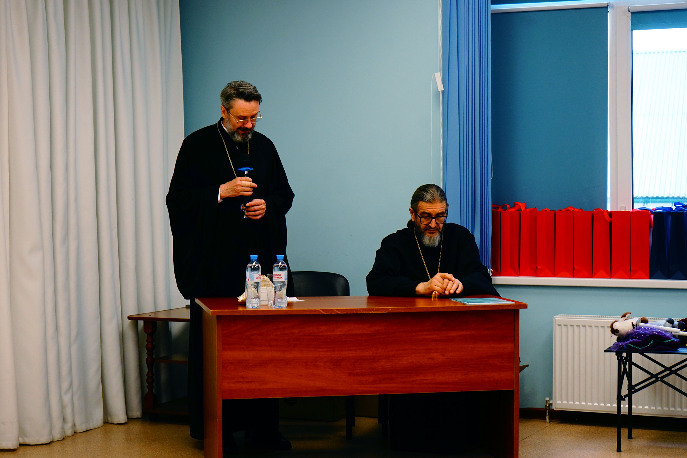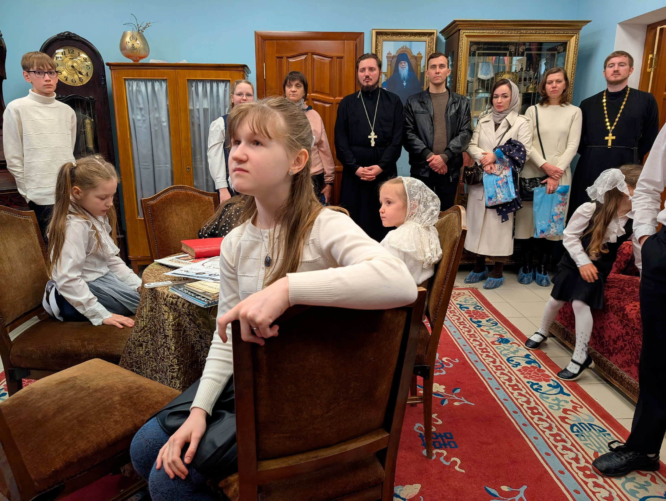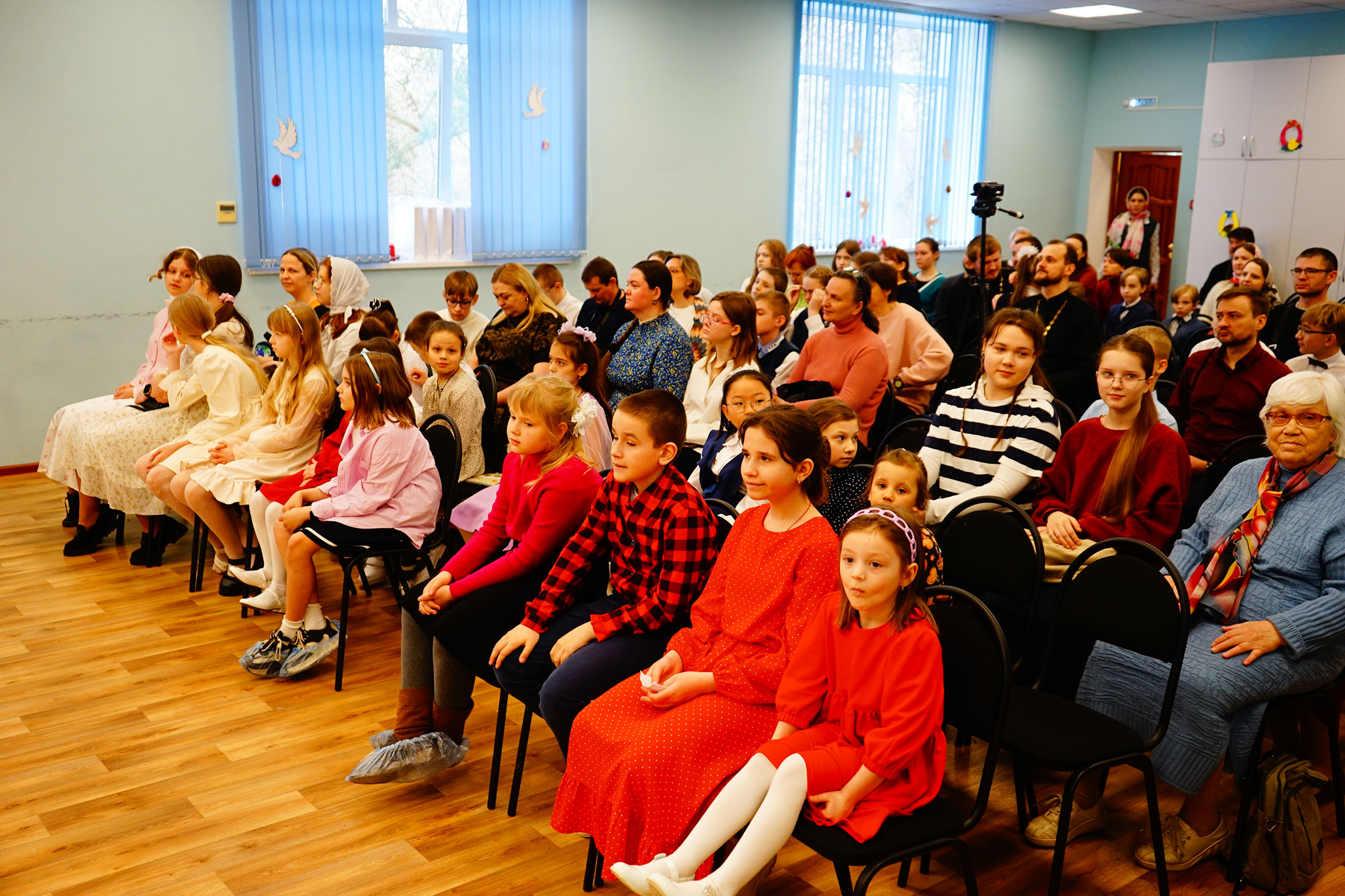 В актовом зале Духовно-просветительского центра имени священномученика Онисима, епископа Тульского, при храме святого великомученика Димитрия Солунского собрались воспитанники воскресных школ, их родители и педагоги. Перед началом мероприятия все желающие смогли ознакомится с экспозицией мемориального кабинета митрополита Серапиона.