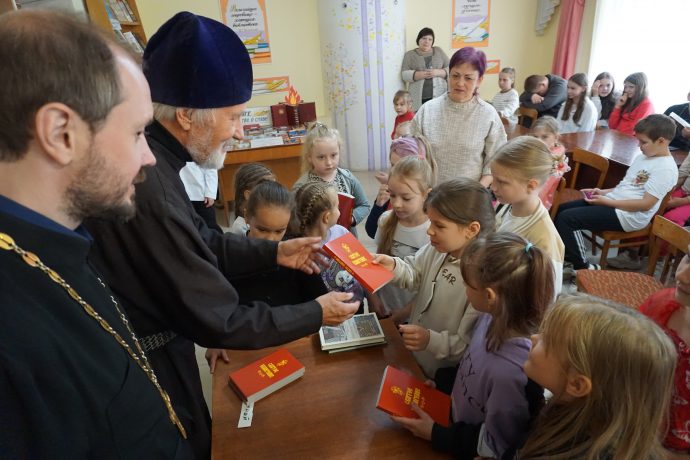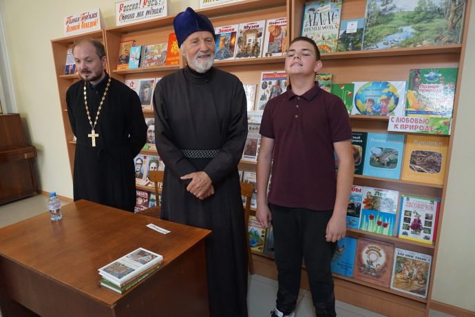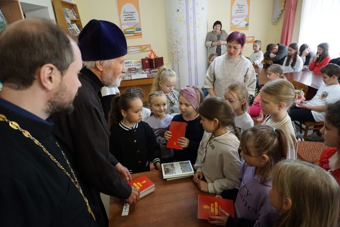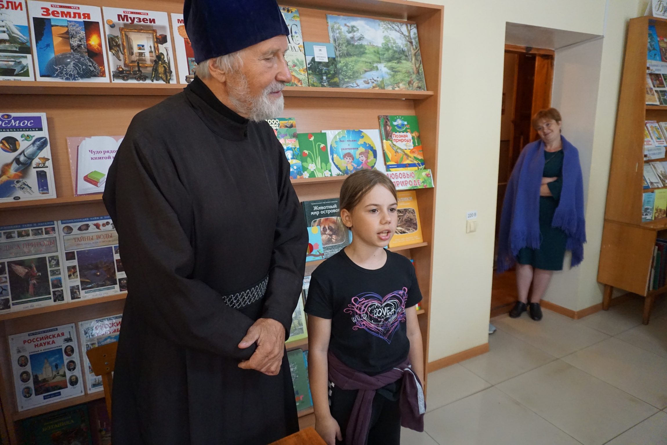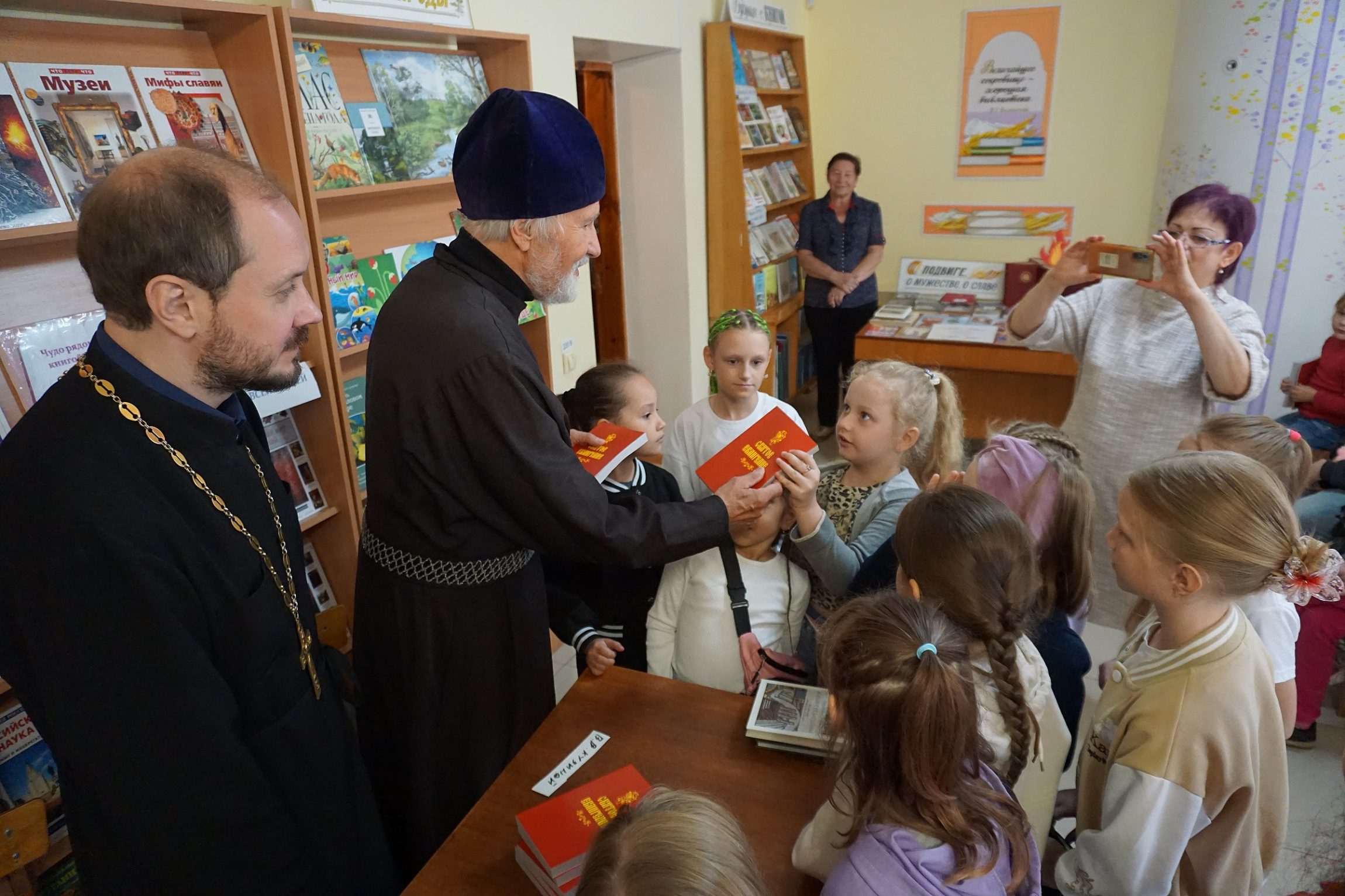 После богослужения гость вместе с настоятелем посетил городскую детскую библиотеку.