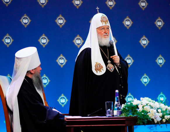 С основным докладом перед участниками пленарного заседания выступил Святейший Патриарх Московский и всея Руси Кирилл. В своём слове Его Святейшество подчеркнул неразрывную глубинную связь просвещения и нравственности: «Знания, оторванные от нравственного начала, представляют собой лишь набор неких инструментов; тогда как знание, соединённое с верой и нравственностью, то есть этическими принципами, воспитывает духовно зрелого человека и становится просвещением в собственном смысле этого слова».